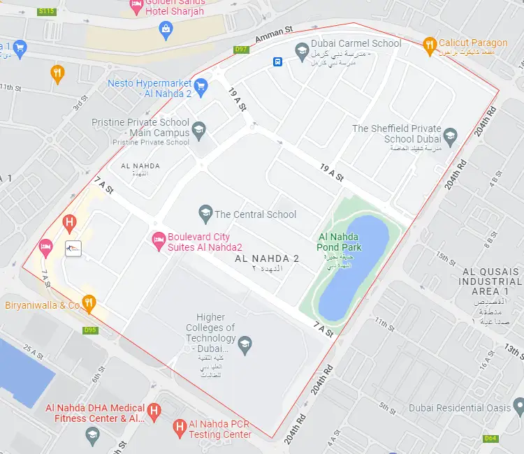 Al Nahda 2 centers on its namesake park, which is well-liked by families for its boating lake, running track, and walkways covered by palm trees and is viewed from above by the elaborate minaret and domes of Al Zarooni Grand Mosque. Along with a few mid-range hotels, university campuses, and schools, high-rise apartment structures may be found here. The area is filled with juice bars, fast-food takeout, and Indian curry restaurants.
