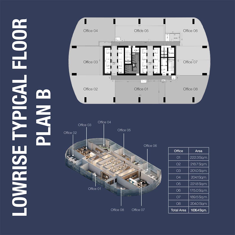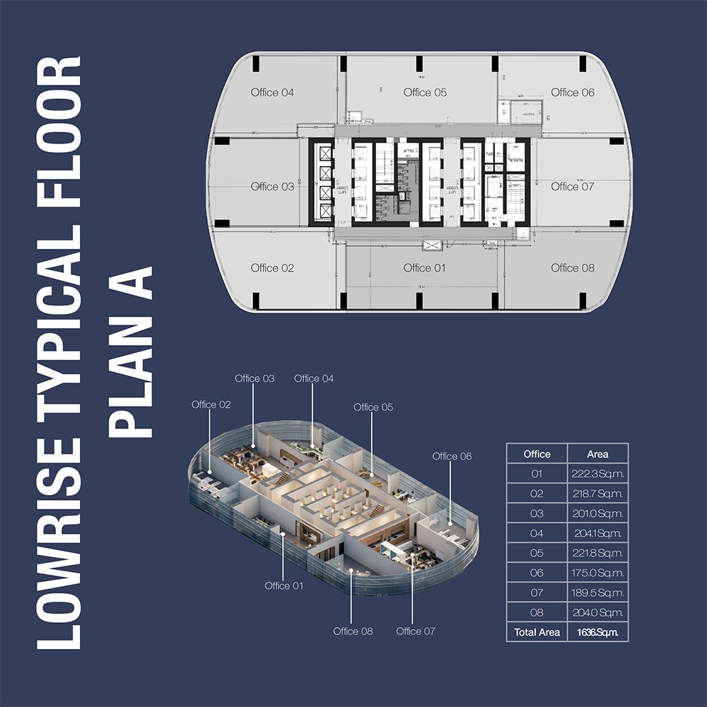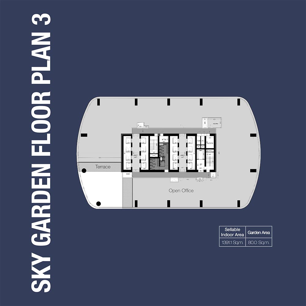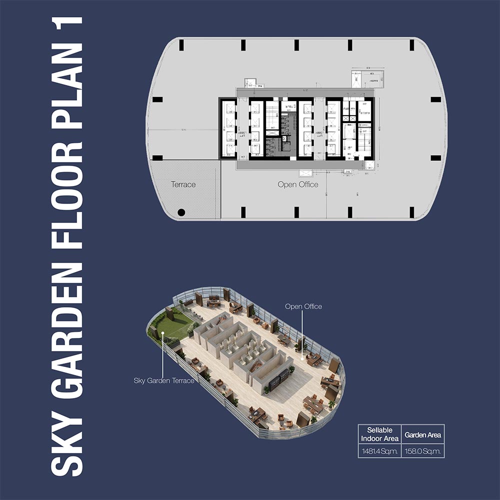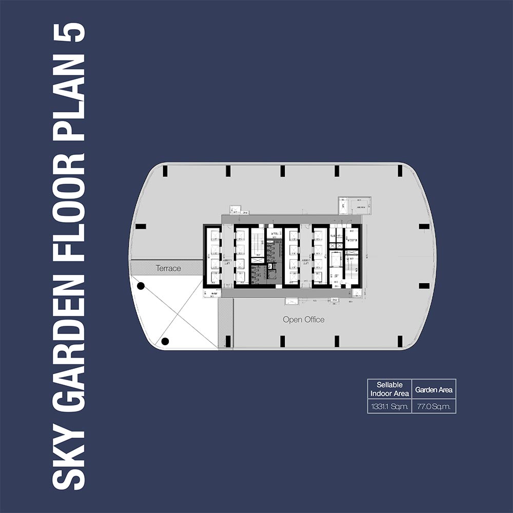 The floor plan of 1970 Office Tower offers one basement level, a ground floor, seven podium levels, and 50 upper floors, all designed to provide ample space for parking, access, and everyday operations. The building is thoughtfully designed with a smart unit layout, combining both work and lifestyle spaces for better comfort and functionality. It features sky garden floors that bring in greenery, fresh air, and relaxing areas, along with typical office floors for daily work. Additional sky gardens add more open and natural spaces throughout the tower. A dedicated amenities floor provides facilities for comfort and convenience. The podium levels are mainly used for parking to ensure easy access and smooth movement, while the ground level includes the main entrance and retail spaces, creating a lively and welcoming atmosphere.
