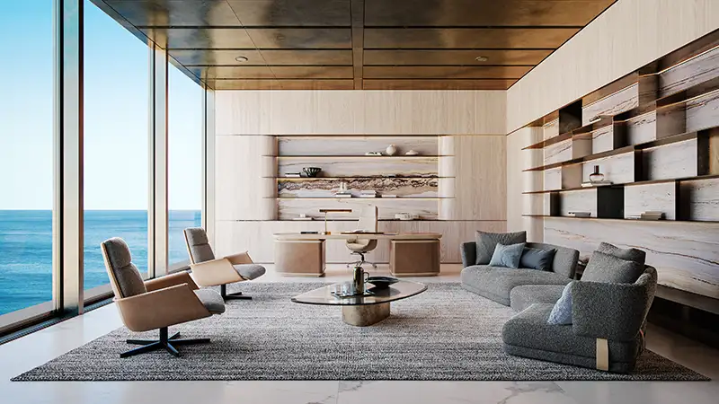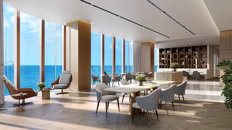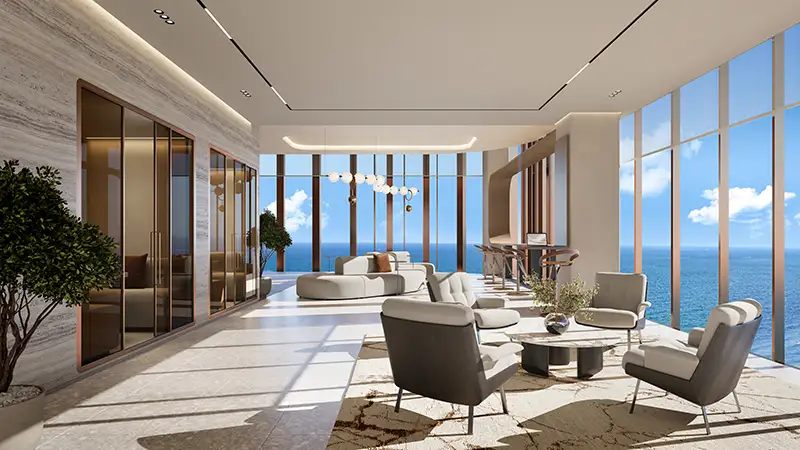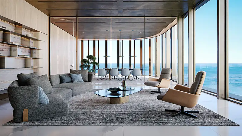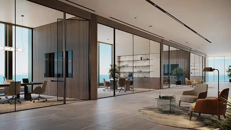 This is an architectural masterpiece guided by the premise of design smarts, space continuity, and sustainability. The exterior of the tower demonstrates a well-balanced combination of glass and steel, which is clear with modern minimalism and eternal elegance. Its smooth vertical surfaces and reflective crystal designs blend in with the stunning sea scenery which leaves a spectacular visual conversation between the building and the ocean. The tower, internally, is a picture of functionality and finesse - during the design of the tower, 116 high-end office spaces were provided within 31 levels and are designed based on flexibilities and productivity. The intelligently designed interiors blend the state-of-the-art infrastructural finishes with lavish details. Thus this guarantee that every inch adds up to a conducive atmosphere that makes creativity, efficiency, and corporate image more relevant.