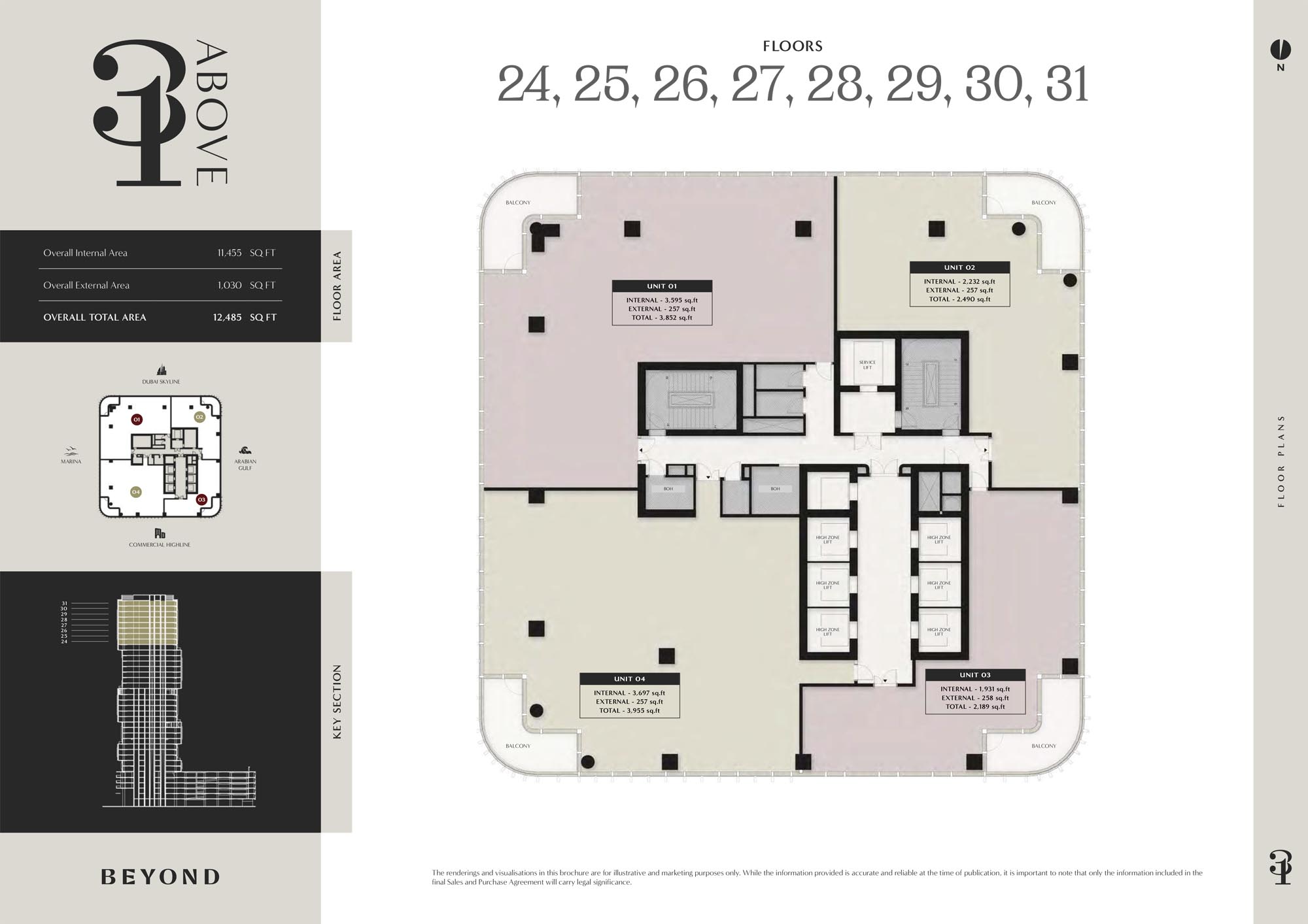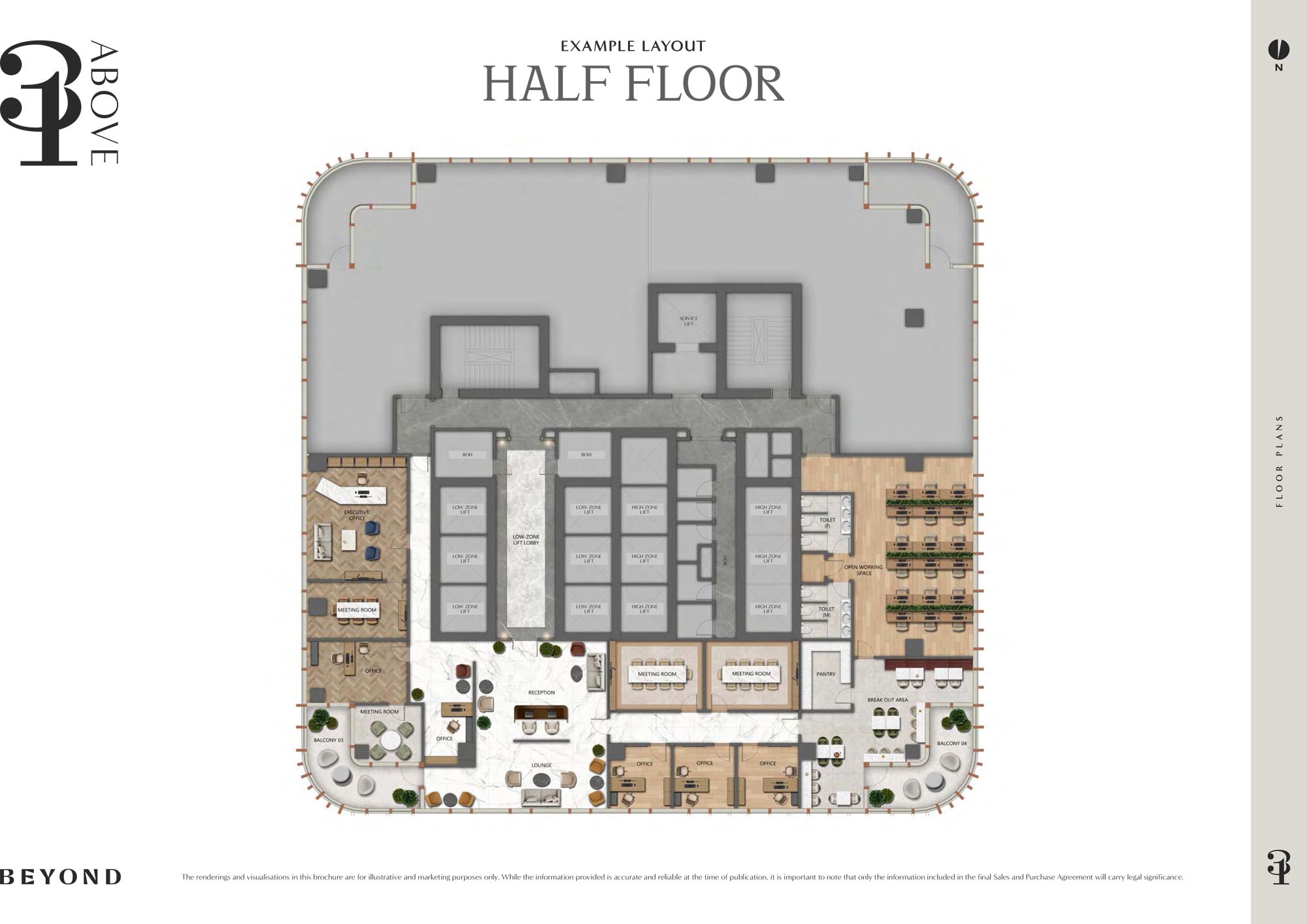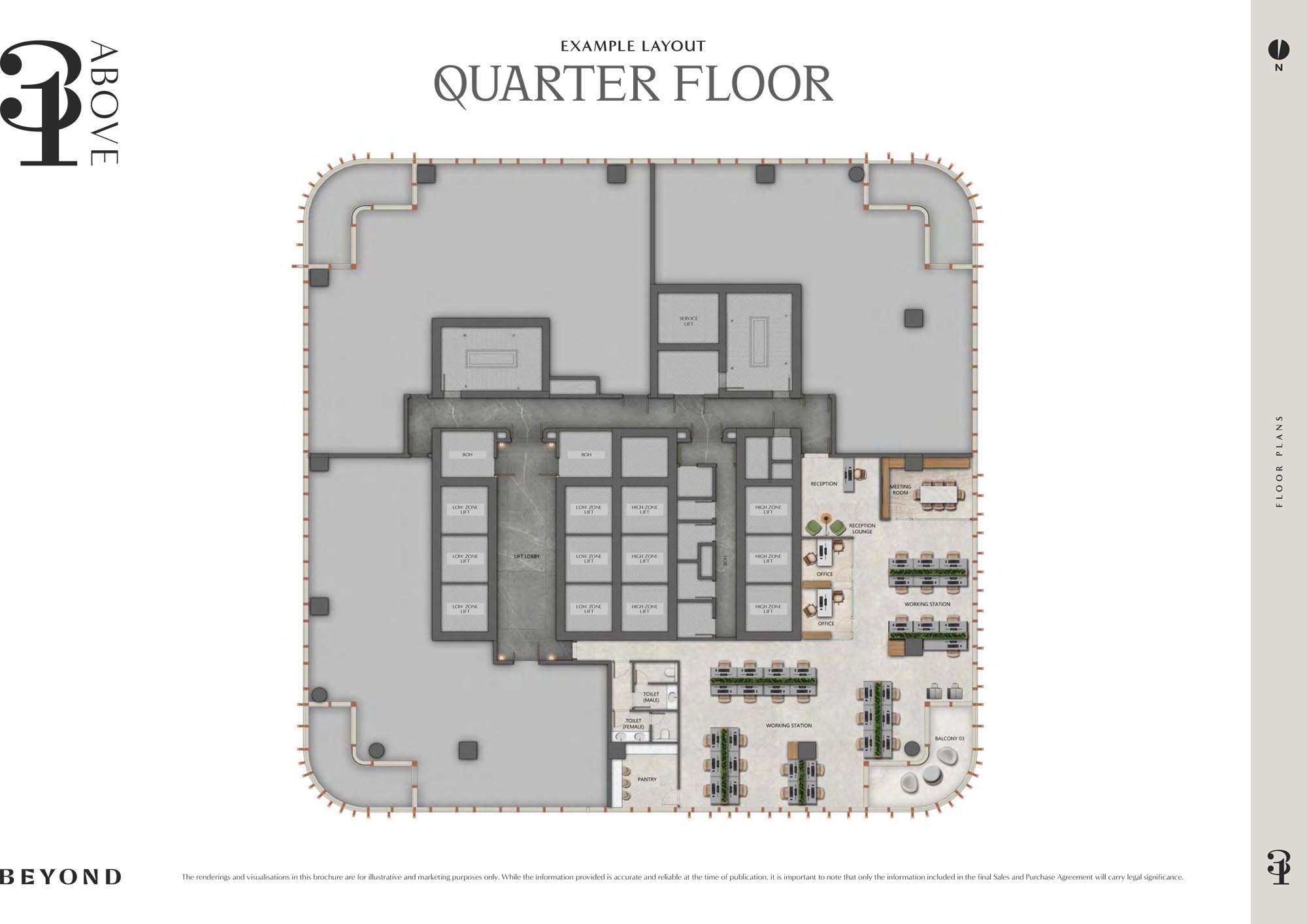 Beyond 31 Above commercial tower comes with premium floor plans of corporate office spaces with high-end interior design and aesthetics. The 31 floors have huge floor plate, each intelligently subdivided into four office spaces which provides optimum versatility to all the corporate needs. The design is also intelligent in such a way that they promote the natural flow of light and the open plan design enables the business to customise their workspace. Having smart vertical zoning and properly designed circulation zones, each floor has an optimal combination of privacy, communication and functionality, becoming a new standard of commercial design in the city.