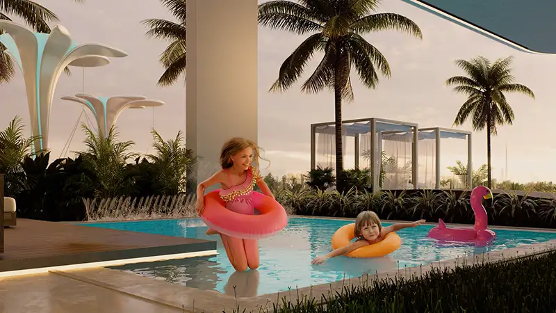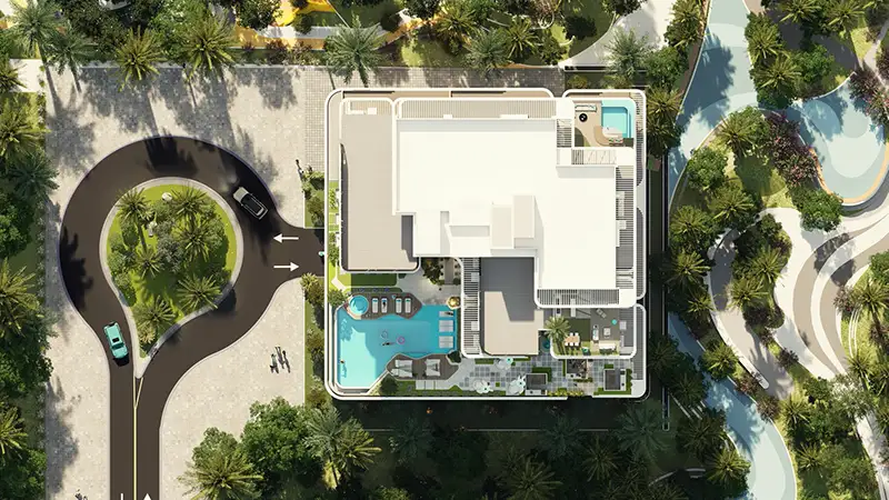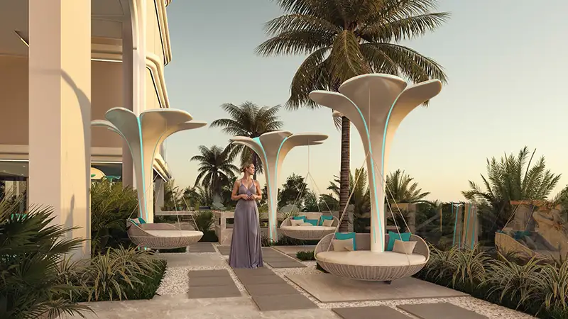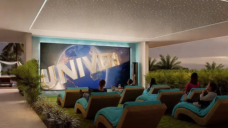 - High-end options of relaxation and refreshing amenities such as an infinity pool with deck area, a kids’ pool, a Jacuzzi, a Baja shelf, cabanas, & a Hammock Forest area