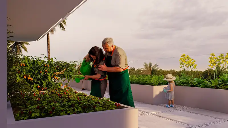 The first level or the podium terrace is the perfect setting, curated with lifestyle amenities. This includes various water features to relax, refresh or play at the infinity pool, a kids’ pool with deck areas, a Baja shelf, & cabanas, and a Hammock Forest zone. Many well-being, leisure, entertainment and socialisation options of a BBQ area, an outside cinema, a shower area, a gym, and a community vegetable garden are also available for lifestyle upliftment.