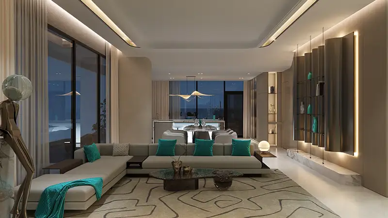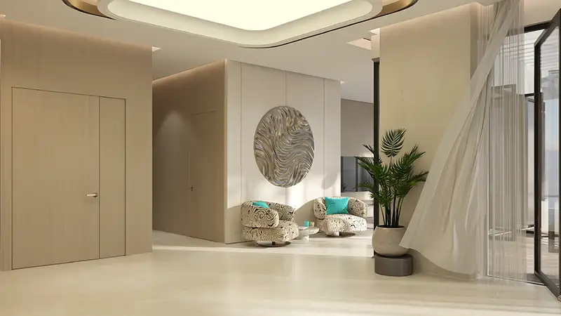 Discover a welcoming, light-filled and elegant ambience in the lobby area, where beauty is refined with modern finishes, quality materials, and neutral soothing tones. The interior of each residence presents a fusion of sophistication with comfort. Merging the futuristic elegance and timeless modernity with seamless functionality, every detail has been sculpted attentively for future generations. The living areas are harmonious and well-furnished with high ceiling windows and breathtaking views of the dense greenery and the skyscape of the city’s coast. With hand-picked finishes, refined details and branded features, fittings, & fixtures, you can sense a seamless fusion of modern innovation with convenient luxury.
