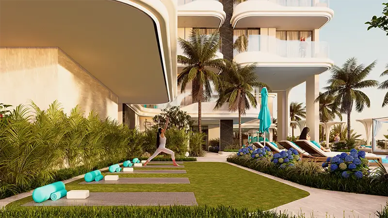 - Additional world-class fitness, recreation, and leisure options are also included, including a BBQ zone, a gym, a yoga area, and outdoor cinema, and a shower area