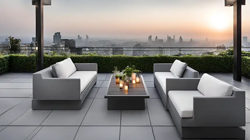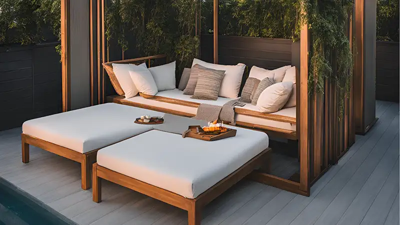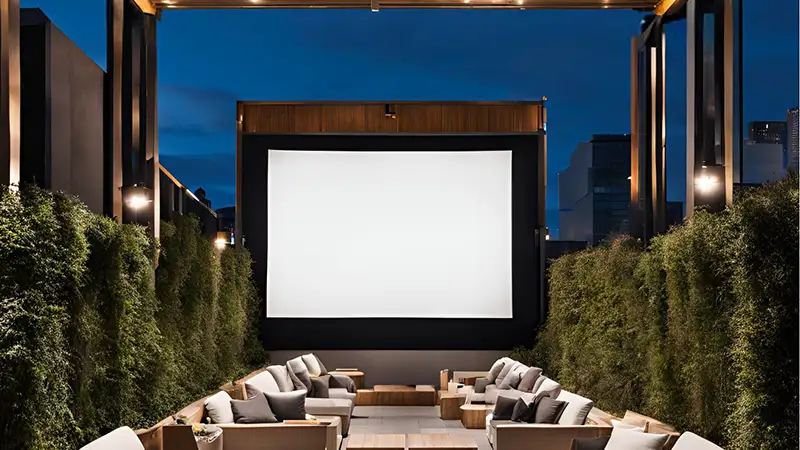 - Luxury leisure facilities, includes a swimming pool, outdoor cinema seating, BBQ zones, and landscaped cabana spaces.