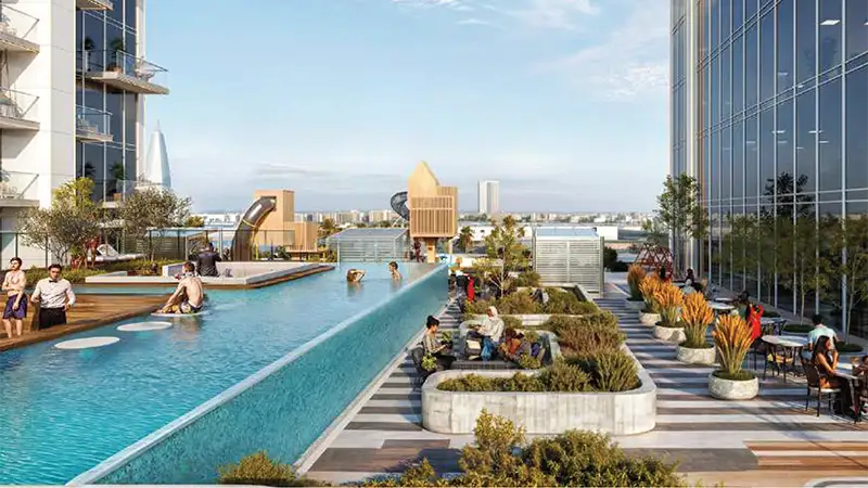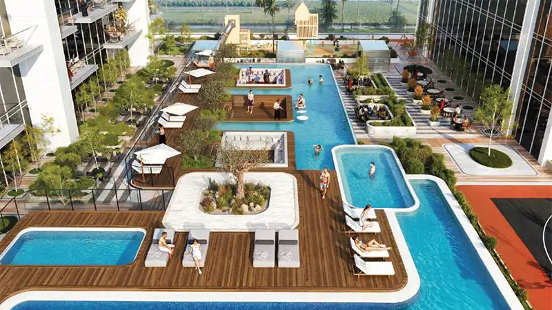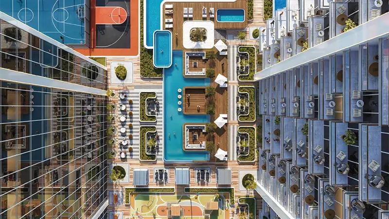 The Al Vista master plan by Dubai Investments reflects a wise urban integration, with all the elements adding towards a self-sustaining and balanced lifestyle ecosystem. The twin towers at its center support a unified precinct in Meydan Horizon that organically combine residential, commercial and retail dynamism and vibrancy. The arrangement of structures, open spaces, and landscaped podiums have been well synchronized in order to create synergies between living, working, and recreational areas, which will make the daily experience of people who live in the area and people who pay visits enjoyable. A friendly pedestrian experience enhances inter-ambulation, and promotes social interaction with intelligently located green parklands, recreational spaces, and other important facilities that comprise an intuitive spatial rhythm.