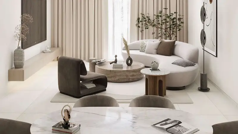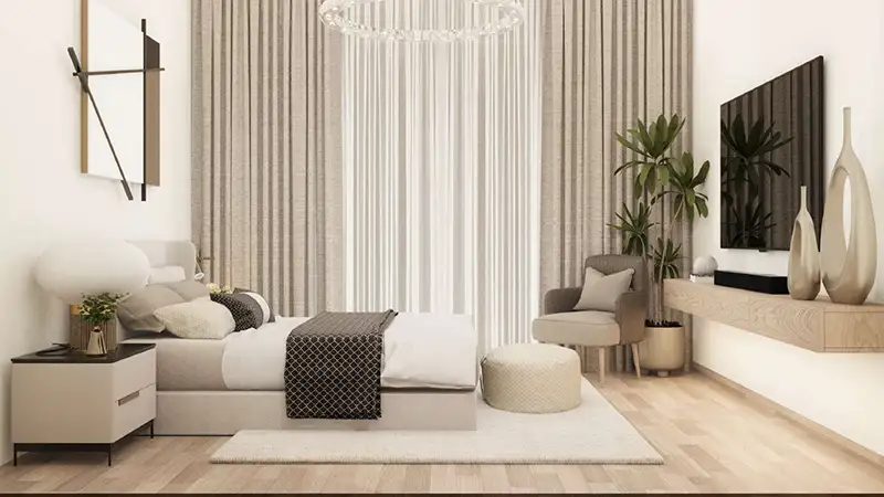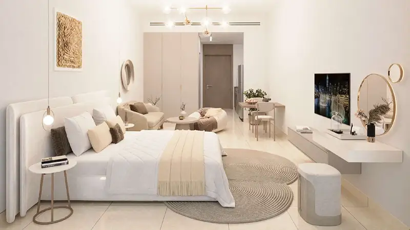 The architecture is of modern style with clean edges, beautiful proportions and construction that is visually balanced and fits perfectly into the Dubailand skyline. All houses in the building are well-structured to achieve the best use of natural light as well as space and comfort day-to-day uses. The interiors are also represented by the use of modern finishes, tastefully chosen materials and clever structures creating a comfortable but at the same time elegant ambiance. Big windows receive the daylight that comes in the living areas and the open-plan structure allows to create the sense of spaciousness and flow within the apartments. The units are not just appealing to the sight but are also very functional to enjoy the comfortable stay in Dubai.