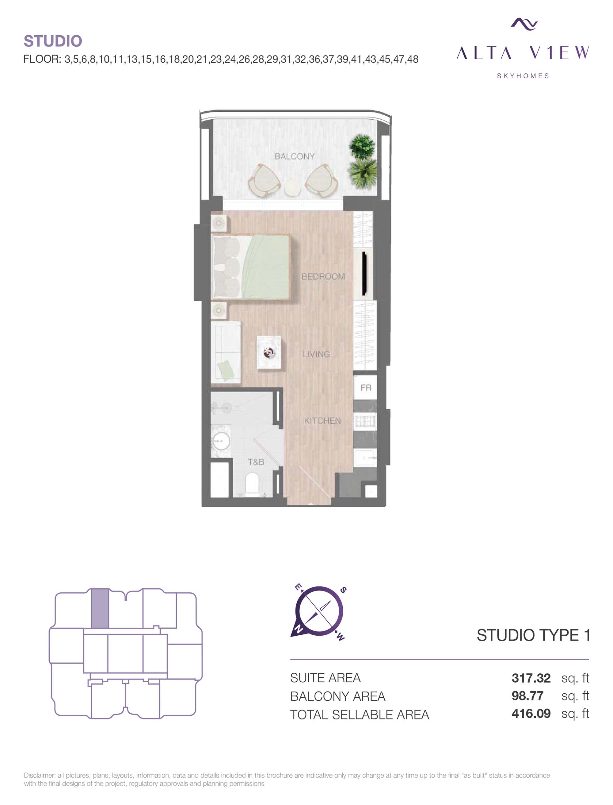 At Alta View Skyhomes, you have a selection of studio, 1 and 2-bedroom apartments that are elegantly-designed, flexible and designed to fit in the future. The studios are small but generously sized, suitable to both the young professionals as well as the investors. They all have an inbuilt kitchen-dining area, quality fitted bathrooms, inbuilt wardrobes and large glass fronts that allow natural lighting.