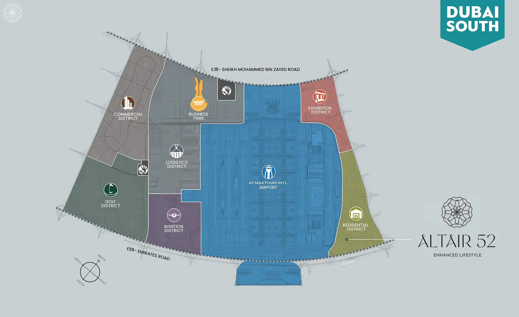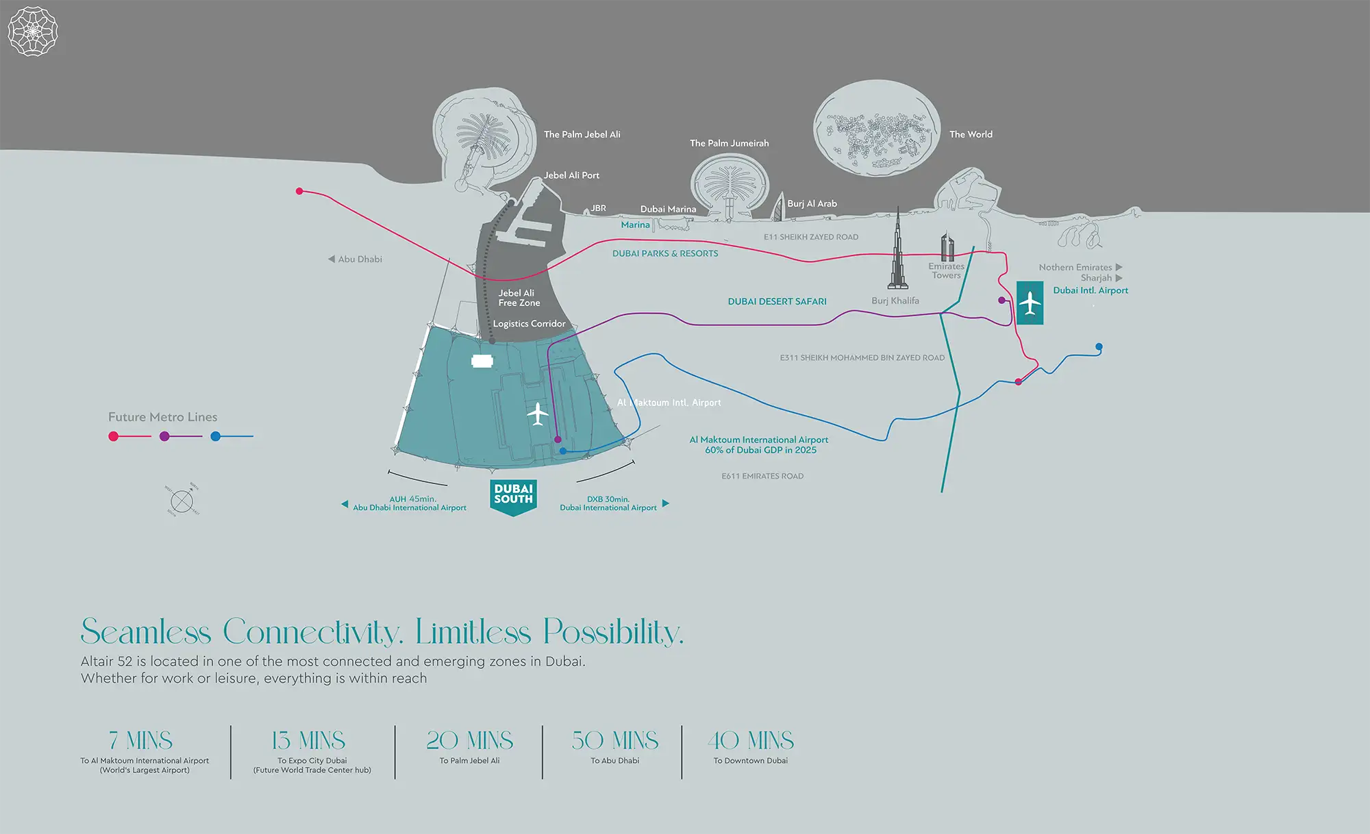 Altair 52 at Dubai South is built as a contemporary architectural gem by Acube Abode Realty meant to transform the definition of the urban living with studios, 1, 2 & 2.5 bedroom apartments. Where the light and civilization date back to classics within one of the most rapidly developing communities of the city. The masterpiece in residential buildings is made with accuracy and oozes elegance with every turned angle that portrays a blend of futuristic, modern ways of life adopted, and high standards of craftsmanship. All the curves, textures, as well as materials here are reference to taste of a fine lifestyle, where the combination of natural light, artistic uplift, and tranquillity is united in one gorgeous roofline. With its graceful rises above the skyline, the development praises the idea of living that shines till the dark, but a statement of style and comfort that the modern cosmopolitan should have imagined.