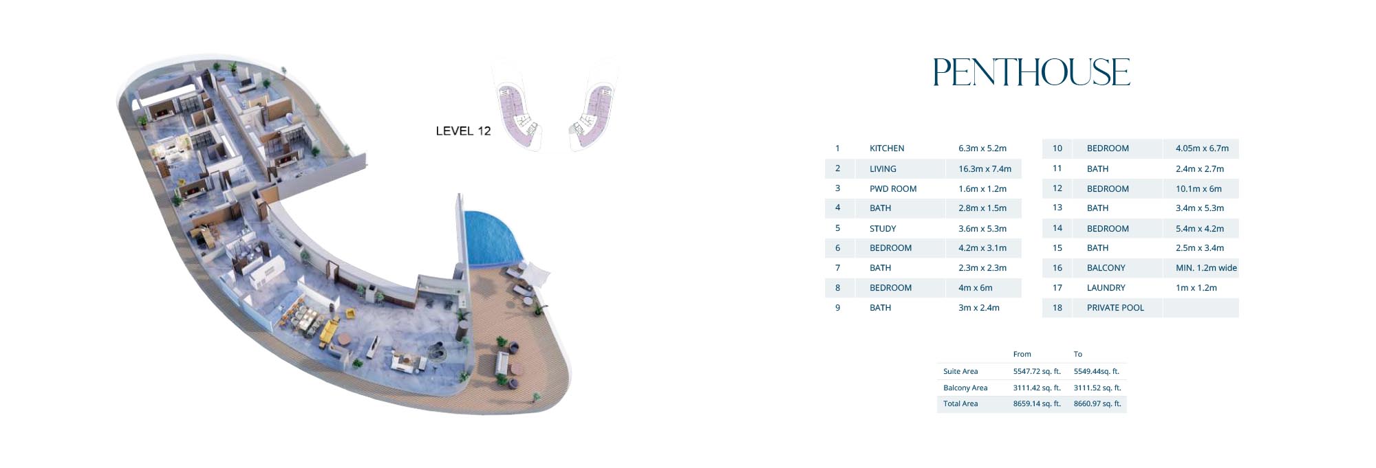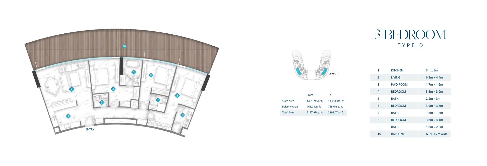 The precisely constructed floor plan of 1, 2 & 3-bedroom apartments & penthouses are integrated in the residential development of Aqua Arc at Marjan Island. With bespoke detailing every feature and corner, here each unit epitomizes ample and elegant interiors with premium and quality materials on flooring, walls, ceilings with fully curated smart rooms.