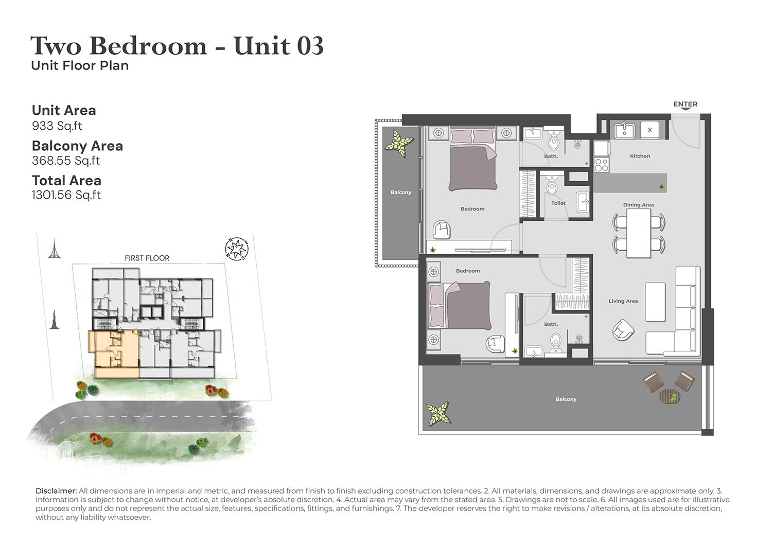Arib Collection presents carefully designed floor plan options available with apartments, selecting from various layouts. All the apartments offer premium design that includes the most space, lots of windows for sunlight and privacy. Open-plan and styled for modern use, kitchens flow directly into the rest of the living area to bring families together. Balconies are spacious and allow people to enjoy the scenery in the development and the surroundings.