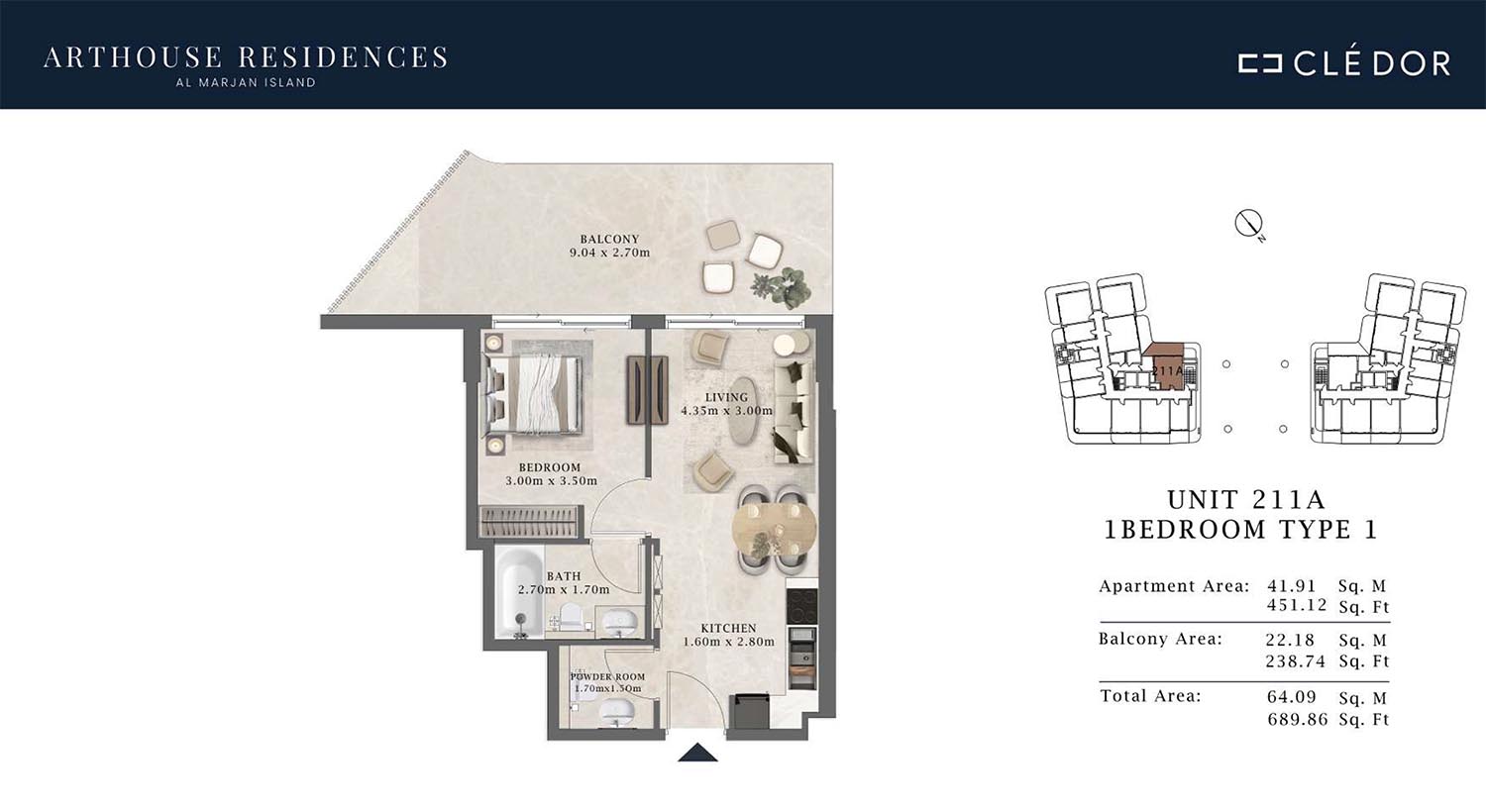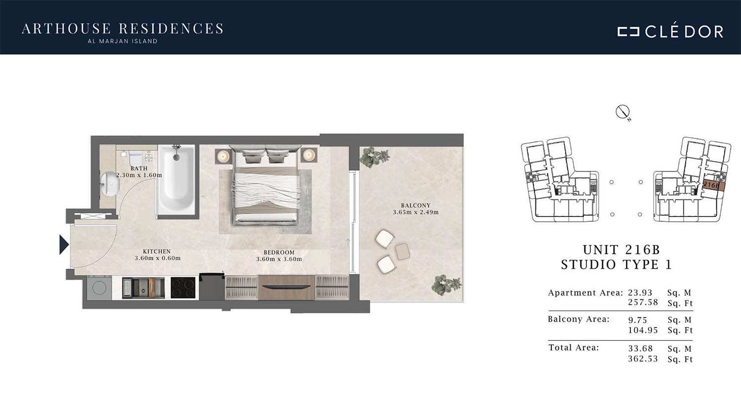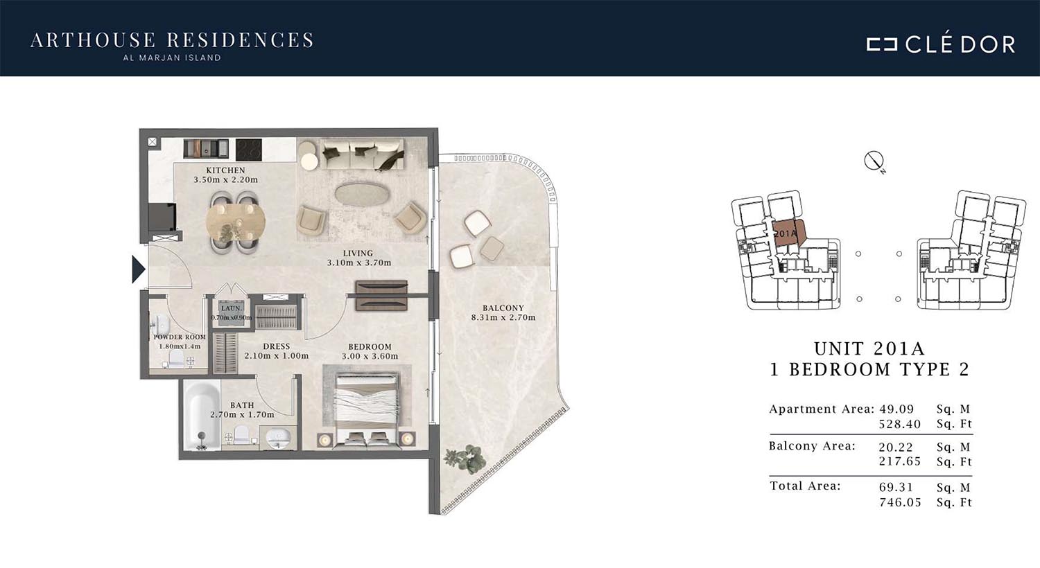 Arthouse Residences is perfectly poised on the iconic Al Marjan Island painting a masterpiece of a picture by altering raw supplies. A place where architecture meets art with some of the finest lines that blend in the warmth of the light. Its interior is a dream designed meticulously to accommodate tasteful style, tasteful taste and comfort. Every apartment has been created to maximize natural light, space and flow with open-plan living areas that open onto private balconies with beautiful sea views. Interiors are cleverly designed for a seamless flow between spaces to maximise comfort and aesthetics.