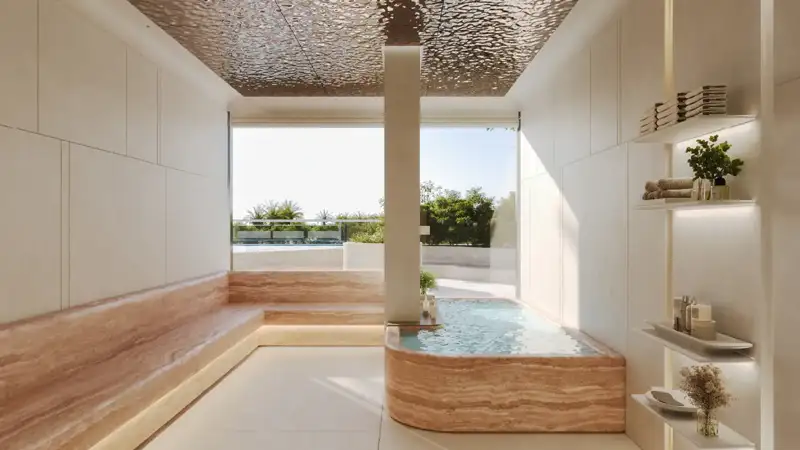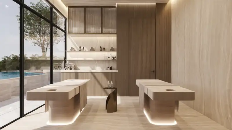 - Premium amenities of infinity pools, plunge pools, sunken bar, a rooftop bar, a fitness pavilion, private cinema, private spa suites, & nestled Deck Yoga Outdoor