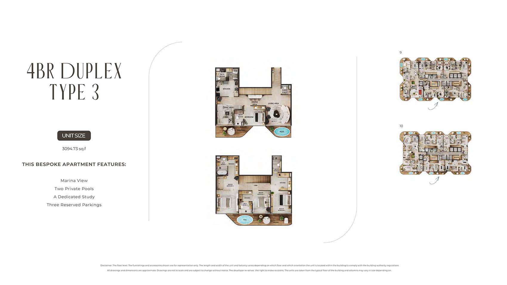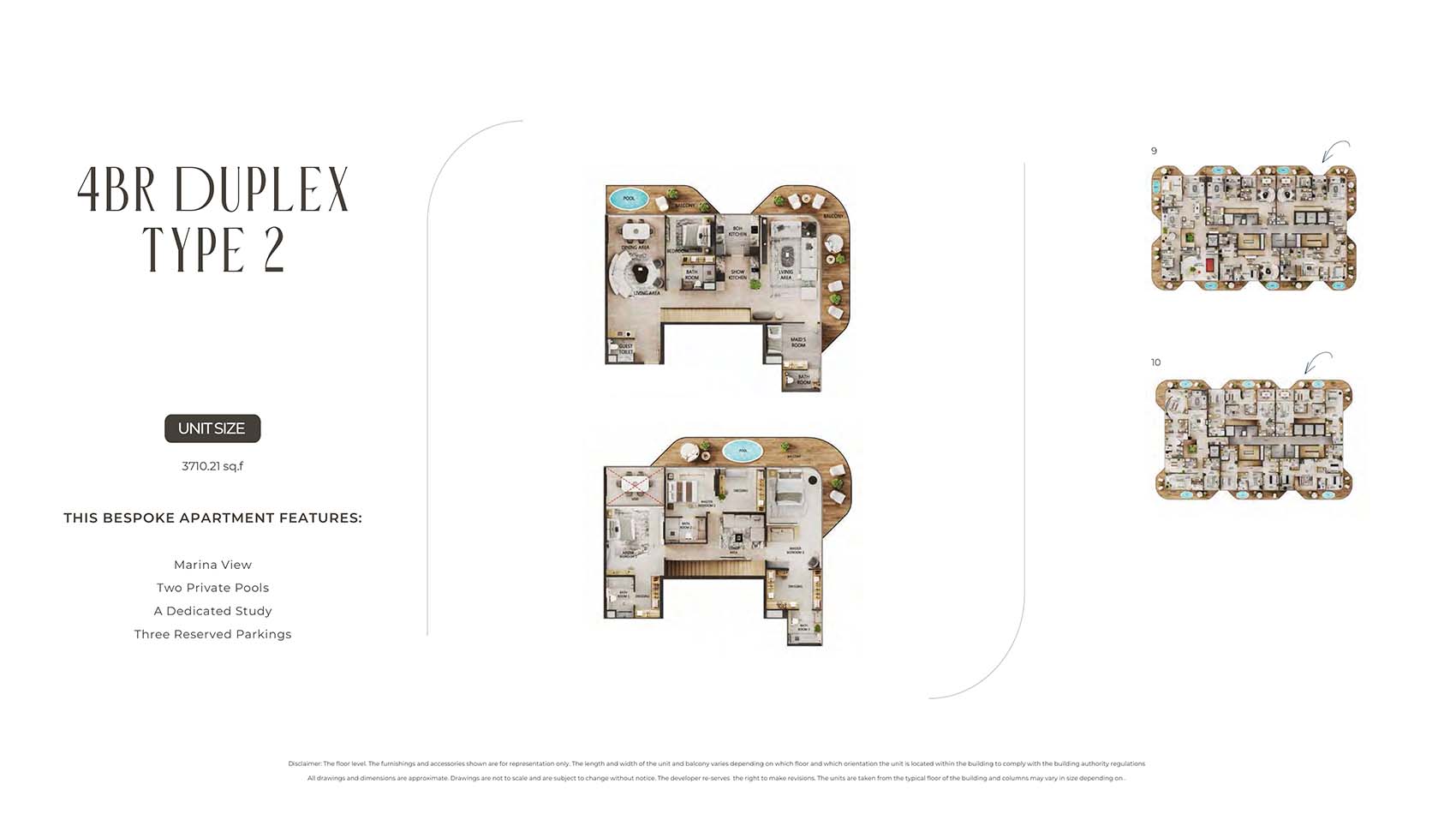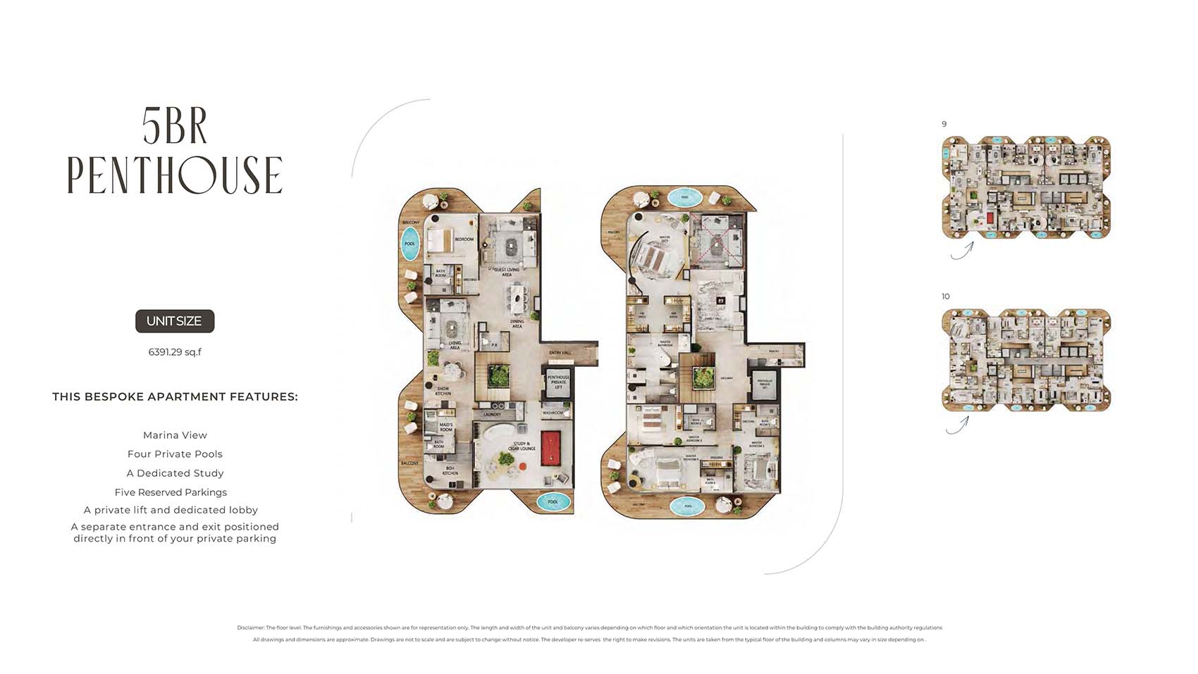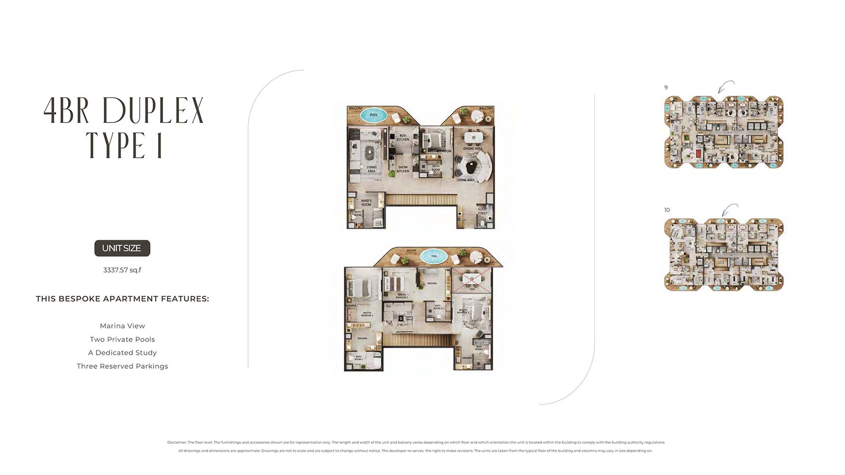 Arya Residences encompasses mindfully carved floor plans of luxury and diverse styles of stylish 1 to 3-bedroom apartments and 4 & 5-bedroom duplex penthouses. This 12-storey infrastructural jewel captures only 68 units tailored to all sort of families, investors, and individual professionals. Here, each unit is complimented by the sky pools, decor pieces, custom furnishing choice, and kitchen with Villeroy & Boch Cutlery & Miele Appliances, and smart home technologies. The spacious and open design with huge windows welcomes the panoramic views of the marina, city, Arabian Gulf’s skyline, and the evolving island.