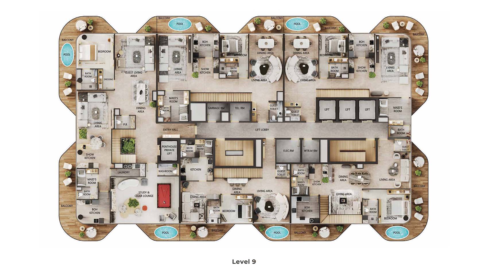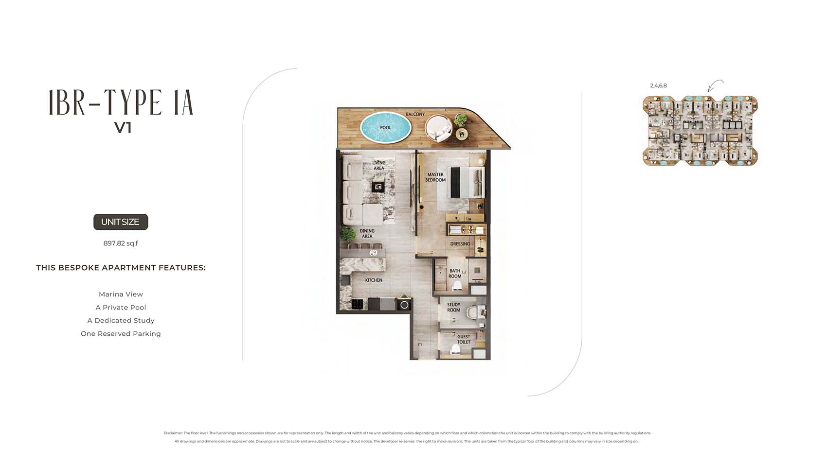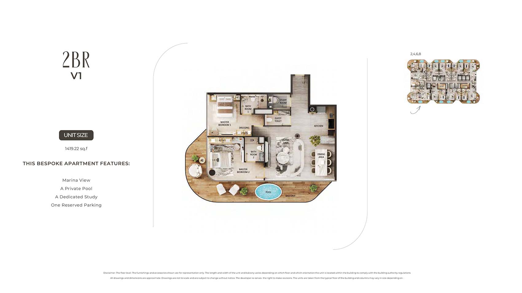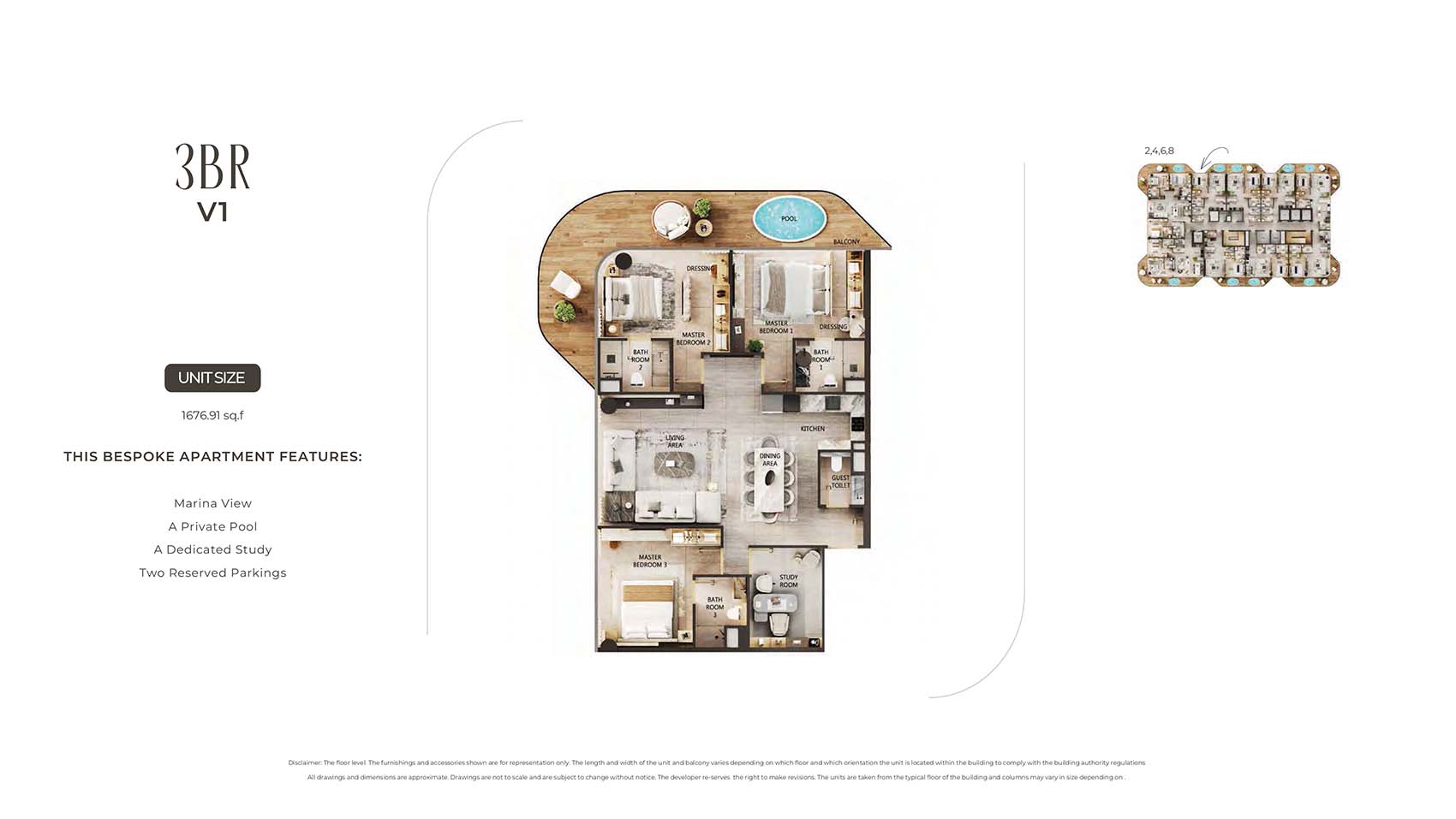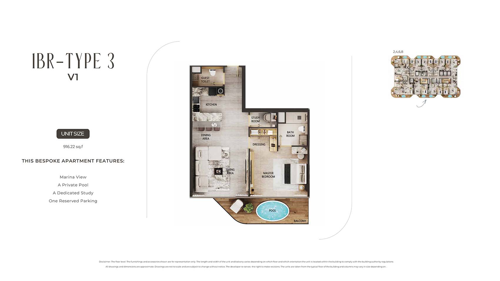 Arya Residences encompasses mindfully carved floor plans of luxury and diverse styles of stylish 1 to 3-bedroom apartments and 4 & 5-bedroom duplex penthouses. This 12-storey infrastructural jewel captures only 68 units tailored to all sort of families, investors, and individual professionals. Here, each unit is complimented by the sky pools, decor pieces, custom furnishing choice, and kitchen with Villeroy & Boch Cutlery & Miele Appliances, and smart home technologies. The spacious and open design with huge windows welcomes the panoramic views of the marina, city, Arabian Gulf’s skyline, and the evolving island.