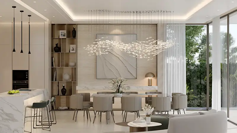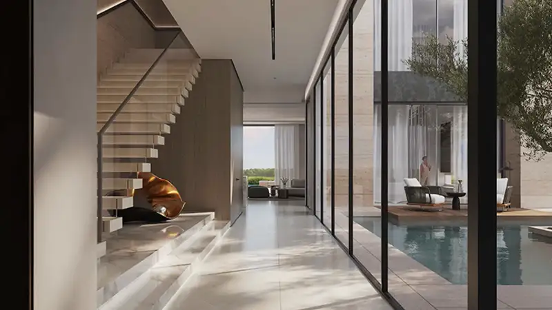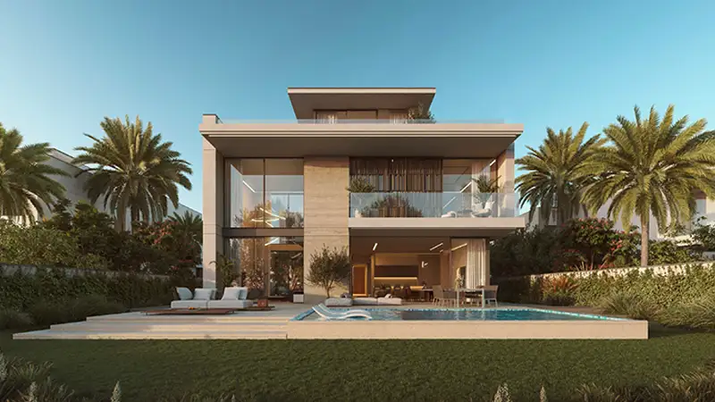 Crafted with purposeful architectural excellence and rooted in the open, lush landscapes, this exquisite realm offers immersive experiences that blend lively movement with scenic nature. Each standalone villa is elevated from the ground, offering a canopy of urban elegance that captures an inspiring environment. The thoughtfully designed vision of every residence embodies clear architectural lines, expensive windows as the transparent partition, soft-toned earthy materials and aesthetic textures that evoke a feeling of belonging. The outdoor spaces are curated with seating zones and private pools to witness the surroundings that are as private as inviting, adorned with private gardens and palm trees.