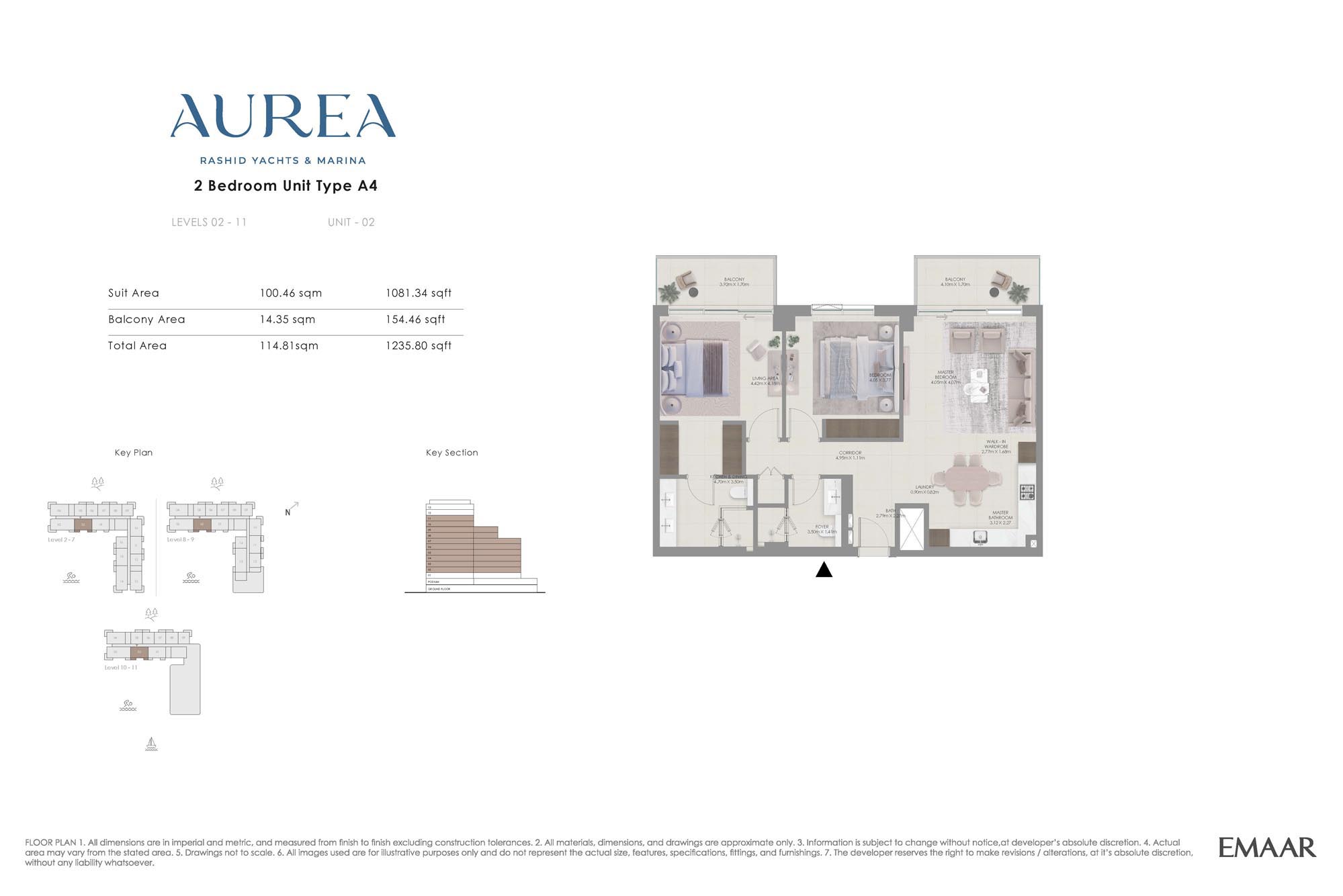 Emaar Aurea Residences is a mid-rise architecture designed with the refined elegance of a vibrant marina, offering stylish floor plans in 1, 2, & 3-bedroom apartments. Made with simplicity, each unit of this complex has been planned with open, aesthetic, and spacious spaces. The neutral theme with large windows and balconies in the living and bedrooms creates spaces to rejoice with families or relax in the tranquil, bright ambience. Here, spaces are made to calm, upscale the daily routine, and inspire, where residents will have a connection between living spaces and the sweeping views of the marina. The bespoke finishes, quality detail, and premium materials exude sophistication and warm & soothing setting.