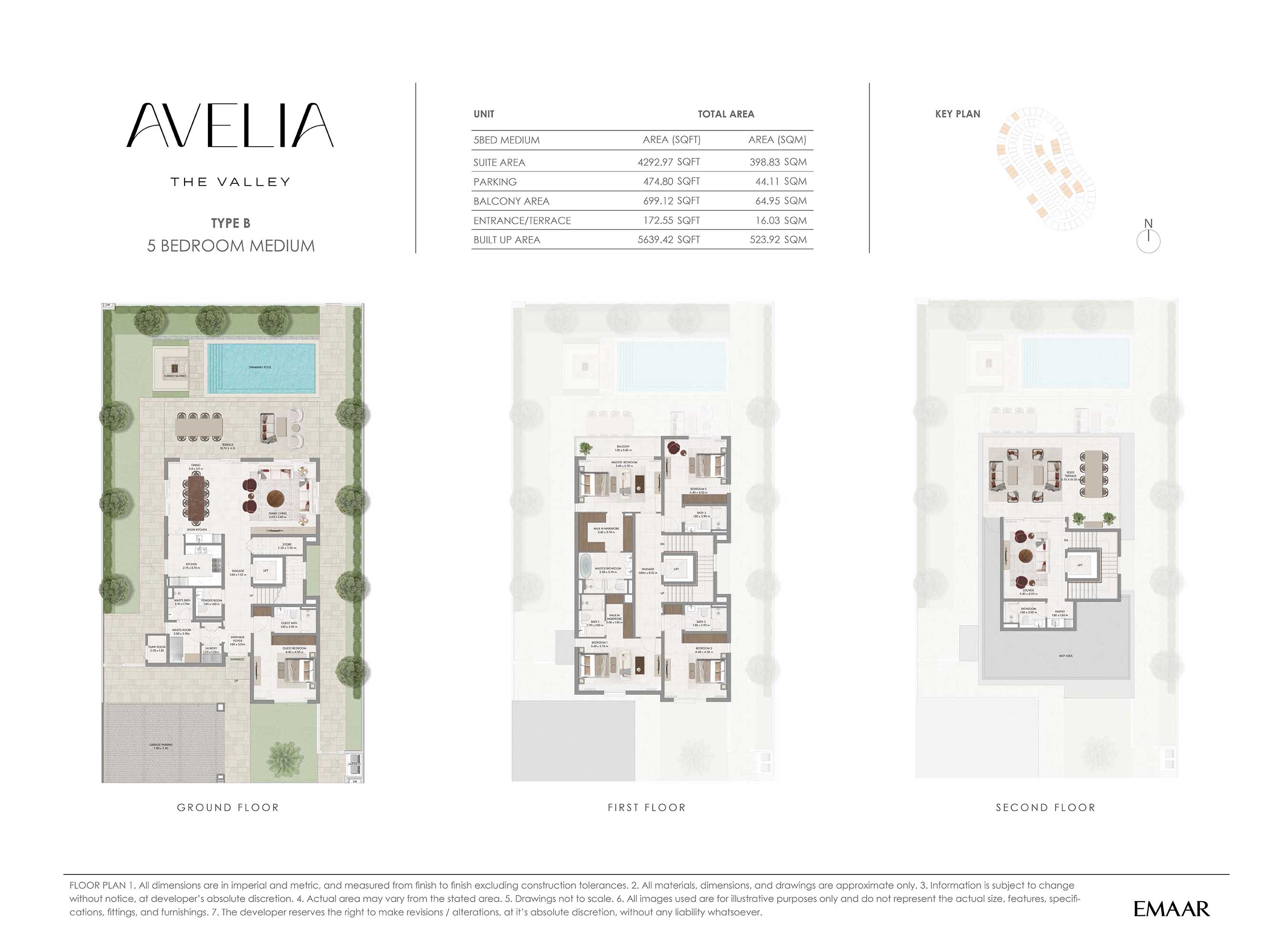 Emaar Avelia at The Valley comes with exclusive floor plans of 4 & 5-bedroom residences, ready to craft the leisure lifestyle. The interiors continue with living, dining room, kitchen spaces that are open and related to be comfortable and private. En-suite bedrooms are available with the master bedroom having its own lounge or terrace, whereas guest rooms are located separately. There will be large windows and sliding doors that provide good links to the outdoor garden or terraces, which frame the introduction of extensive lifestyle. In a nutshell, the layouts do not only facilitate daily living but also entertain yet at the same time provides private retreat for the whole family.
