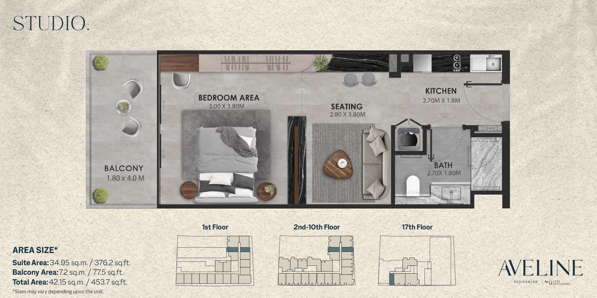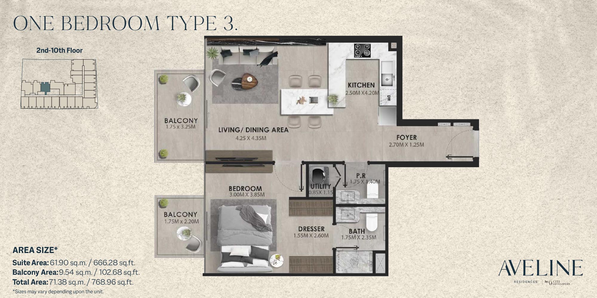 Aveline Residences exudes spaciously designed floor plans of studios, 1, 2 & 3 bedroom apartments in the JVC, Dubai. This pristine & lavish development features a total of 263 home units and urban integrated amenities dedicated to the residents.