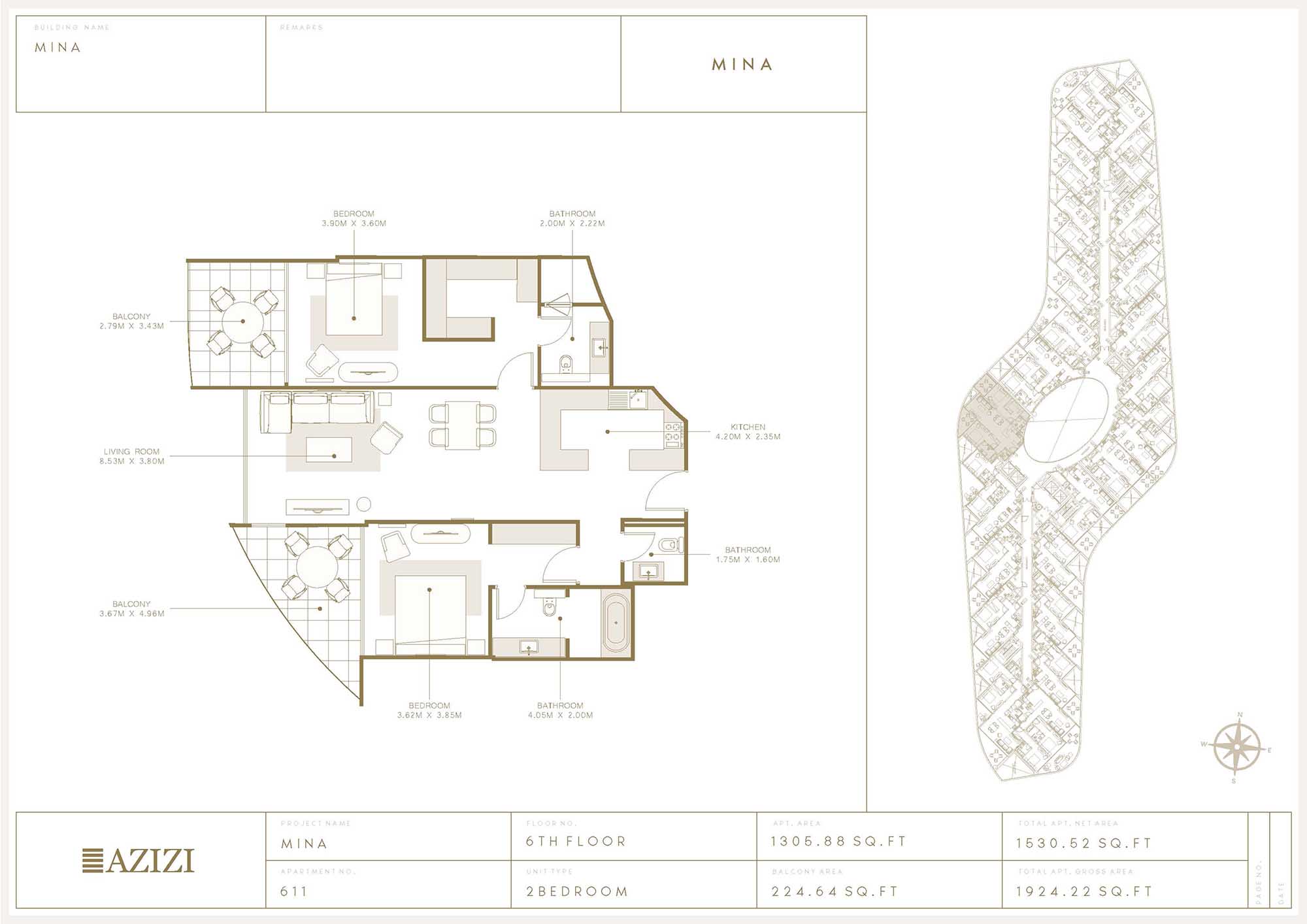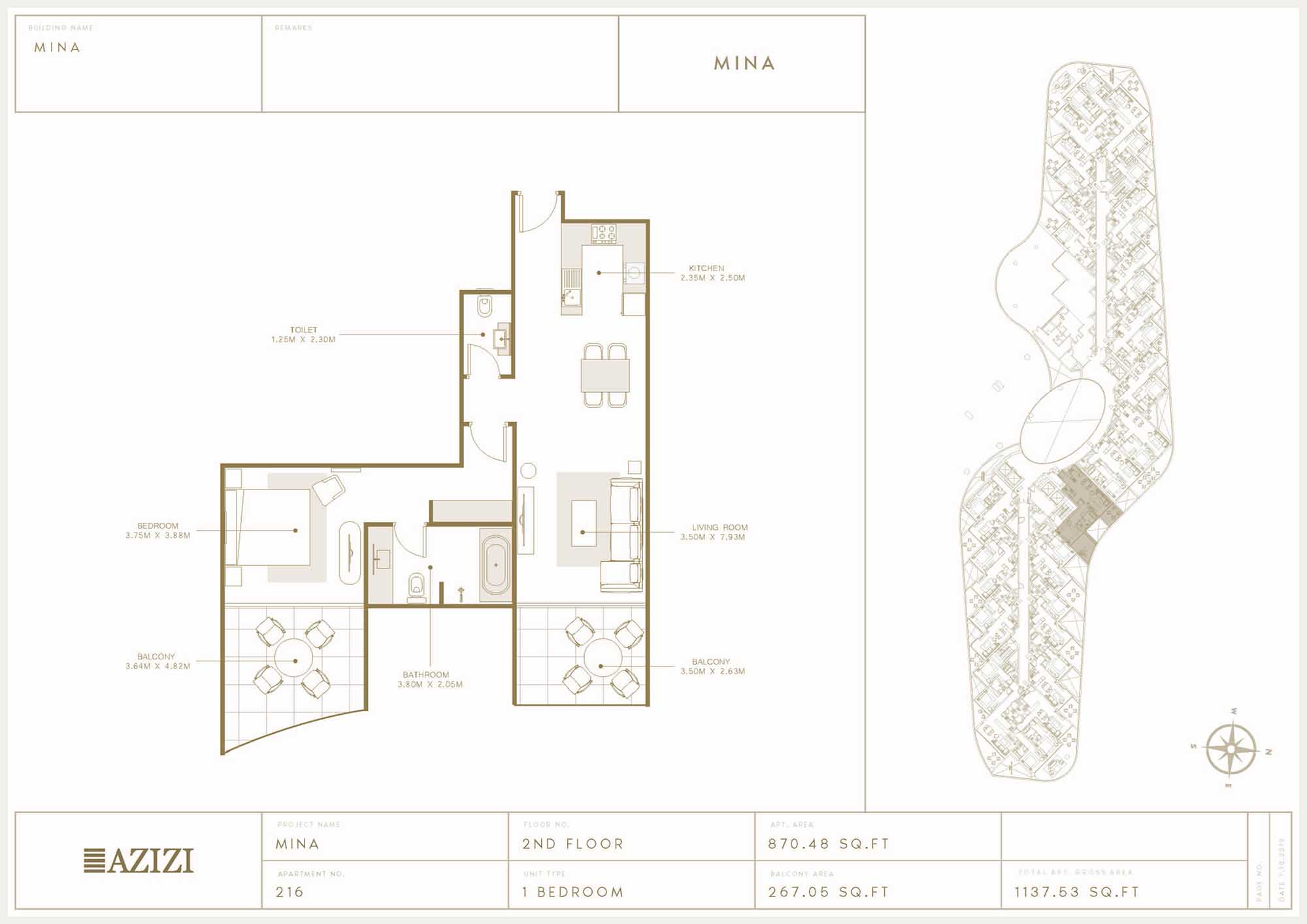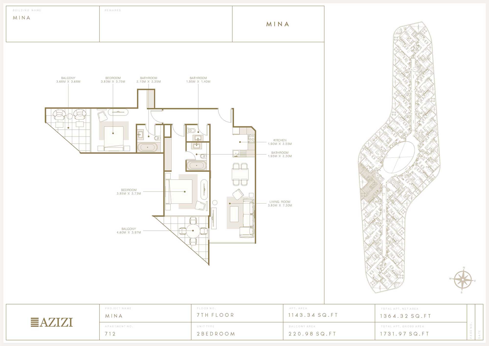 Azizi Mina at Palm Jumeirah, developed by Azizi Developers, is a luxurious apartment on the river with opulent hotel amenities and a choice of 1, 2 & 3 bedrooms. You may choose from a variety of spacious one-and-two-bedroom apartments and penthouses at Azizi Mina, a luxury waterfront development on the Palm Jumeirah. Beautiful ocean views are just one of the many luxuries you can enjoy here. You can also enjoy great service and an elegant atmosphere.