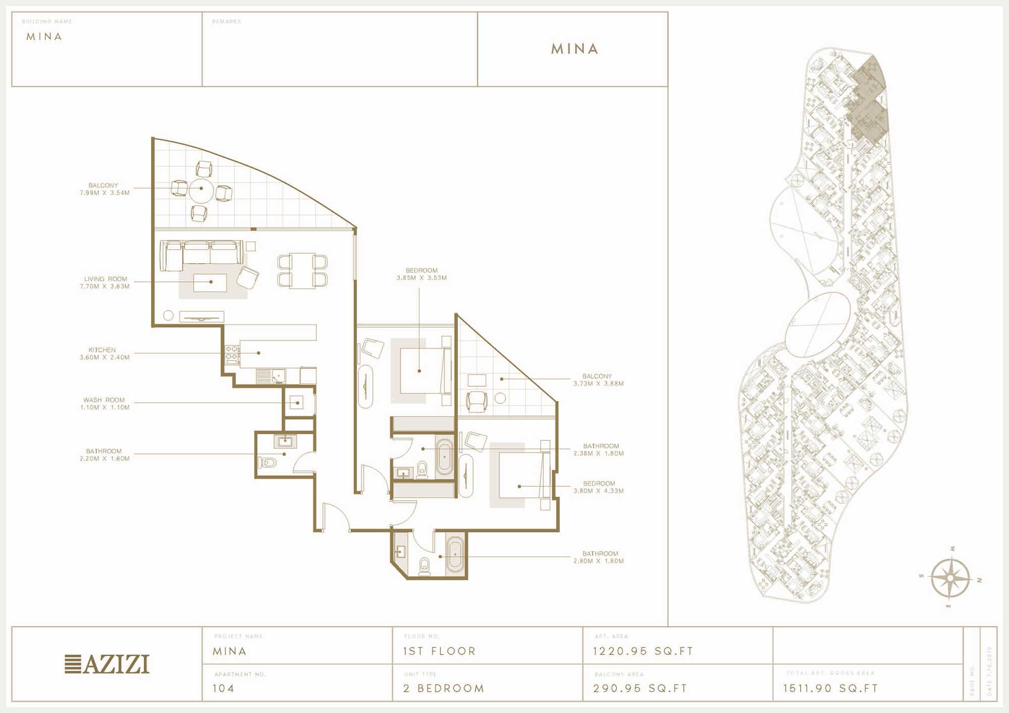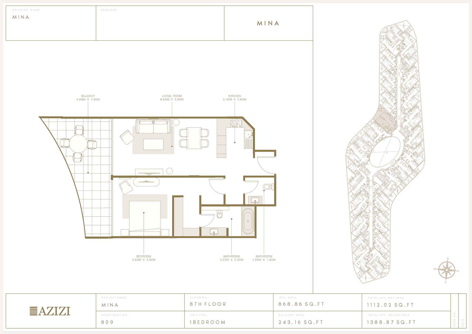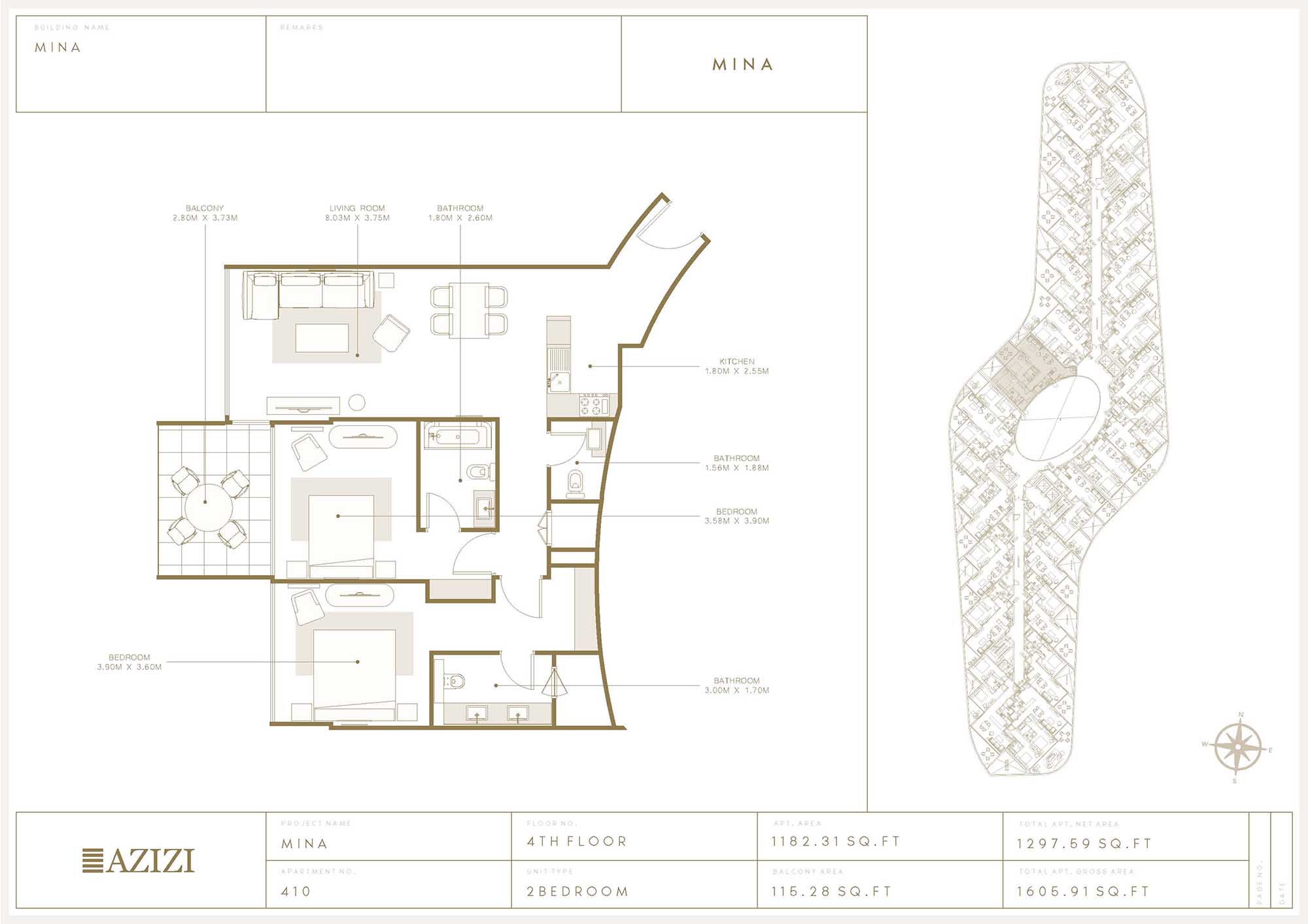 Azizi Mina at Palm Jumeirah, developed by Azizi Developers, is a luxurious apartment on the river with opulent hotel amenities and a choice of 1, 2 & 3 bedrooms. You may choose from a variety of spacious one-and-two-bedroom apartments and penthouses at Azizi Mina, a luxury waterfront development on the Palm Jumeirah. Beautiful ocean views are just one of the many luxuries you can enjoy here. You can also enjoy great service and an elegant atmosphere.