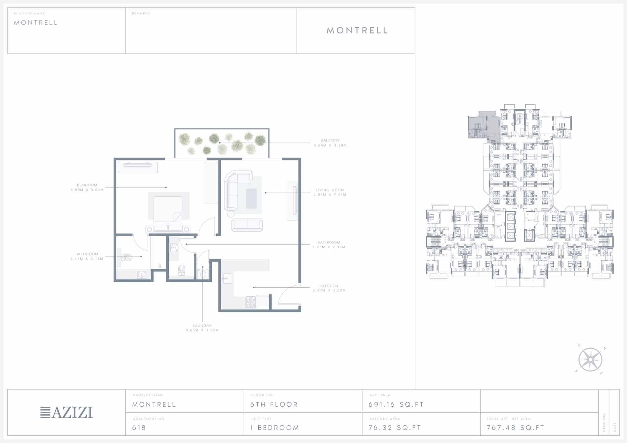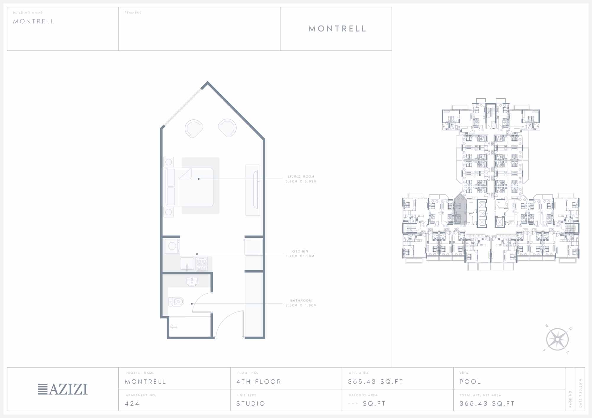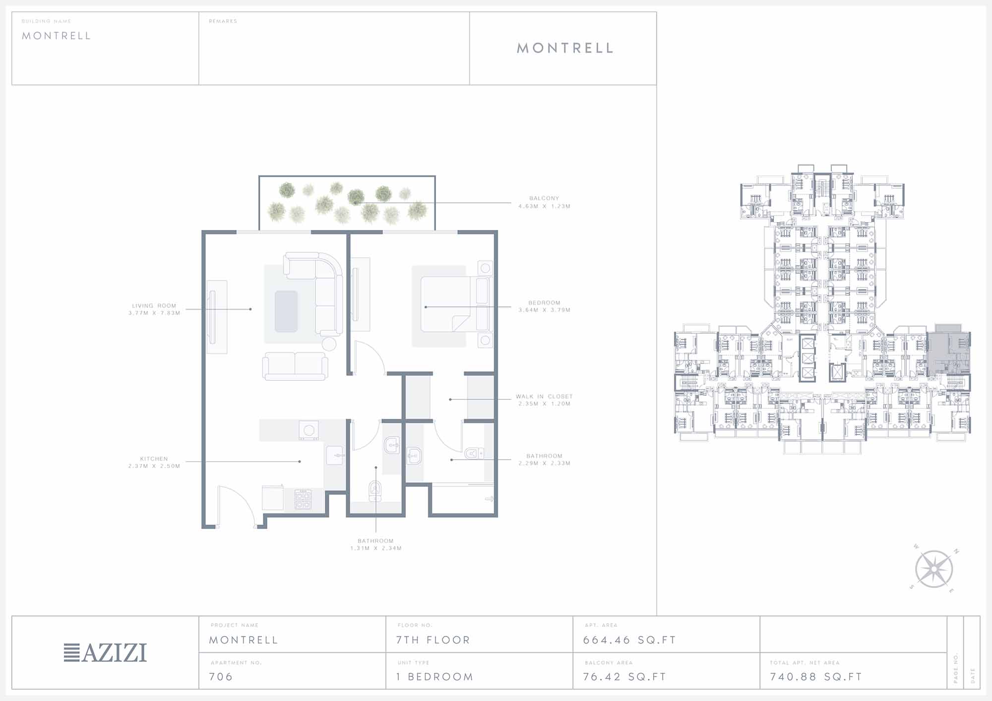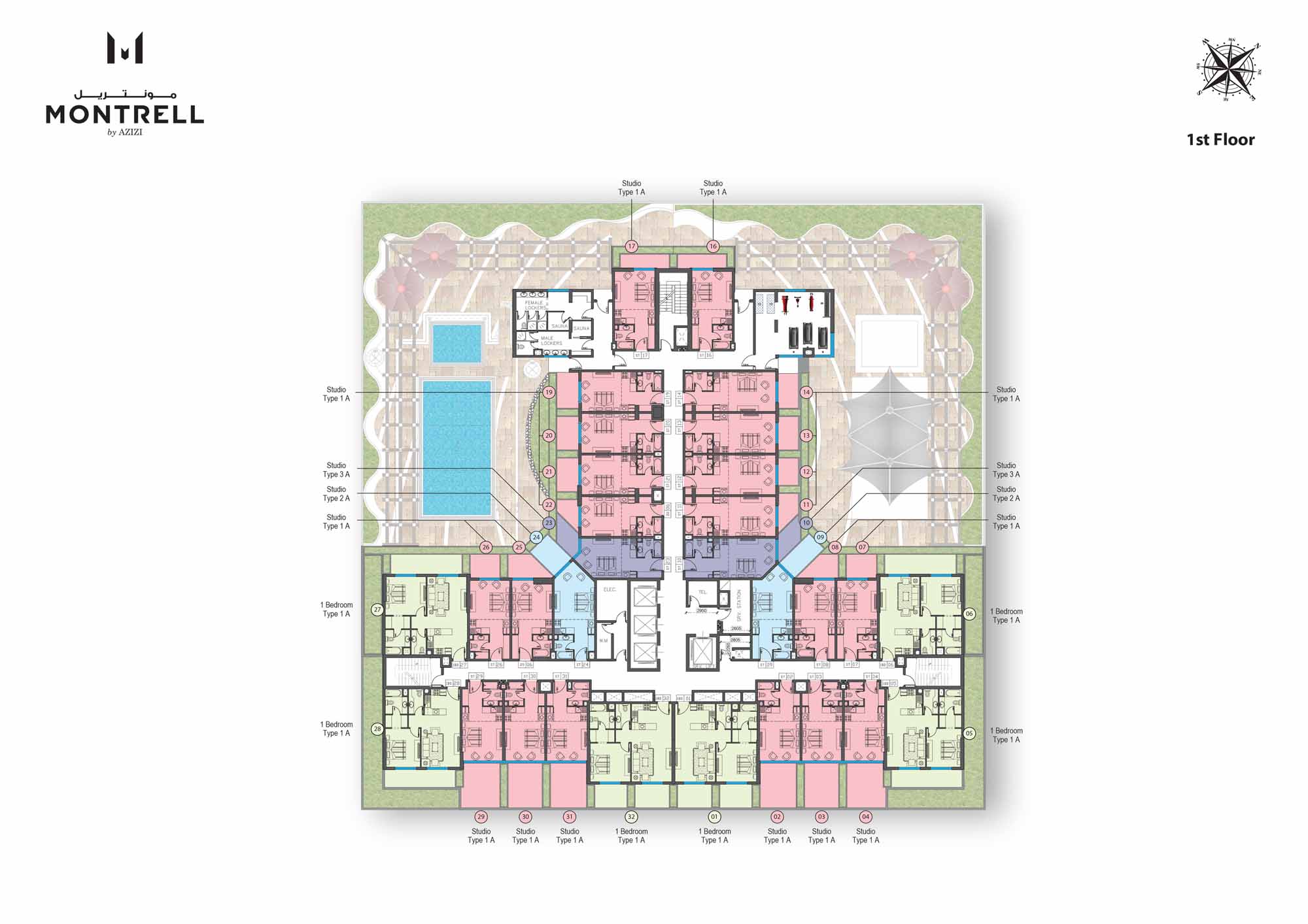 Azizi Montrell by Azizi Developments located at Al Furjan offers studio and 1-bedroom apartments that are some of the most spacious in the area. Both the inside and outside of the building are of premium quality, showcasing cutting-edge architectural trends.