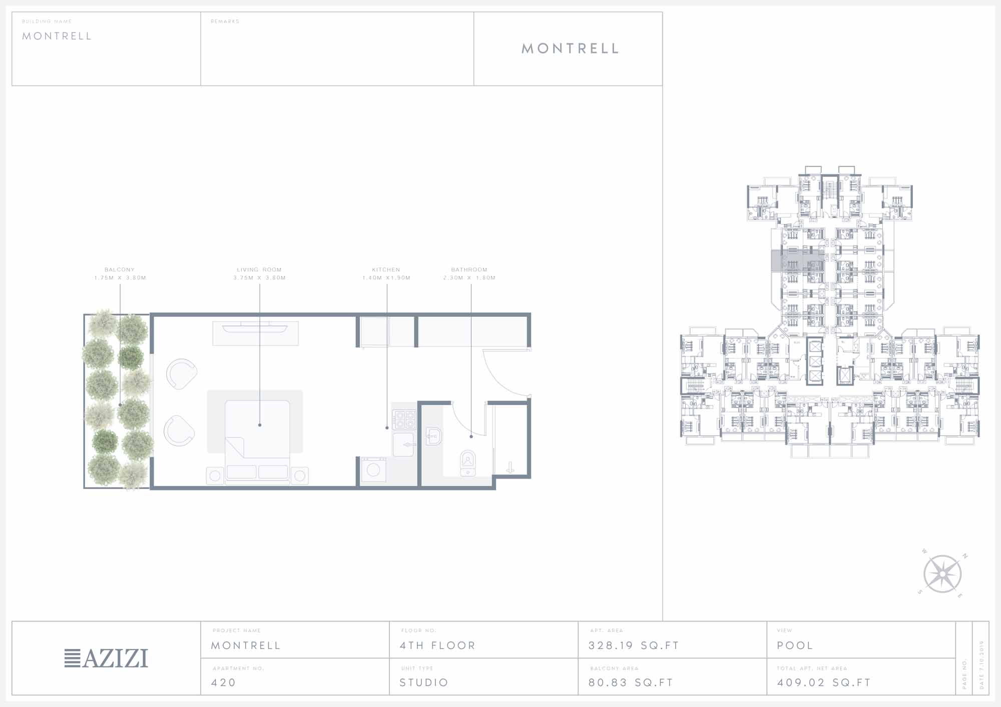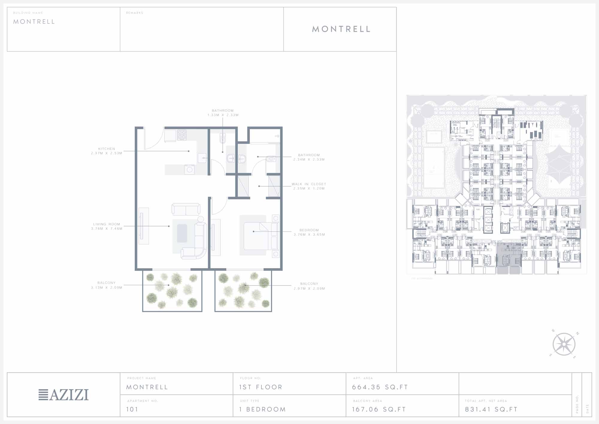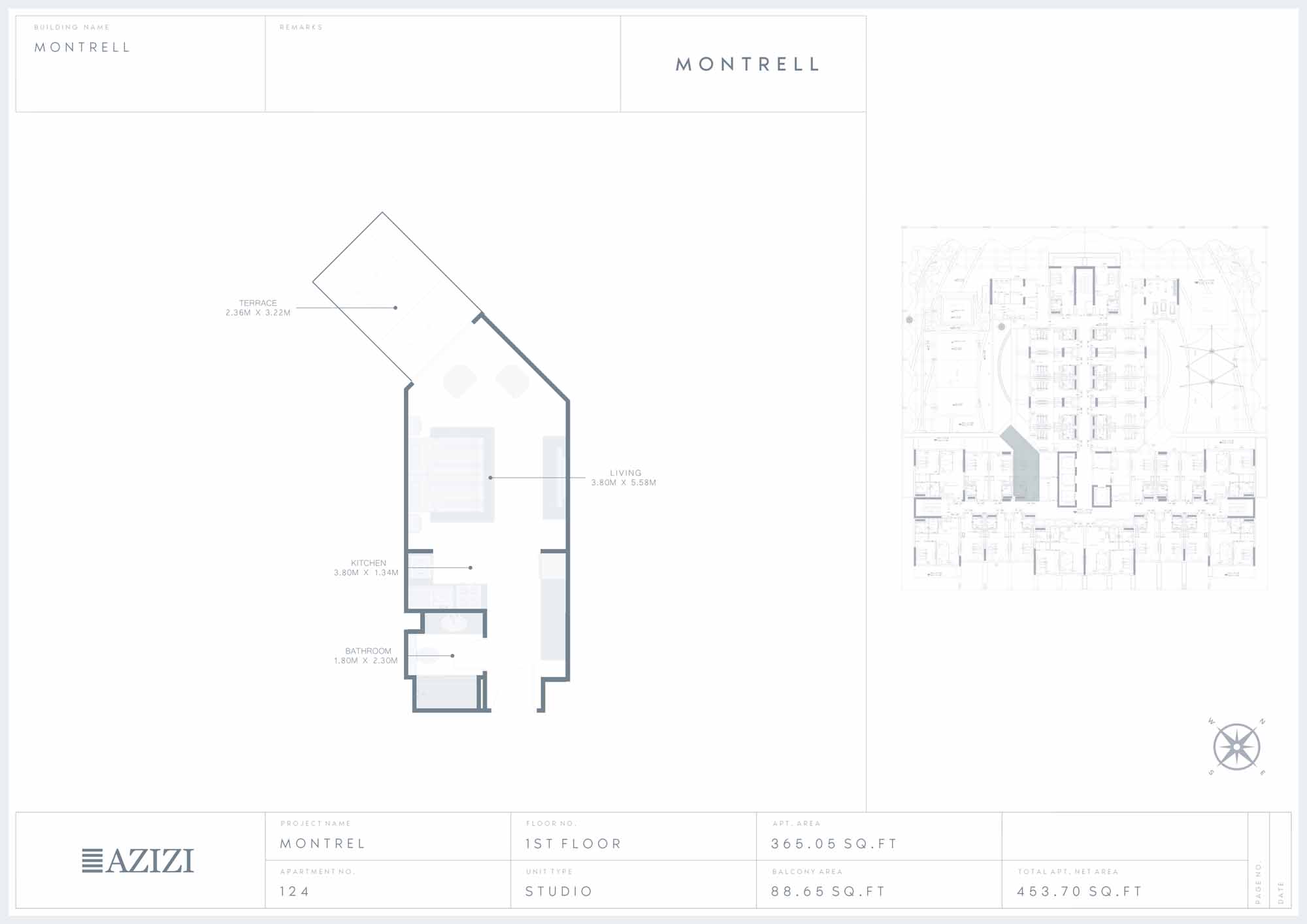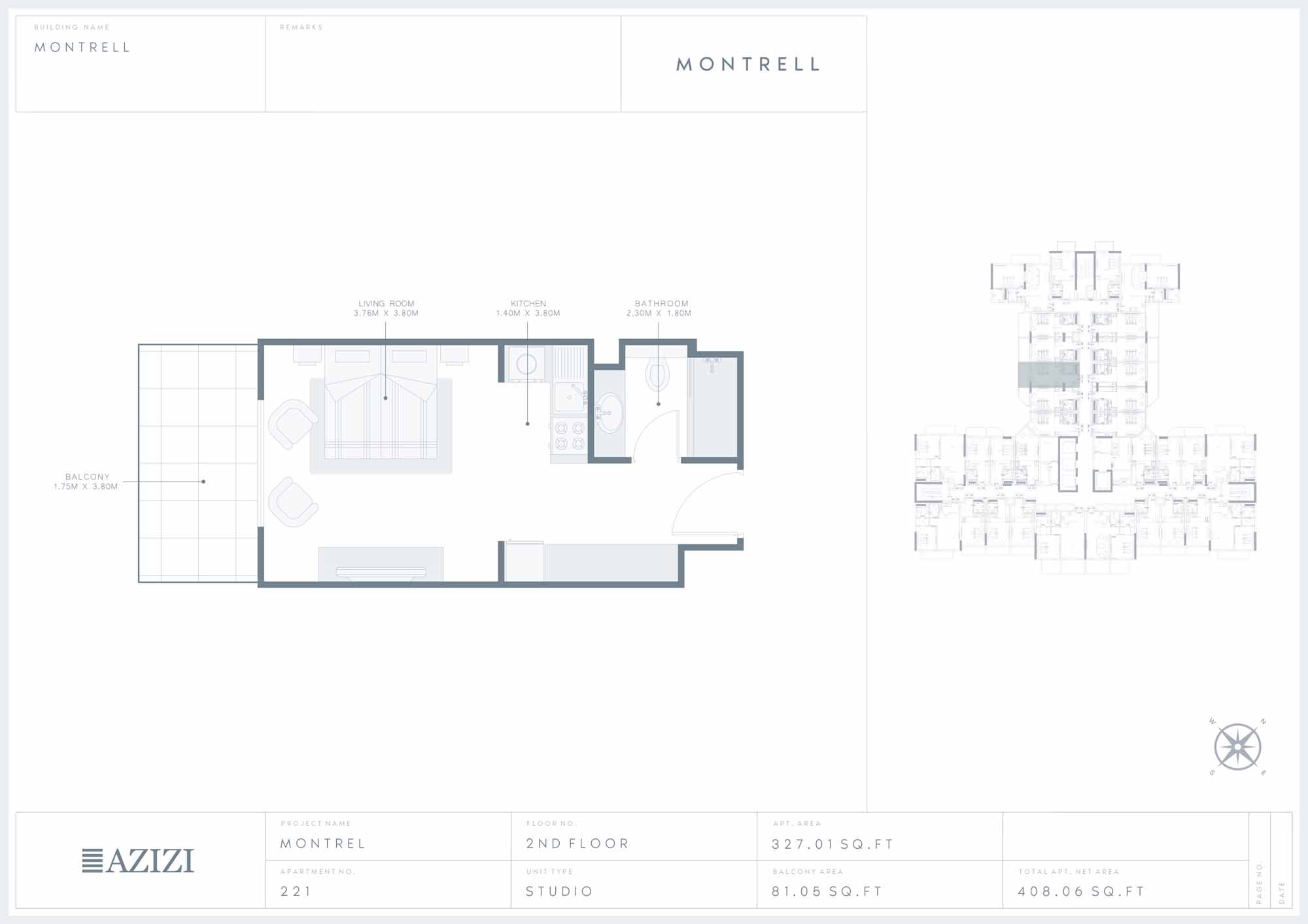 Azizi Montrell by Azizi Developments located at Al Furjan offers studio and 1-bedroom apartments that are some of the most spacious in the area. Both the inside and outside of the building are of premium quality, showcasing cutting-edge architectural trends.