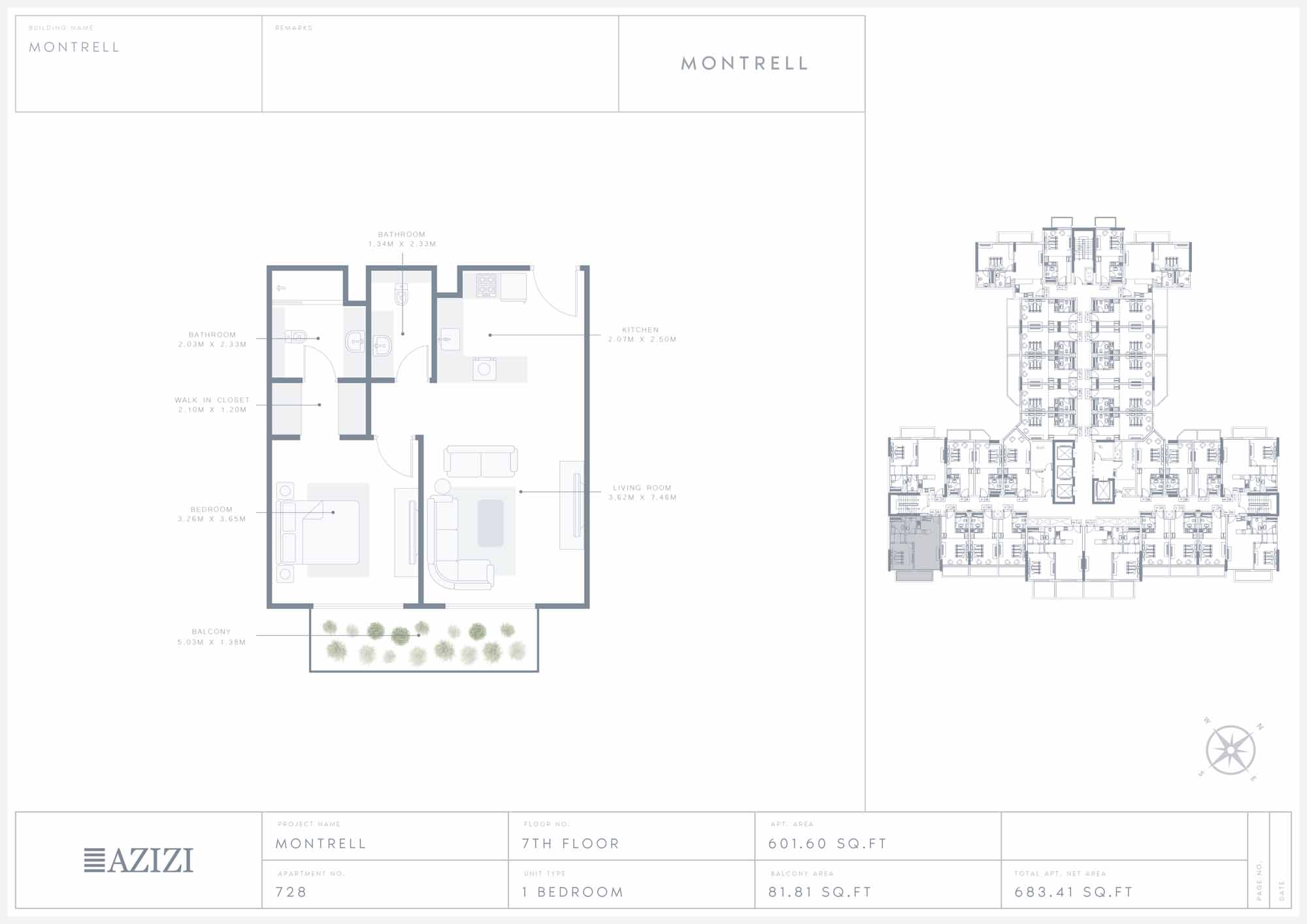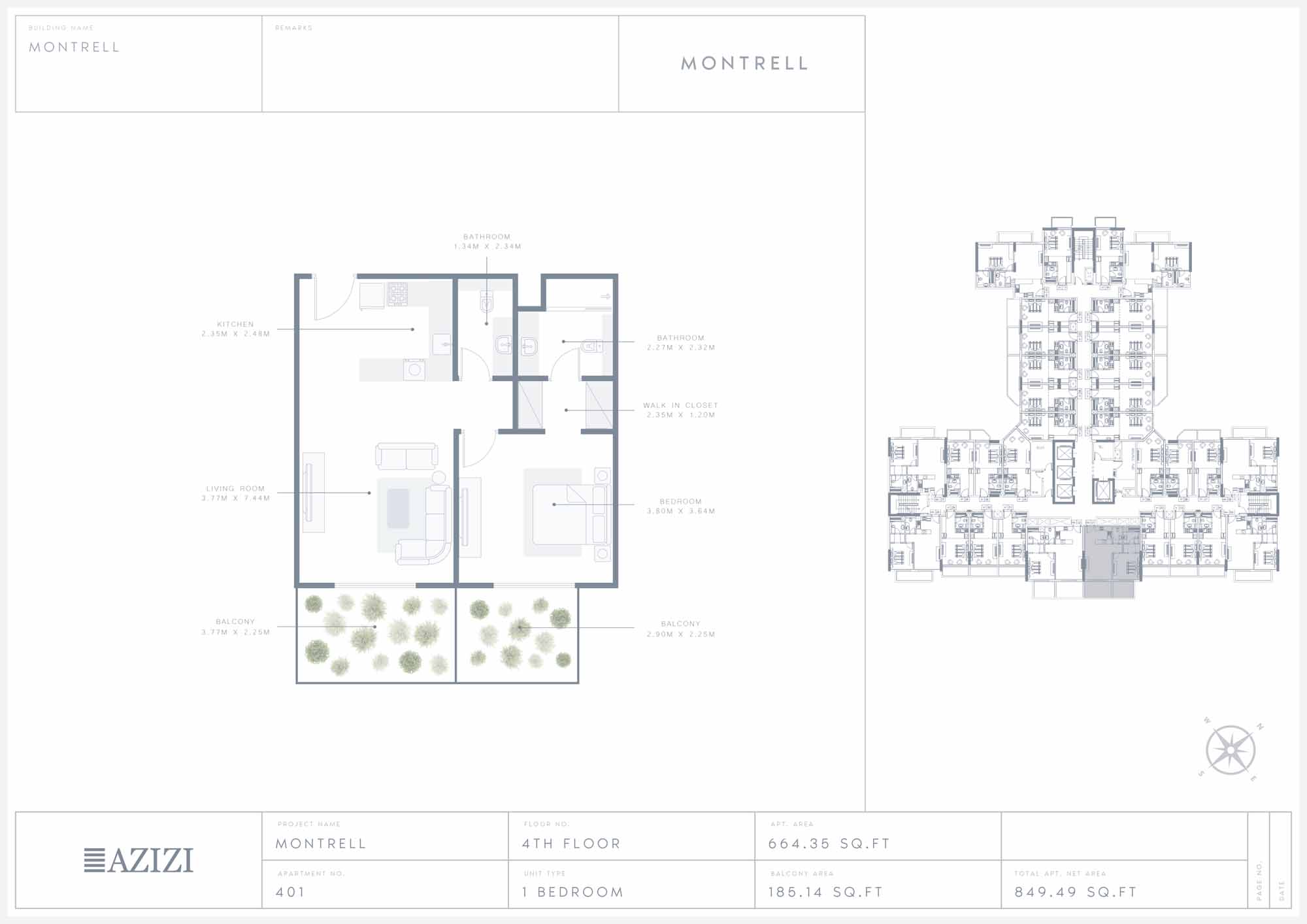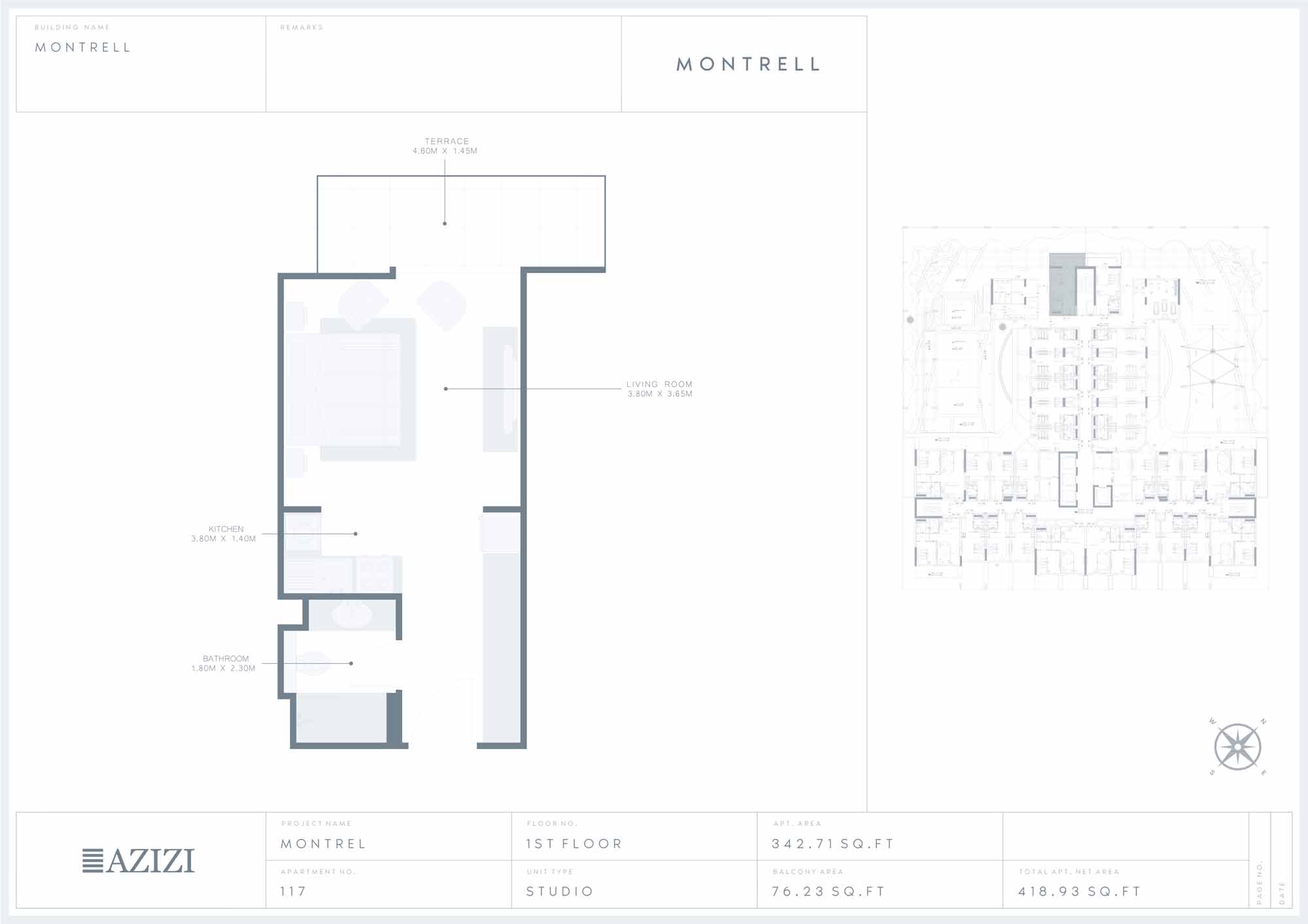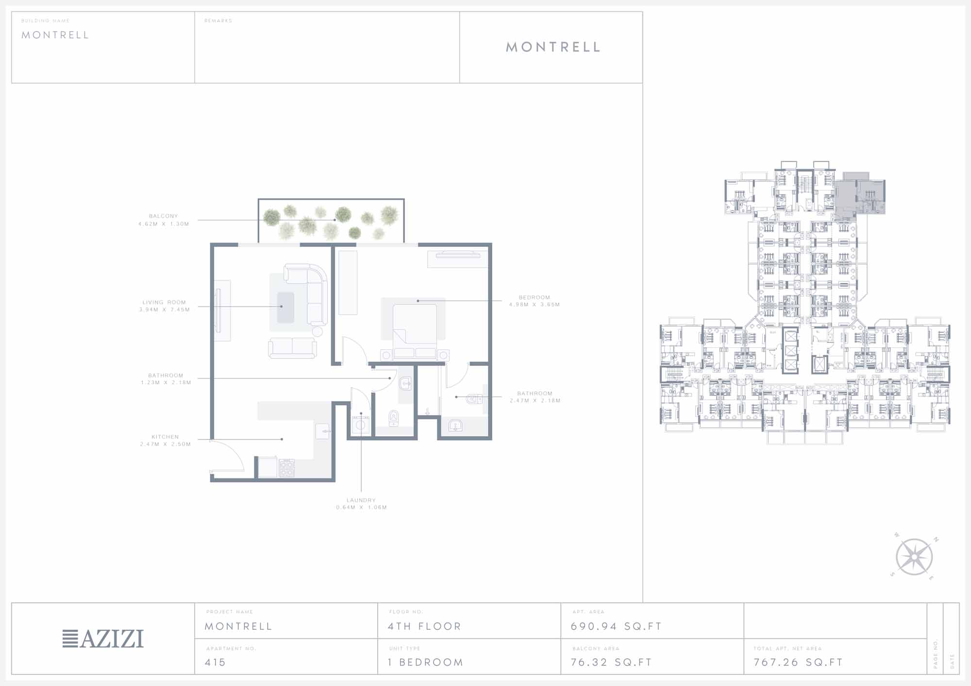 Azizi Montrell by Azizi Developments located at Al Furjan offers studio and 1-bedroom apartments that are some of the most spacious in the area. Both the inside and outside of the building are of premium quality, showcasing cutting-edge architectural trends.
