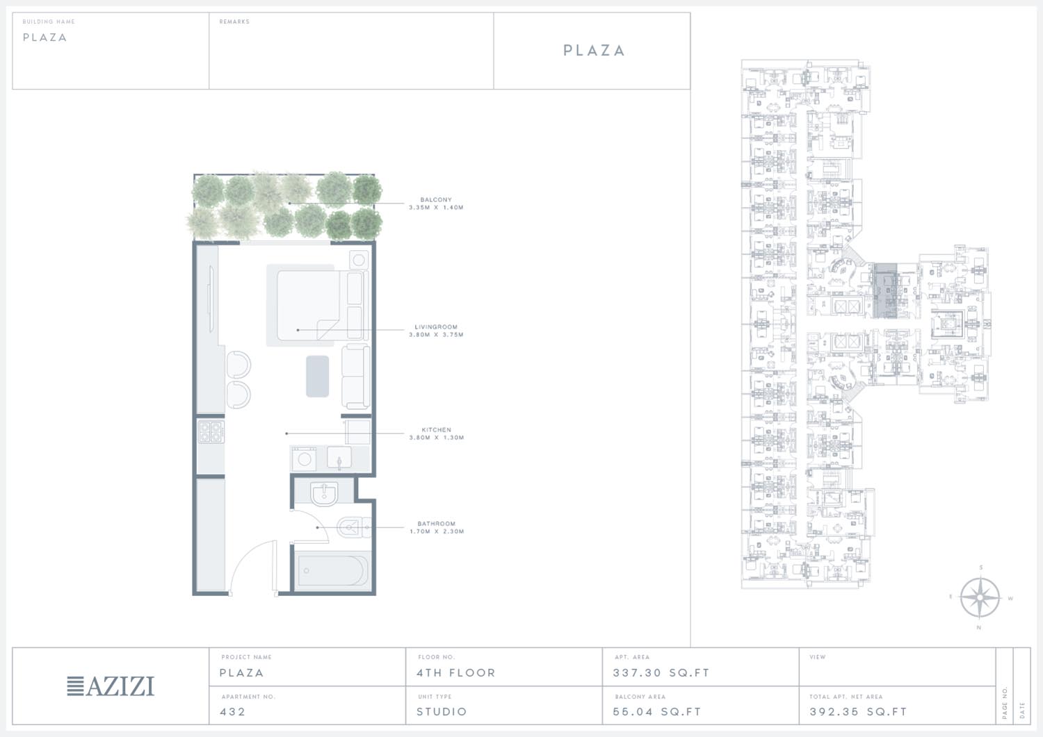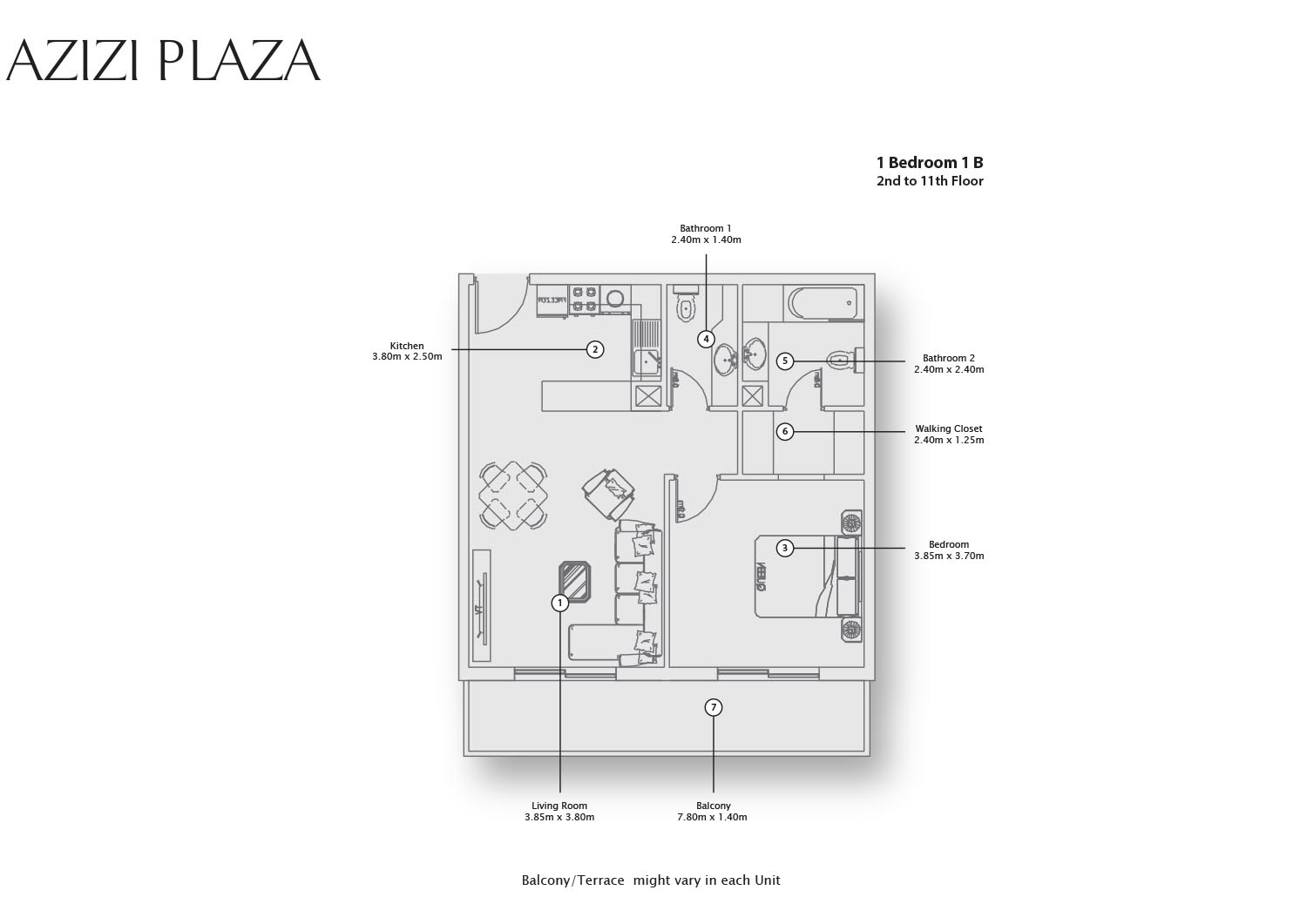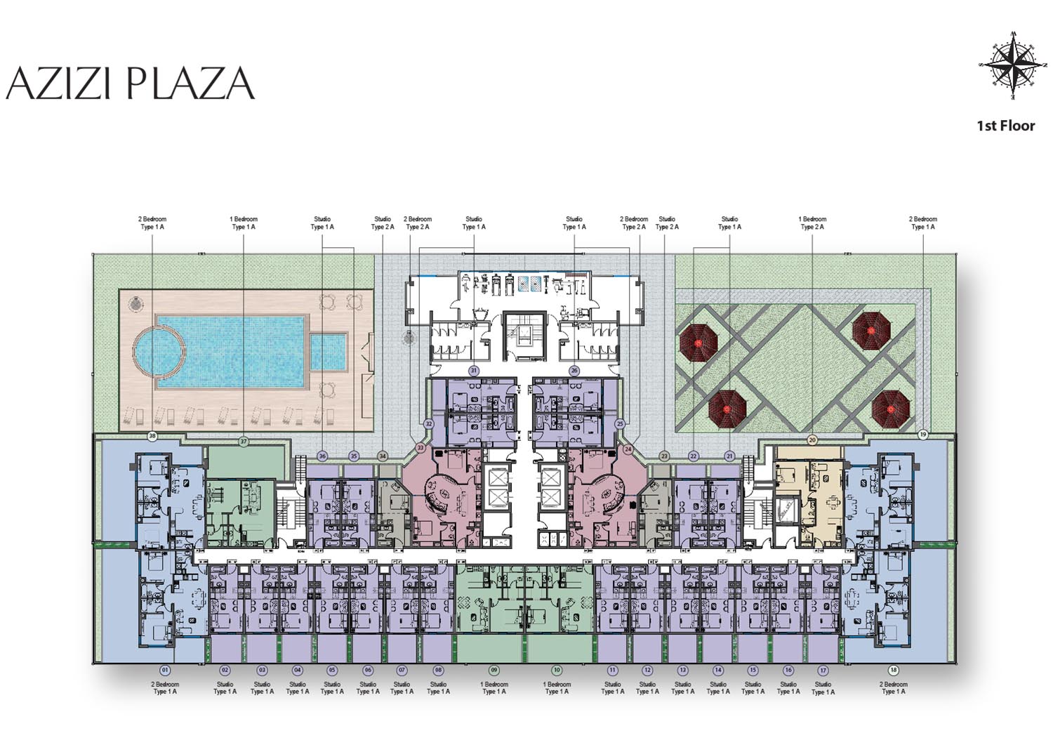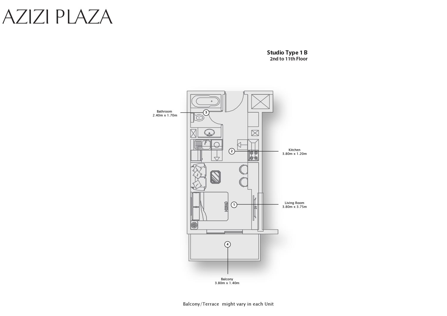 Azizi Plaza's apartment residences developed by Azizi Developments in Al Furjan, Dubai, come in a variety of floor plans, including studios, 1 and 2 bedroom configurations. The building's architecture as a whole is a reflection of the occupants' desire for personal comforts and conveniences. The bedroom apartments will provide the residents with a cutting-edge modern lifestyle.