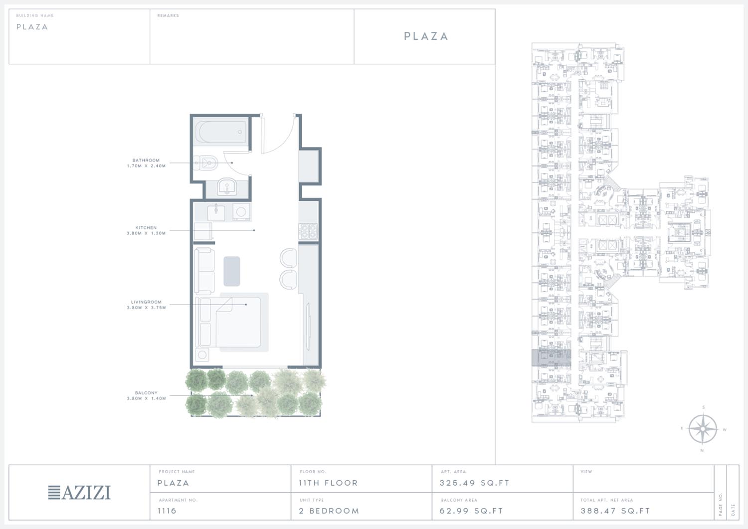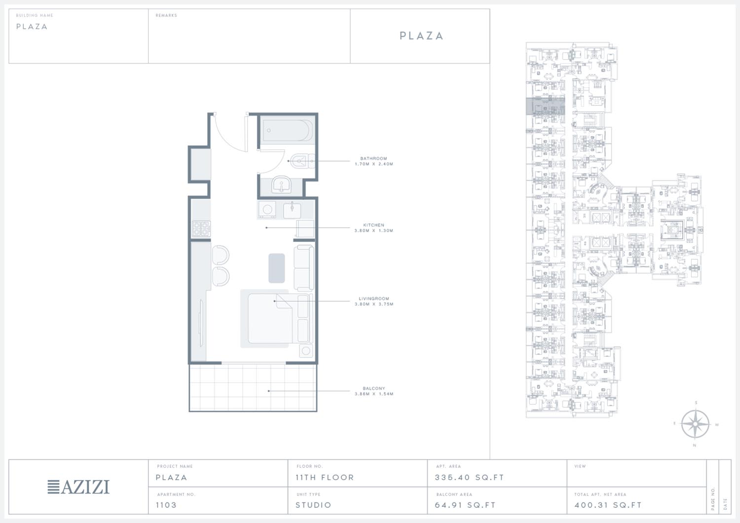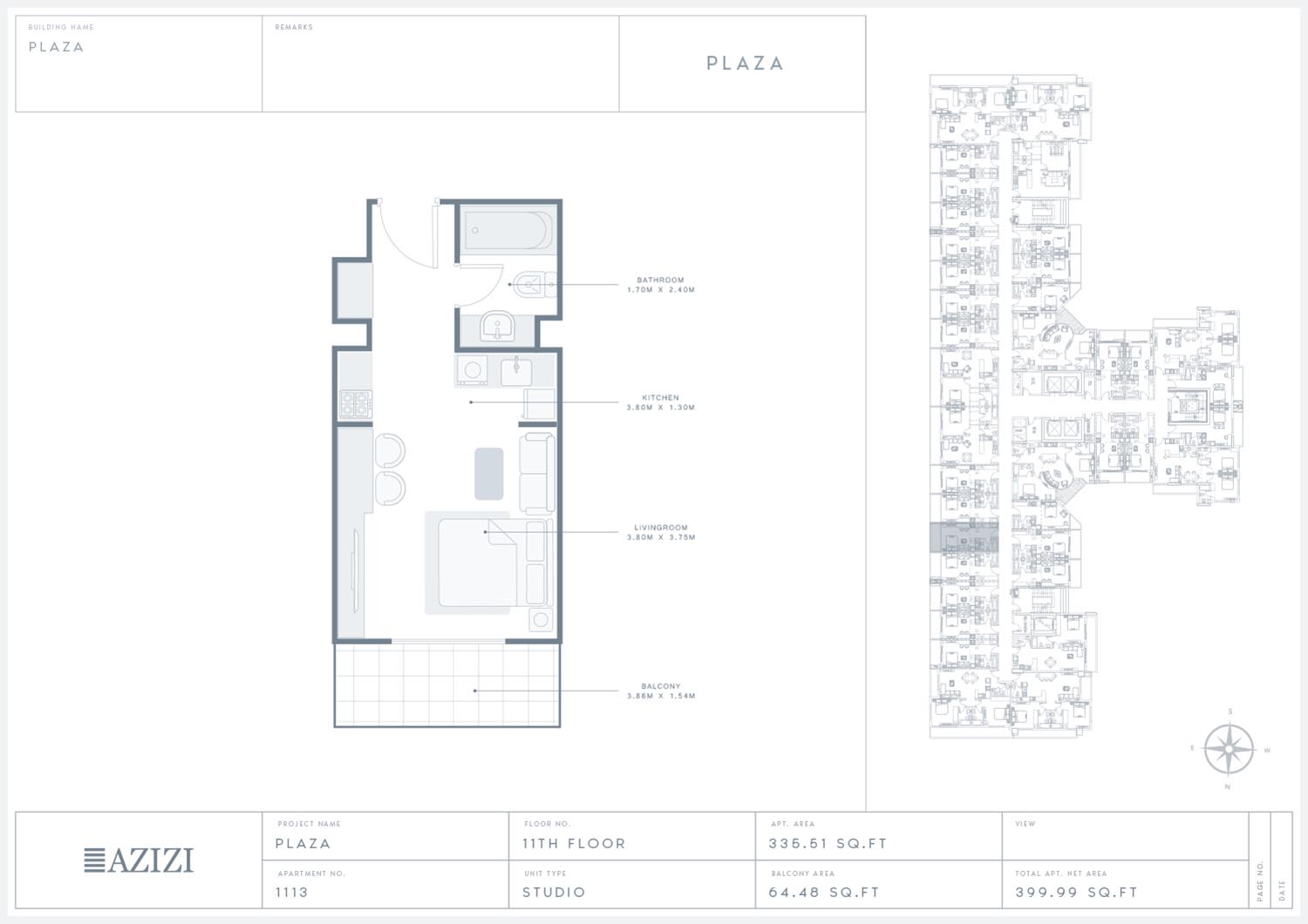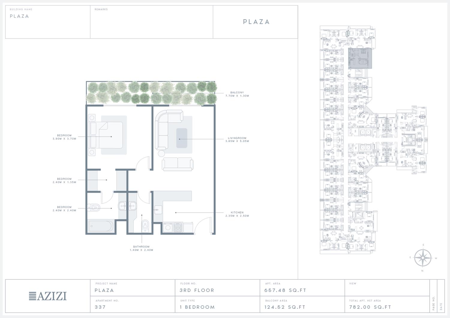 Azizi Plaza's apartment residences developed by Azizi Developments in Al Furjan, Dubai, come in a variety of floor plans, including studios, 1 and 2 bedroom configurations. The building's architecture as a whole is a reflection of the occupants' desire for personal comforts and conveniences. The bedroom apartments will provide the residents with a cutting-edge modern lifestyle.