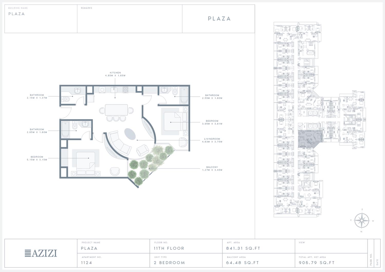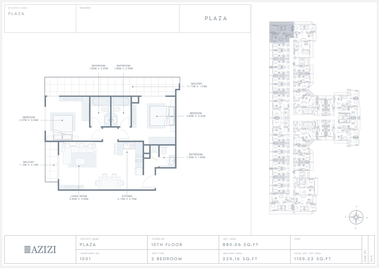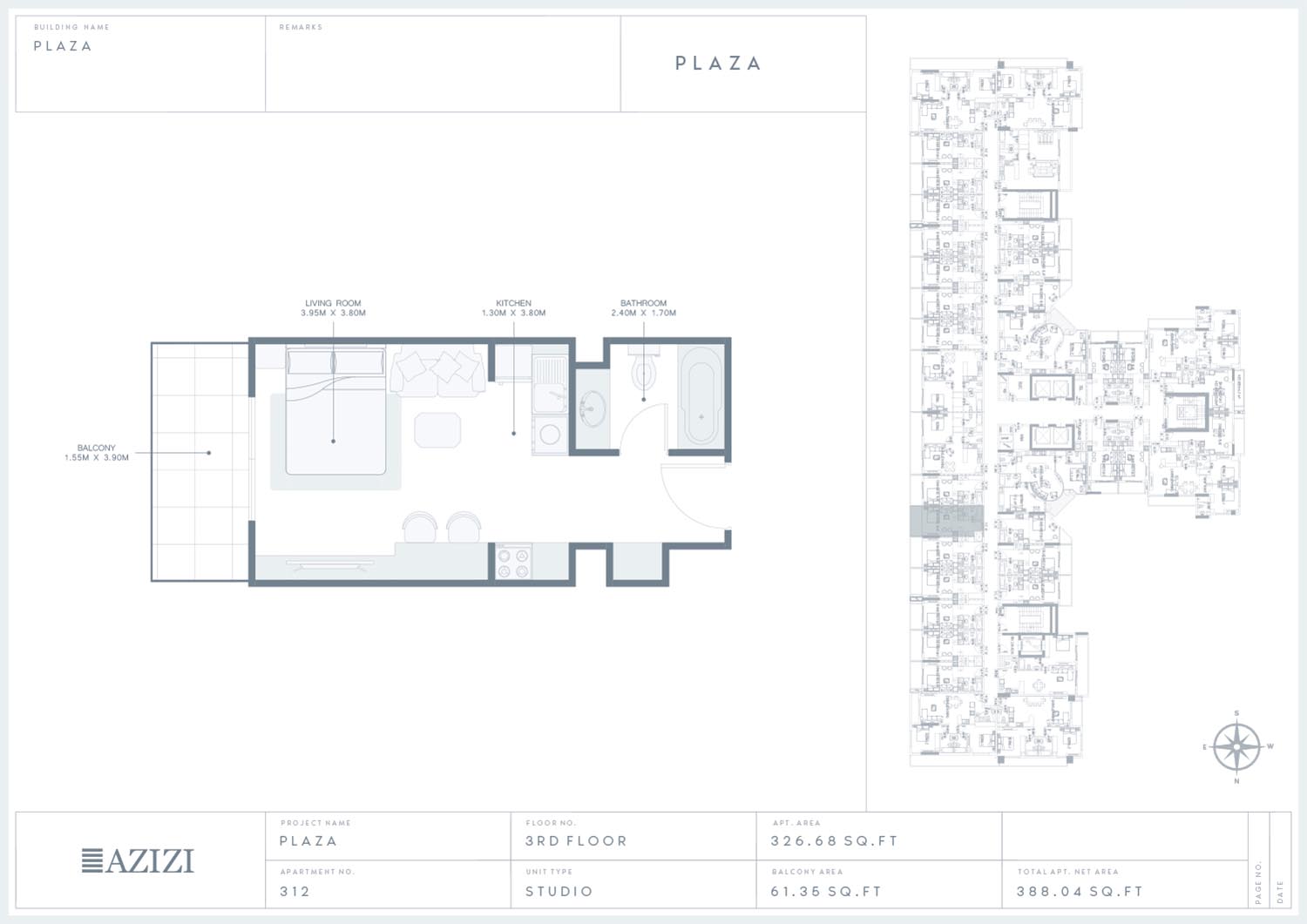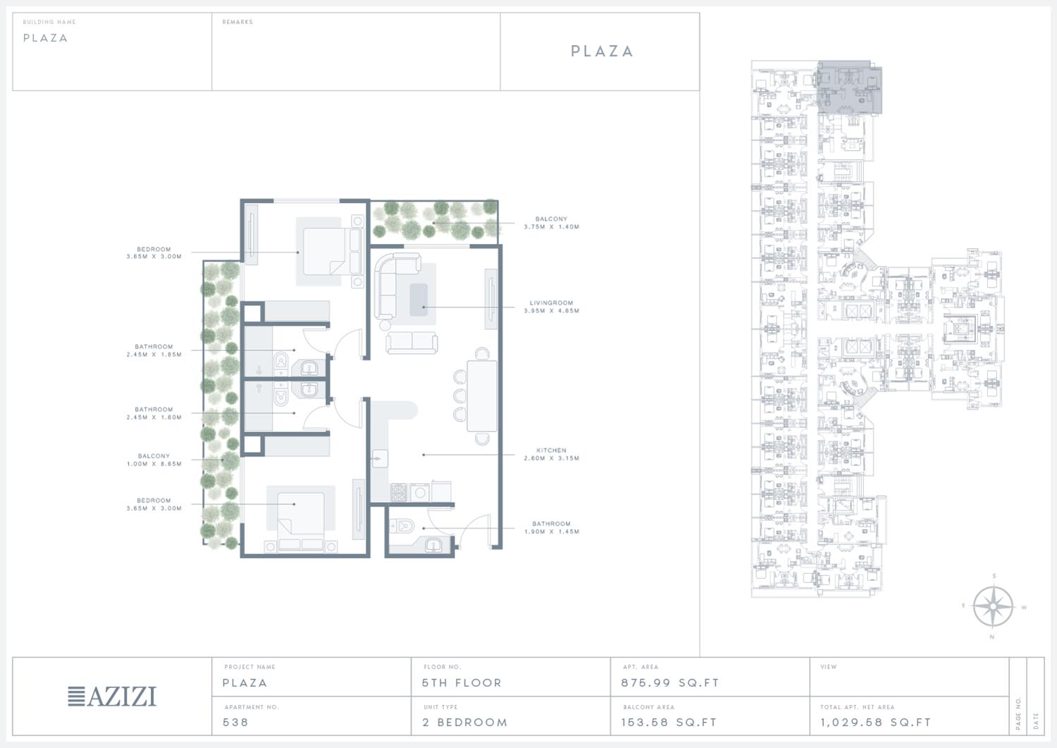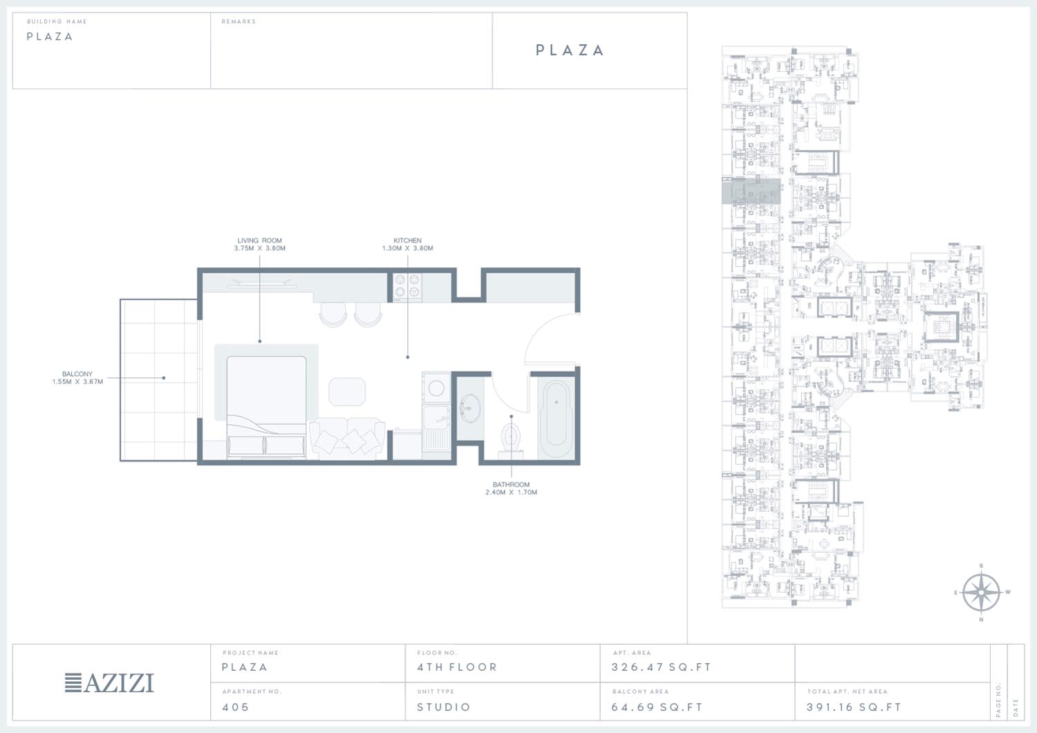 Azizi Plaza's apartment residences developed by Azizi Developments in Al Furjan, Dubai, come in a variety of floor plans, including studios, 1 and 2 bedroom configurations. The building's architecture as a whole is a reflection of the occupants' desire for personal comforts and conveniences. The bedroom apartments will provide the residents with a cutting-edge modern lifestyle.