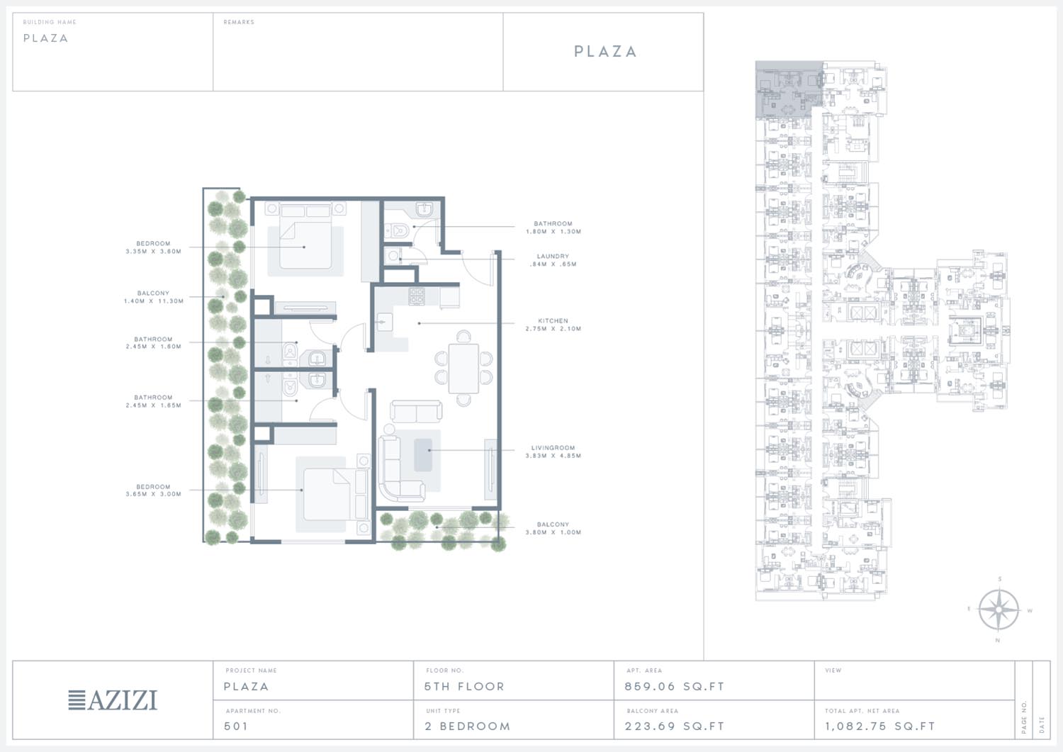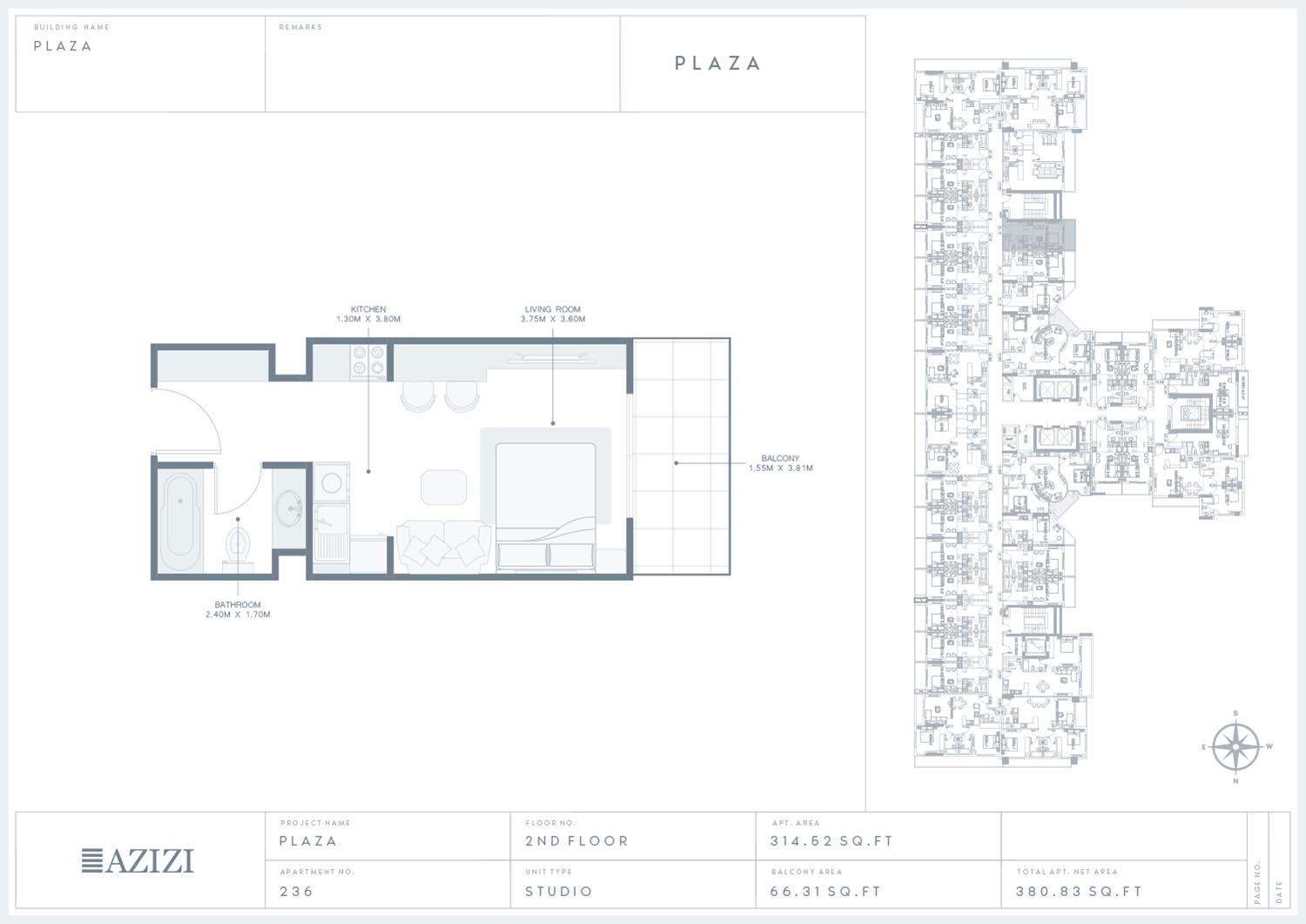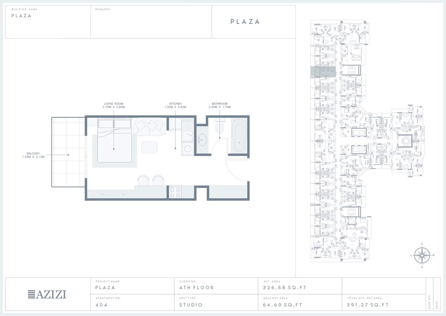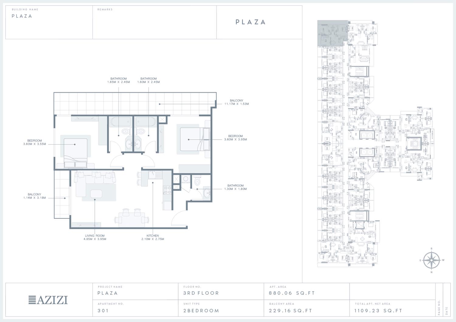 Azizi Plaza's apartment residences developed by Azizi Developments in Al Furjan, Dubai, come in a variety of floor plans, including studios, 1 and 2 bedroom configurations. The building's architecture as a whole is a reflection of the occupants' desire for personal comforts and conveniences. The bedroom apartments will provide the residents with a cutting-edge modern lifestyle.