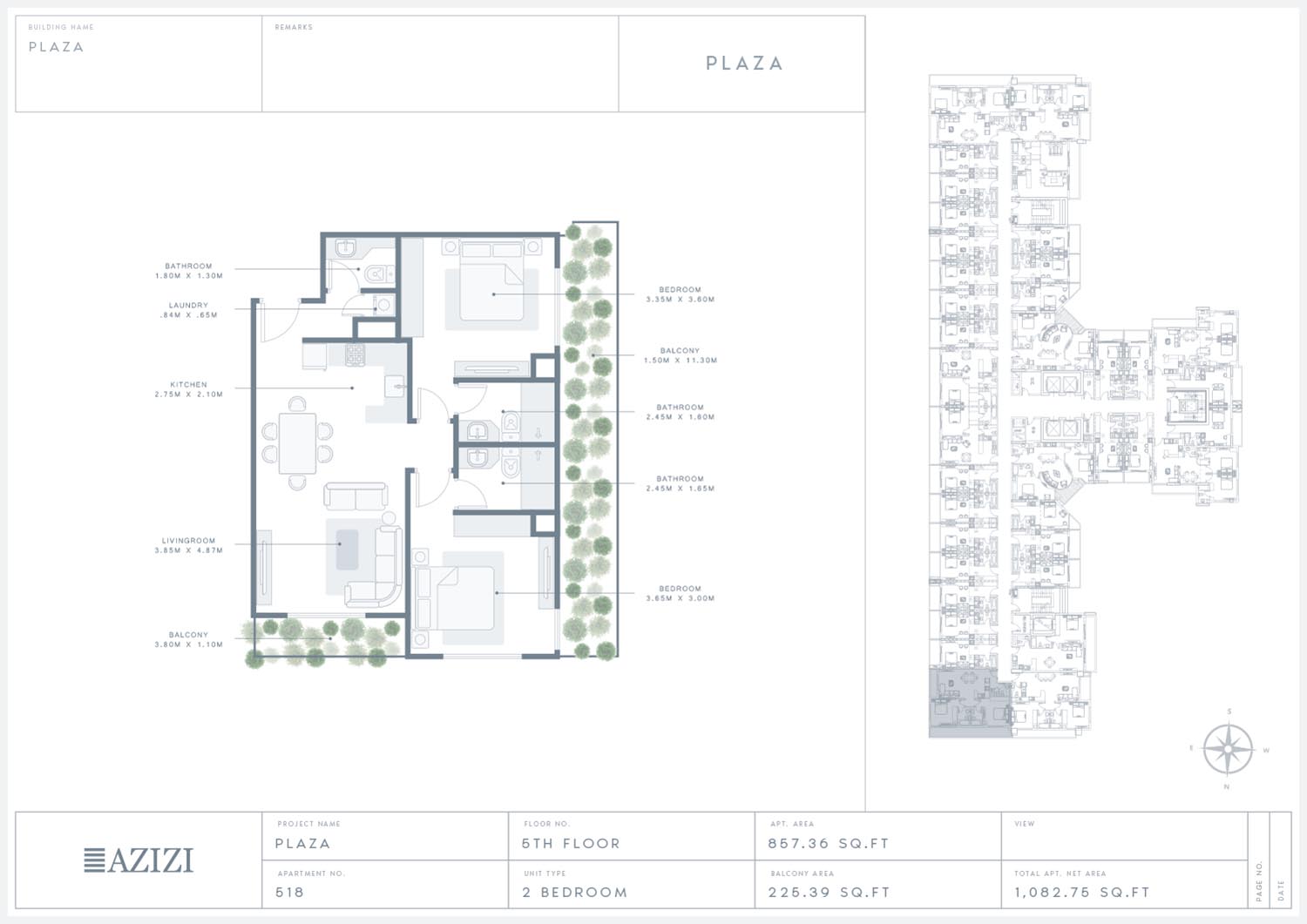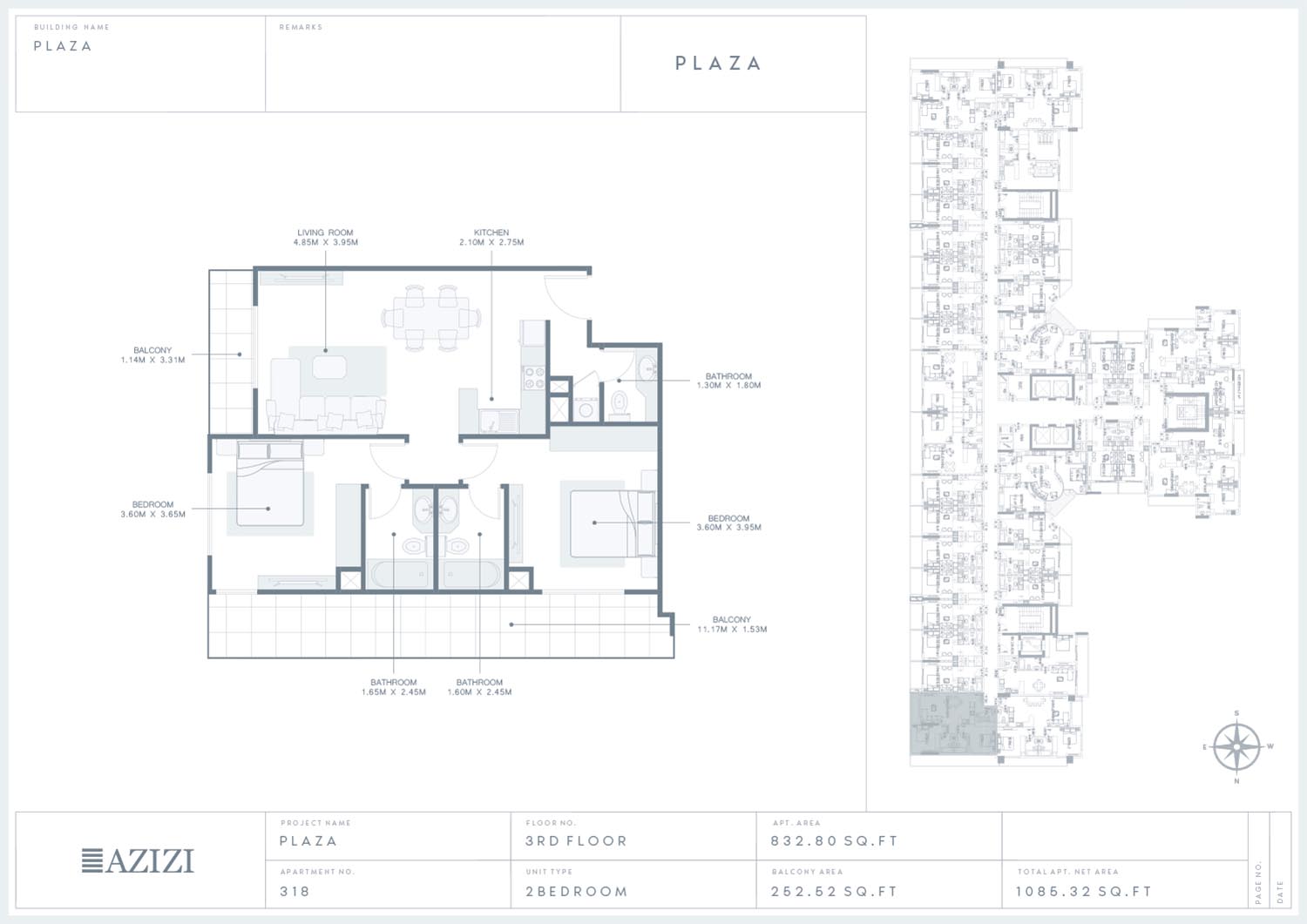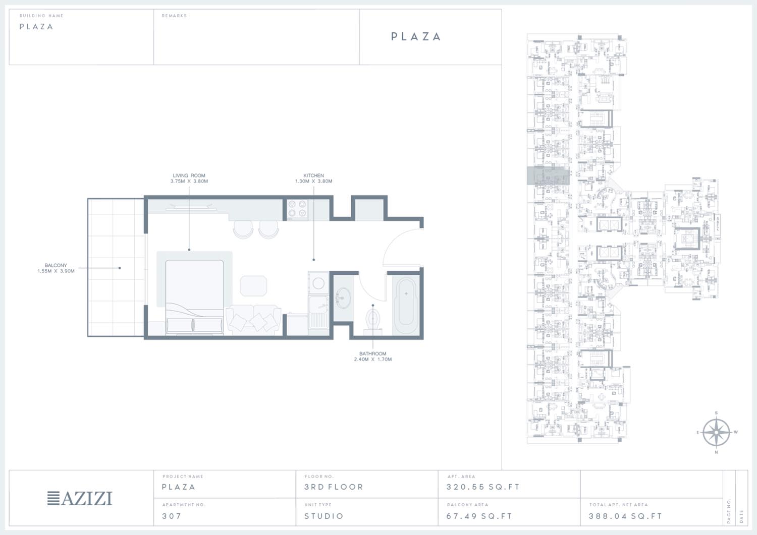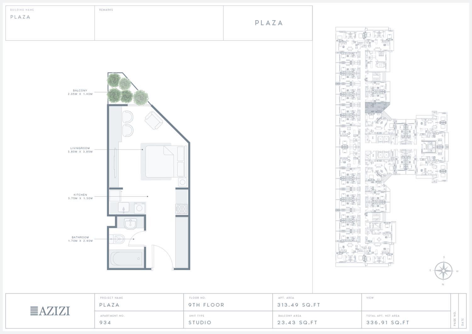 Azizi Plaza's apartment residences developed by Azizi Developments in Al Furjan, Dubai, come in a variety of floor plans, including studios, 1 and 2 bedroom configurations. The building's architecture as a whole is a reflection of the occupants' desire for personal comforts and conveniences. The bedroom apartments will provide the residents with a cutting-edge modern lifestyle.