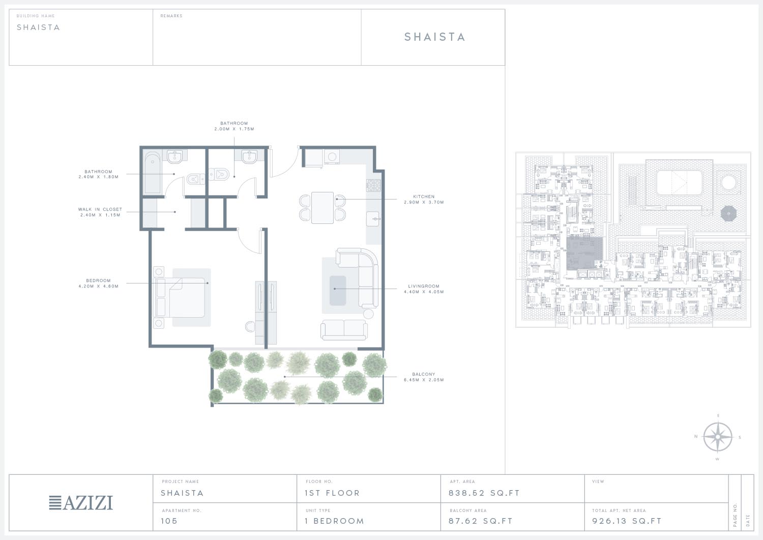 Azizi Shaista Serviced Residences, developed by Azizi Developments and located in Al Furjan offers extensive floor plan alternatives with top-notch facilities, including studios, 1 & 2 bedroom apartments. These apartments are completely equipped with cutting-edge fixtures and elegant furniture in a variety of layouts and themes. Inside and outside facilities are available. This residential complex features attractively built apartments with a variety of layouts and options. The apartments are offered in a variety of sizes, each with their own unique characteristics.