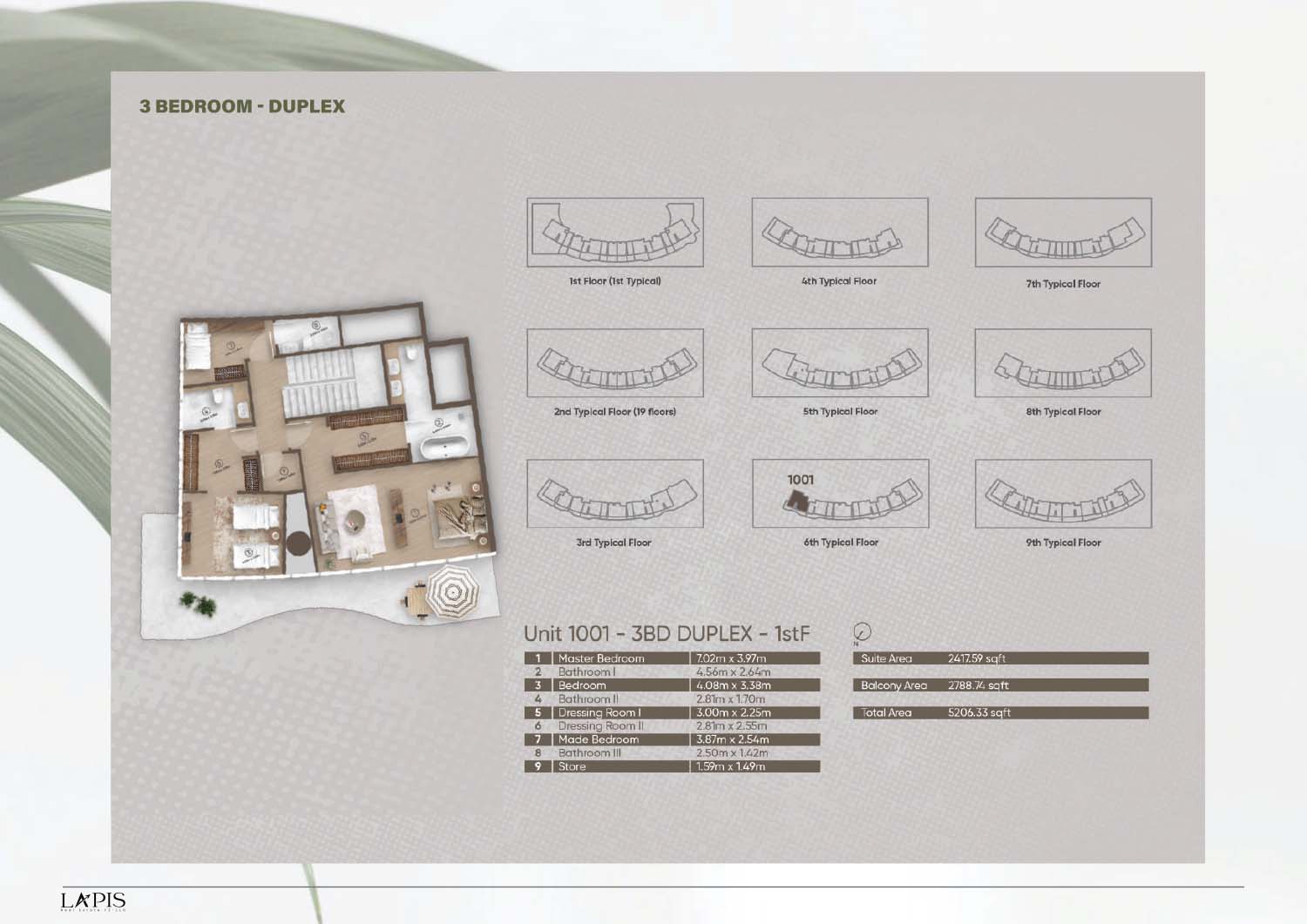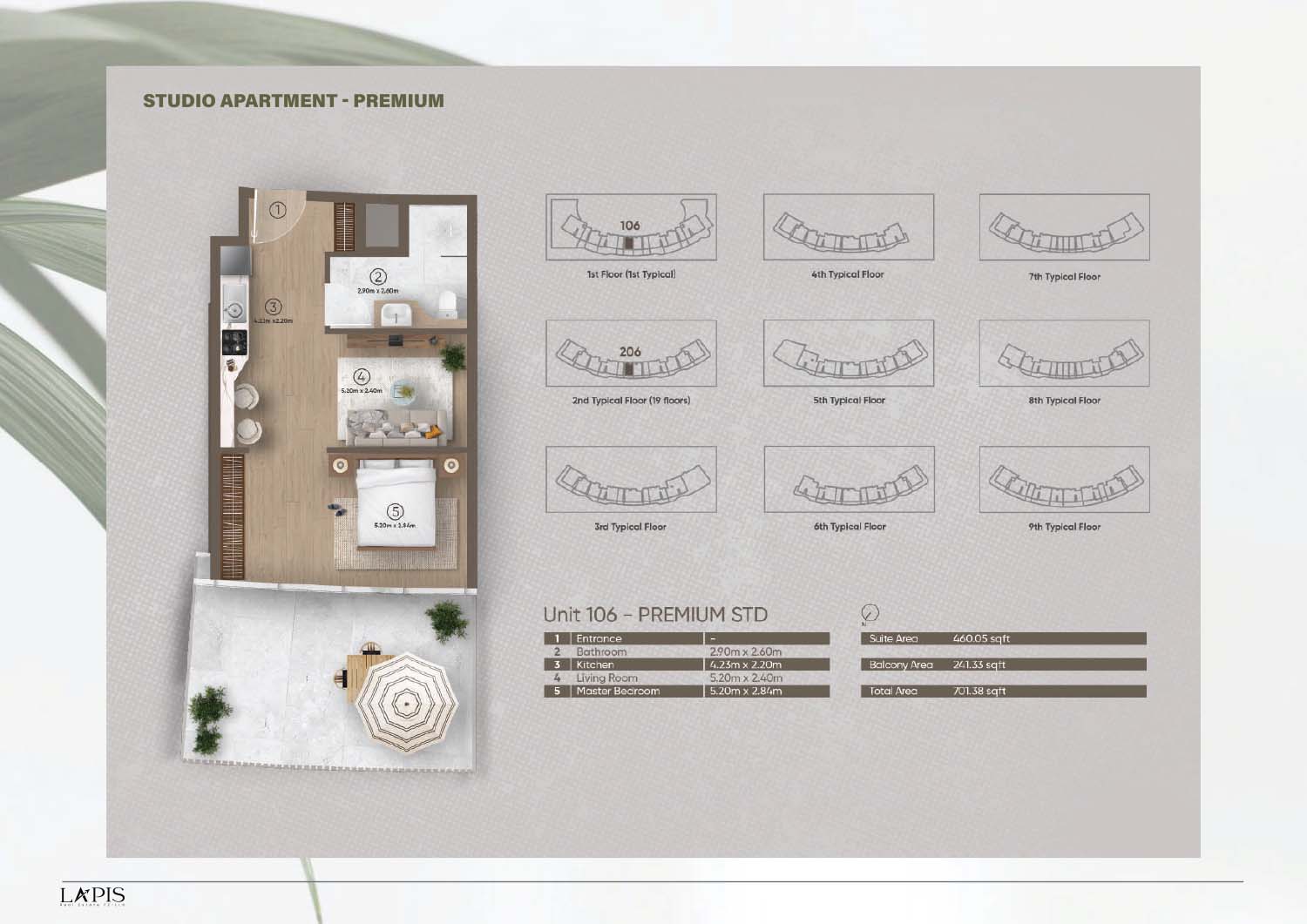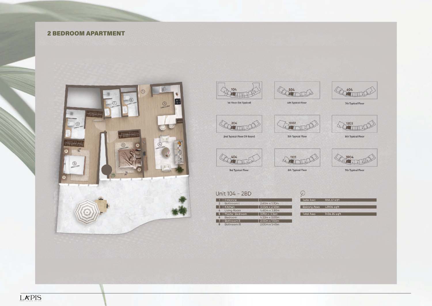 Azure floor plans has been strategically planned with elegant apartments and penthouses with beautiful view of the Arabian Gulf. The planned layout suits a variety of lifestyles, ensuring each apartment feels comfortable. All units include spacious balconies, modular kitchen, and fully fitted bathrooms with quality fixtures and high- end amenities.