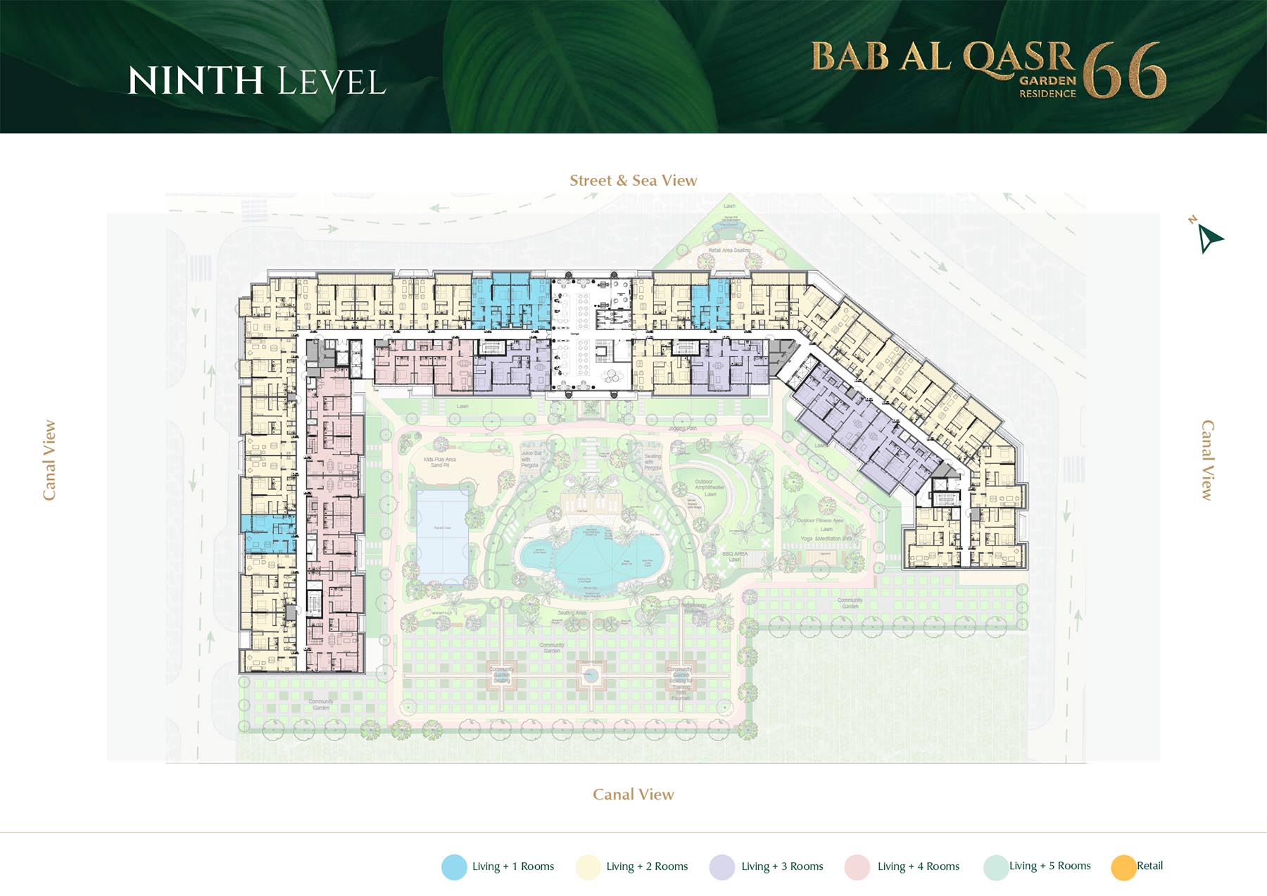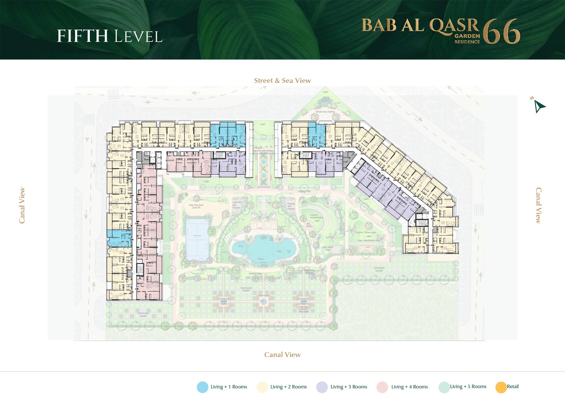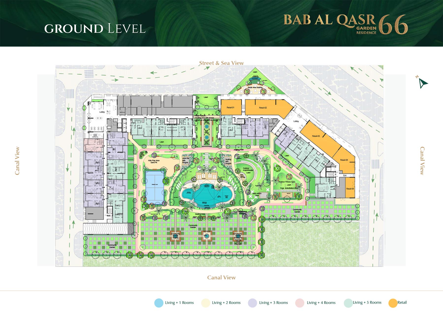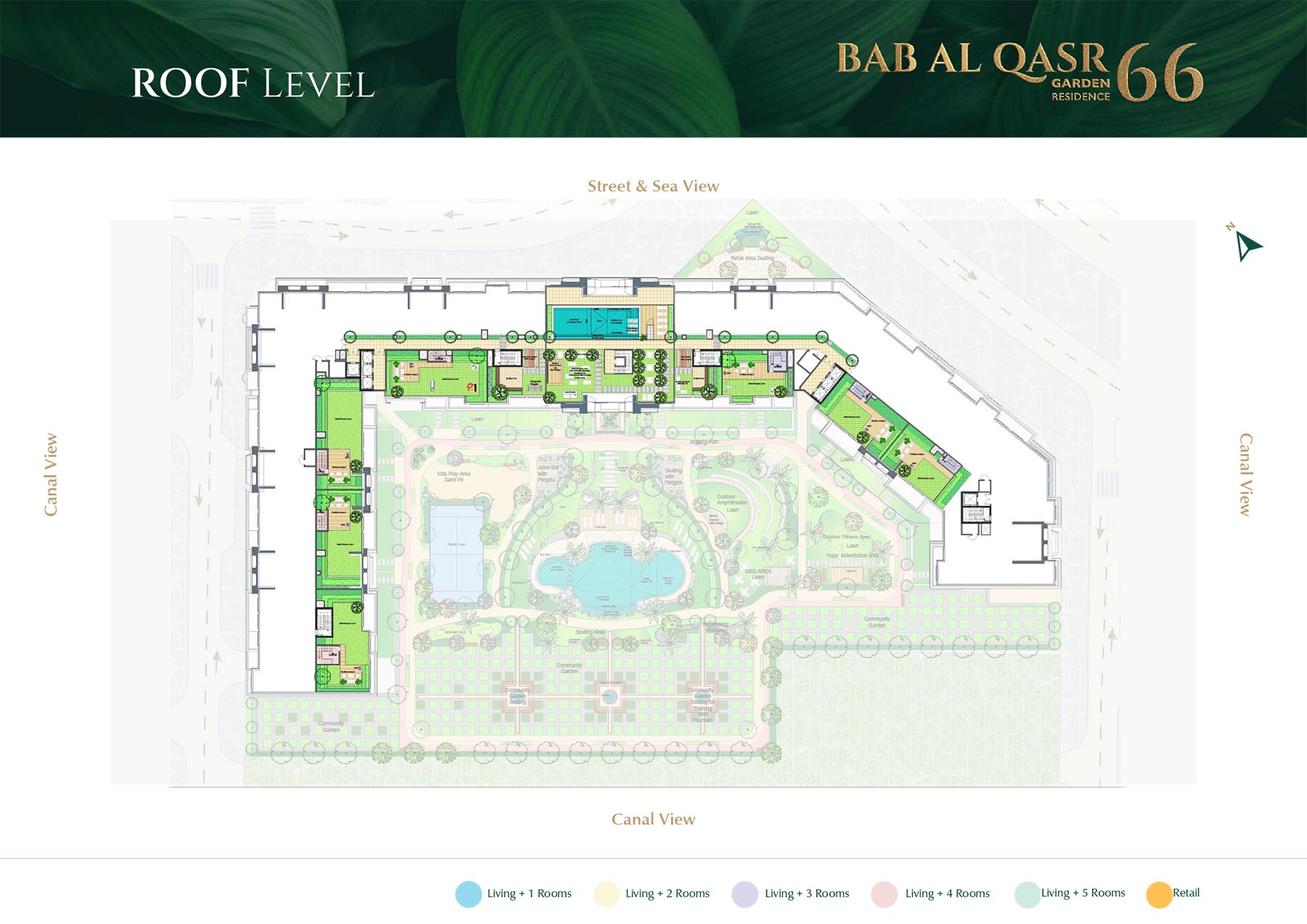 Bab Al Qasr Garden Residence 66 provides a brilliant combination of floor plans of 1, 2, 3, 4 & 5-bedroom apartments, villas & duplexes that are luxury and branded. The building has two basement floors, and ground floor with retail conveniences, and nine residential floors with rooftop gardens. Homes vary in the extent of splendid, 1-bedroom apartments to the spacious number of 5-bedroom houses that are carefully crafted by the high ceiling of 3.6 meters promoting both light and volume. Garden Villas apart ground floors come with exclusive gardens, and the duplexes on the 9th floor have exclusive terraces and rooftop gardens that brings about the villa-in-the-sky settings.