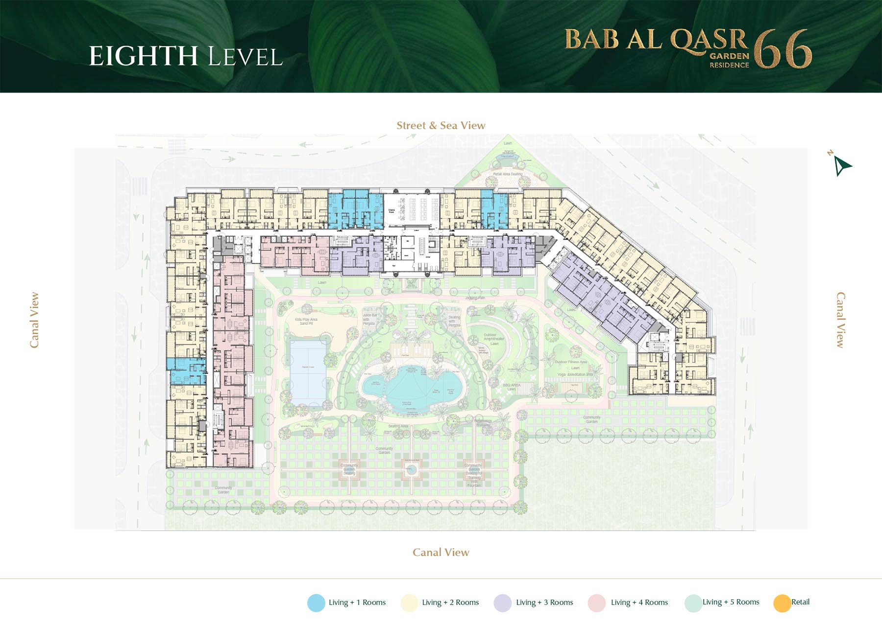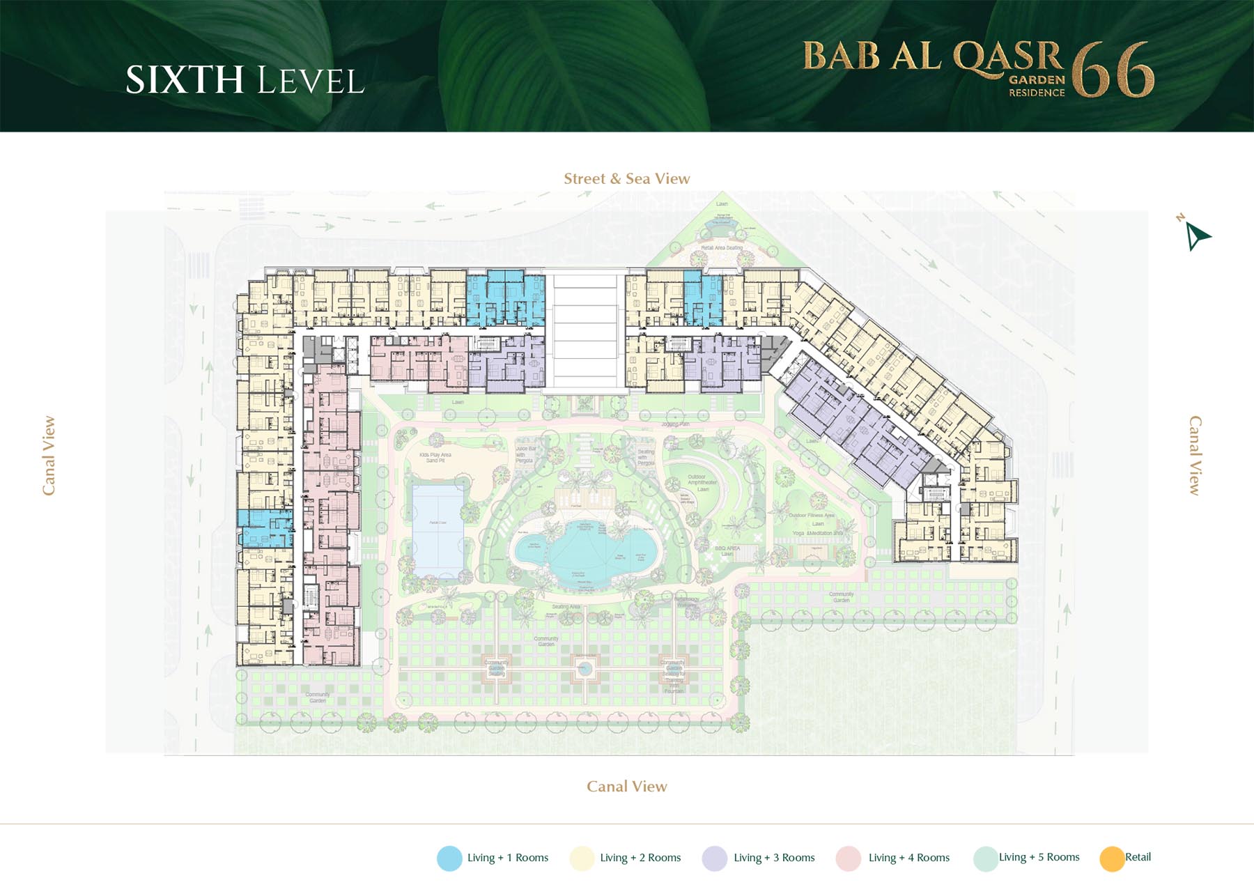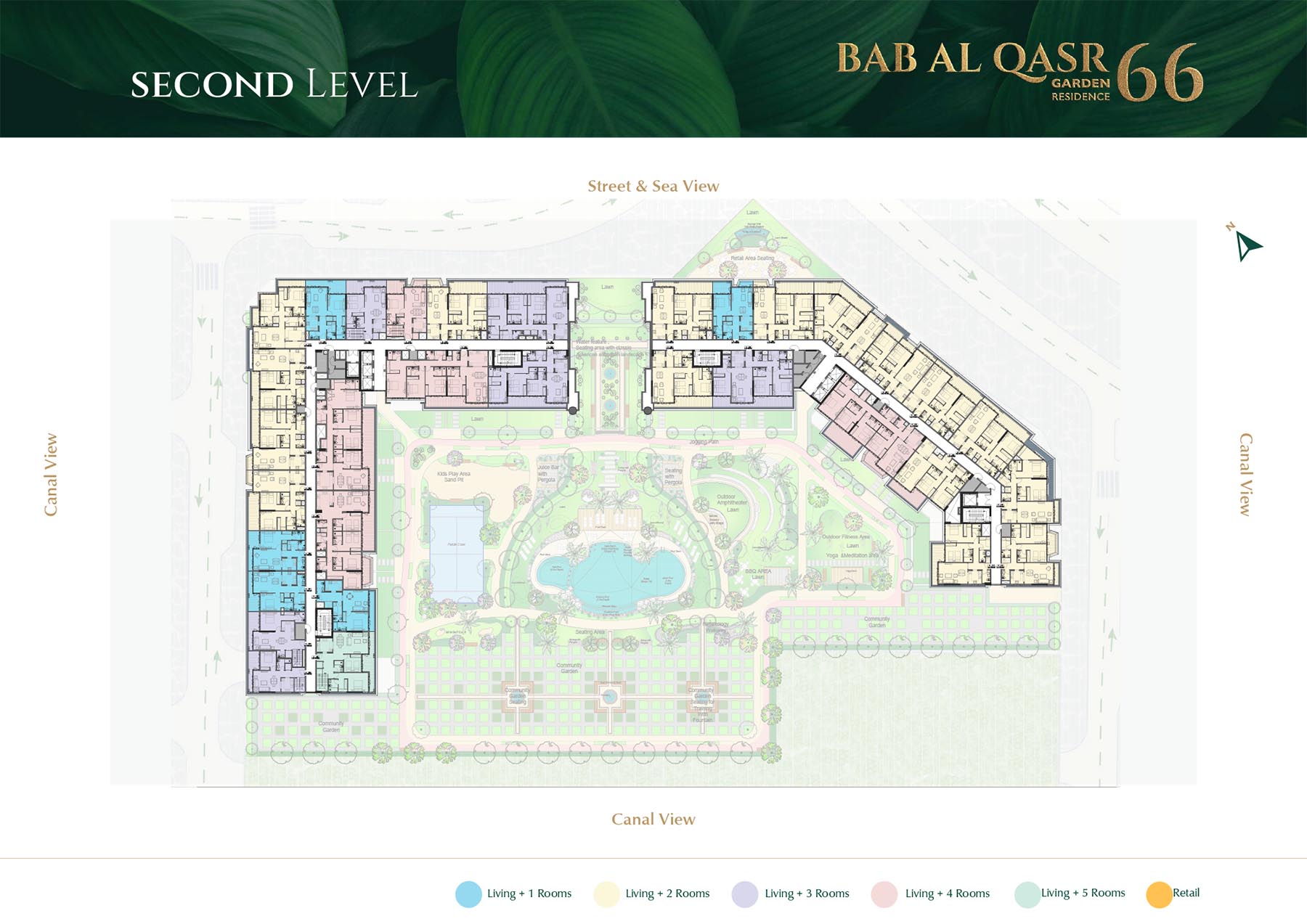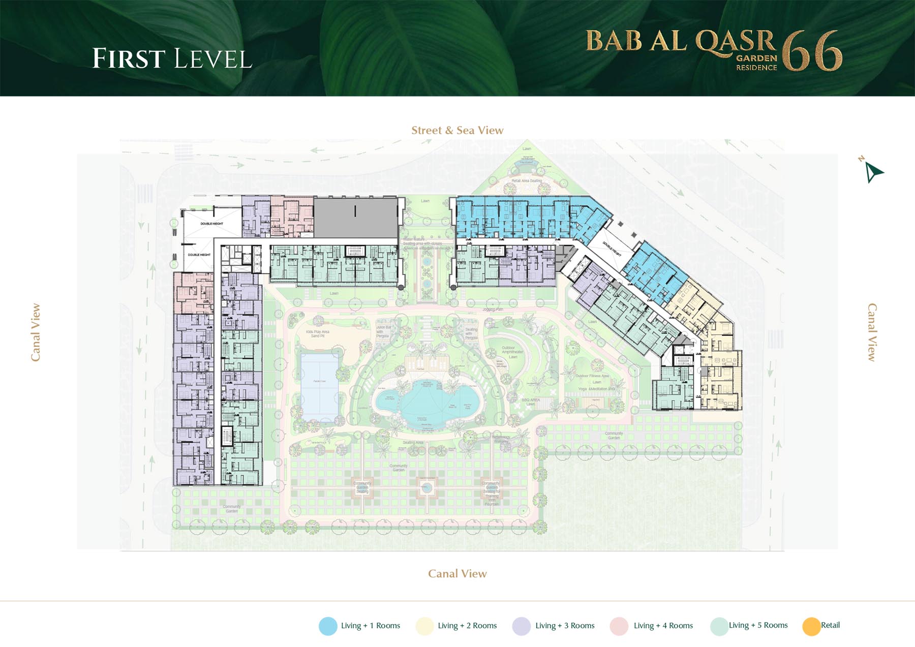 Bab Al Qasr Garden Residence 66 provides a brilliant combination of floor plans of 1, 2, 3, 4 & 5-bedroom apartments, villas & duplexes that are luxury and branded. The building has two basement floors, and ground floor with retail conveniences, and nine residential floors with rooftop gardens. Homes vary in the extent of splendid, 1-bedroom apartments to the spacious number of 5-bedroom houses that are carefully crafted by the high ceiling of 3.6 meters promoting both light and volume. Garden Villas apart ground floors come with exclusive gardens, and the duplexes on the 9th floor have exclusive terraces and rooftop gardens that brings about the villa-in-the-sky settings.
