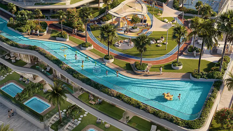 Experience the unique lifestyle by infusing the daily living with state-of-the-art facilities in a plethora of options. The residents will also be able to enjoy various swimming pools including infinity pools with a sea view, as well as wellness dedicated amenities including fully equipped gyms, yoga and relaxation areas. Outdoors, harmony is achieved with the landscaped gardens, waterfront seating area, and shaded lounges which allow people to engage in community activities like eye contact by use of clubhouses, outdoor cinema and entertainment areas. This also involves children play area, jogging track and sports facilities which are a component of development that is of its nature and accommodates all age groups.