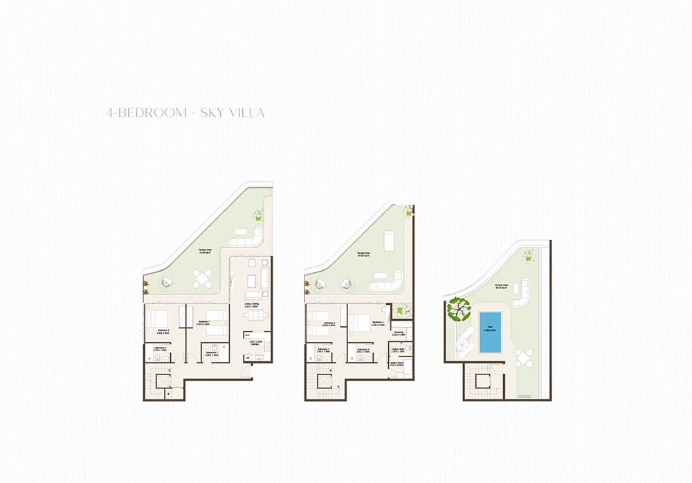 The Bab Al Qasr Sea View Residence 51 floor plans are well-designed to be functional as well as luxurious, offering 2 to 5-bedroom simplex and duplex apartments, 3 to 5-bedroom sky villas and townhouses. Each house is an open plan living and dining room that leads out to large seafront balances or terraces. Locations of bedrooms are carefully located to obtain privacy but have access to natural light and scenery. The development will provide a wide range of designs such as simplex apartments, duplex homes and spacious townhouses, all adjusting to the different kinds of lifestyle. The overall living experience is also improved by high ceilings, clear zoning of space and high quality finishes, which give the homes a combination of functional and classy living conditions.