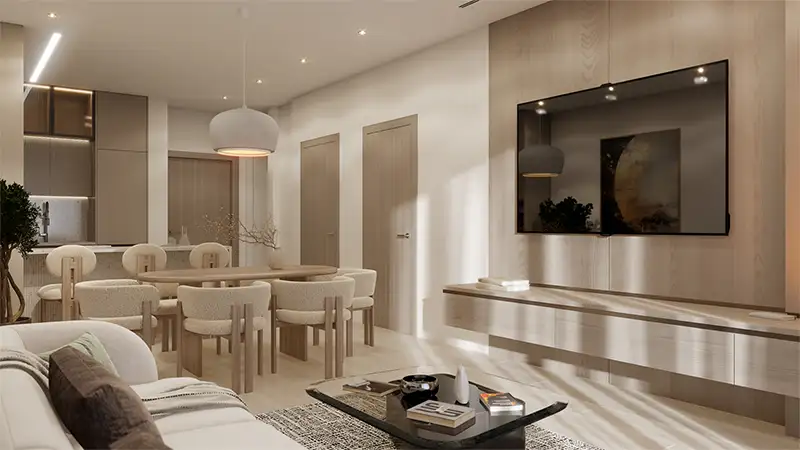- Contemporary architectural design featuring 1 to 3-bedroom apartments and duplex penthouses with thoughtfully planned structural elements.