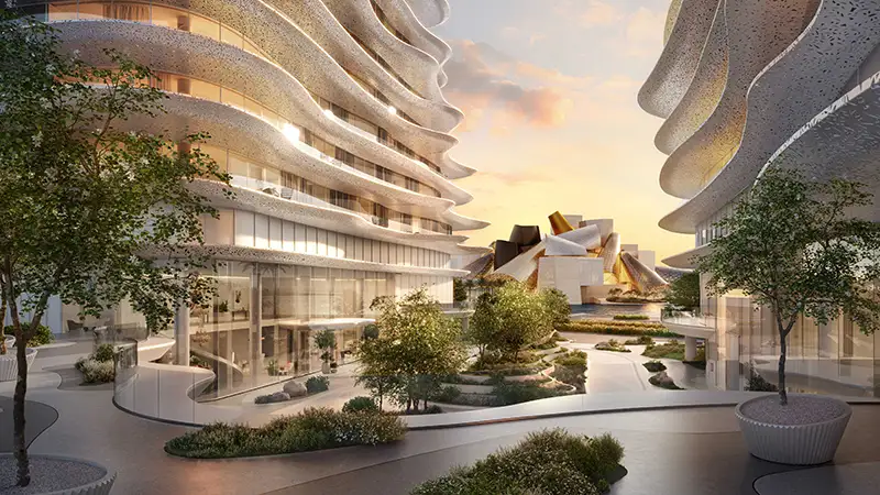 Baccarat Residences Saadiyat is a well master plan vision of high-quality low-density residential village style concept on the background of a high-end cultural and lifestyle environment. Placed well to gain as many as possible views, spaces between each façade is generous and every unit will be facing to the openness for views, the light and free movement of air depending on the closeness of the coastline. In the overall plan, communal areas are geared to appeal to the communalism and solitude, and to facilitate a community surrounded by the elite aesthetics, landscape and architecturally discourse surroundings. The considered interconnected of courtyard spaces, facilities and Saadiyat Island views focuses on the comfort of the residents and the mesmerizing views.