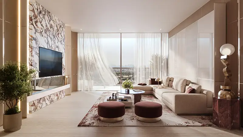 - Interiors are designed with refined finishes, expansive windows, and balanced proportions to create calm, adaptable living environments.