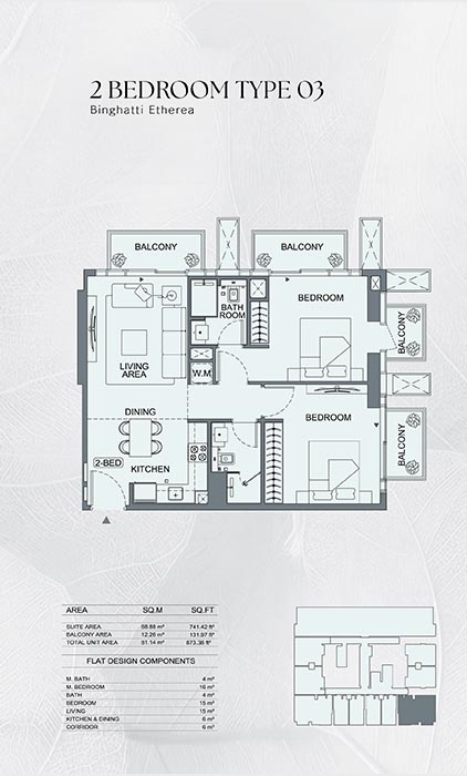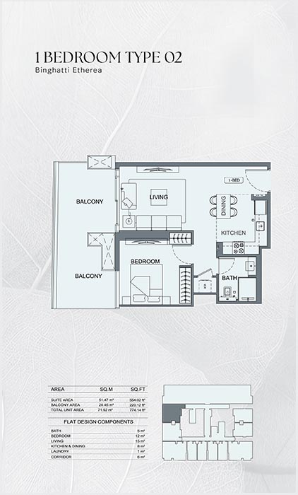 The Binghatti Etherea design includes planning of the floor plan in harmony with the need to live in the modern world, offering premium apartments. All layouts focus on functional zoning, making sure that the living and dining and rest sections are quite discrete. The consideration on proportions is meticulous in maximizing the area of usability besides increasing comfort. Natural light is brought by big windows giving the interiors a natural open and welcoming look. The designs are flexible, attractive to various categories of people including the individual, small family set ups, and the overall level of design unity across the project is preserved.