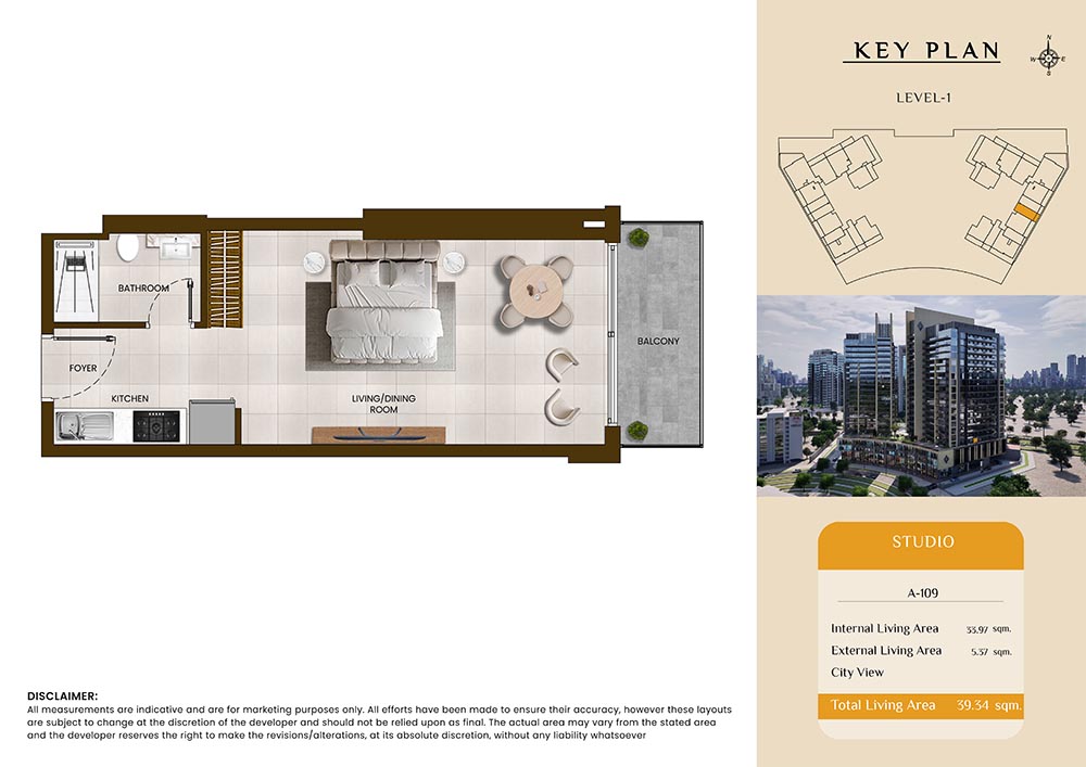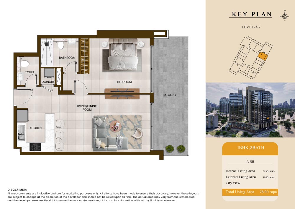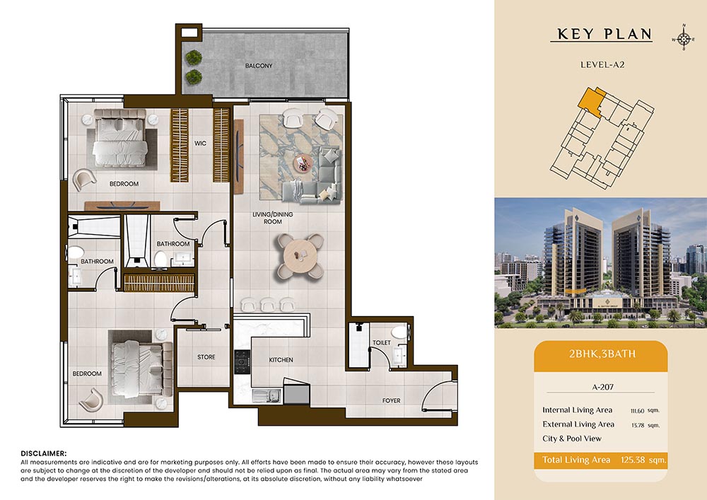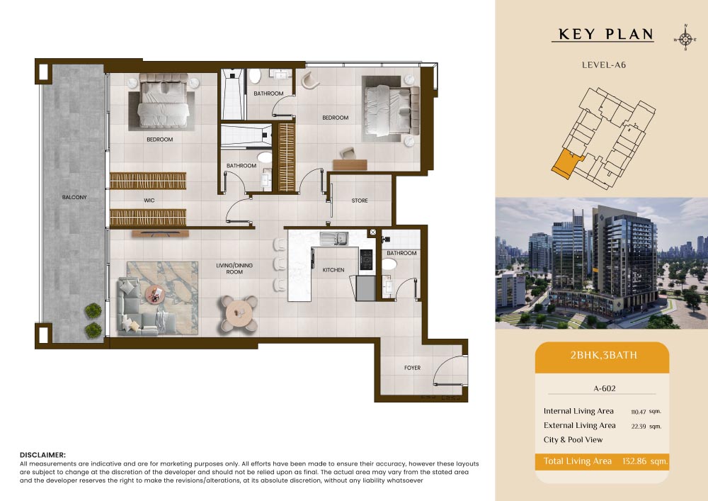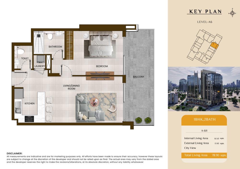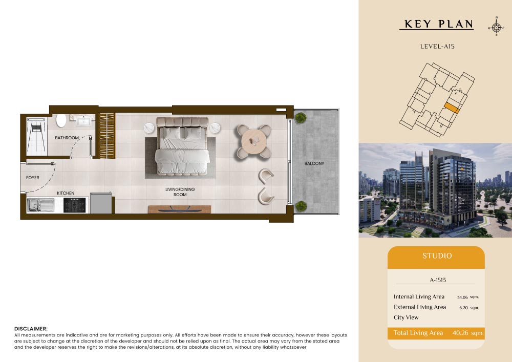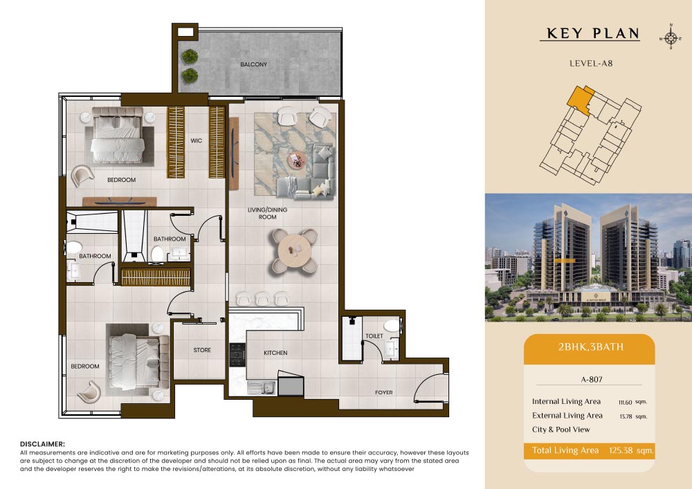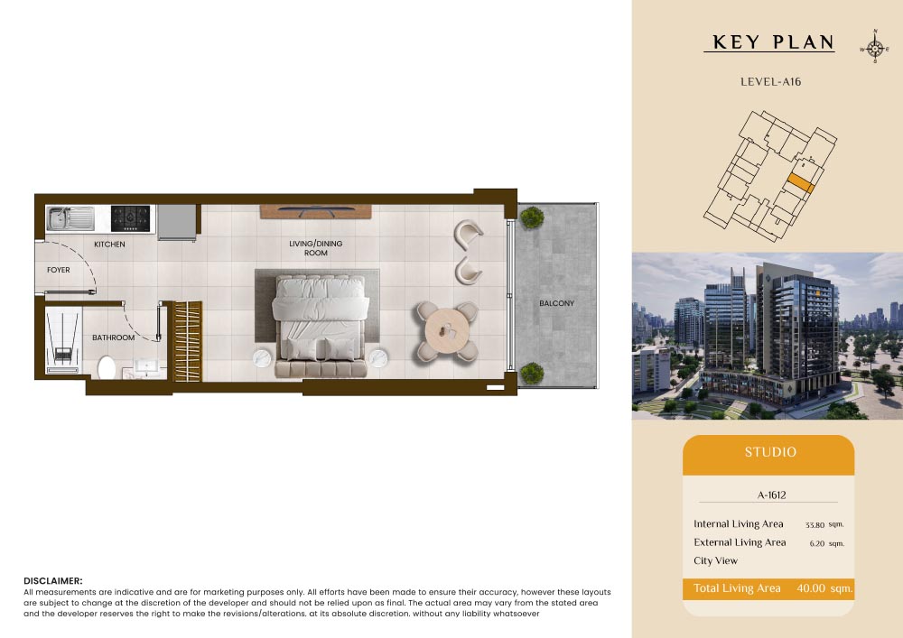 Butterfly Towers embodies a creative approach to design within this twin-towers project that offers functional floor plans within studios to 2-bedroom apartments. Each tower offers 17 residential floors and a total 570 units with 26 retail spaces. Each residence is recognised by high ceilings, and windows of the same heights, dynamic layouts with warm and modern minimalist themes. All the bedrooms feature MDF with wood grain melamine and drawers with white powder-coated finishes for a clear and stylish look. The open design of kitchens features integrated appliances and Colonia white countertop for hassle-free cooking experiences.