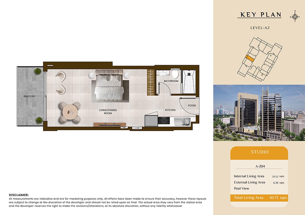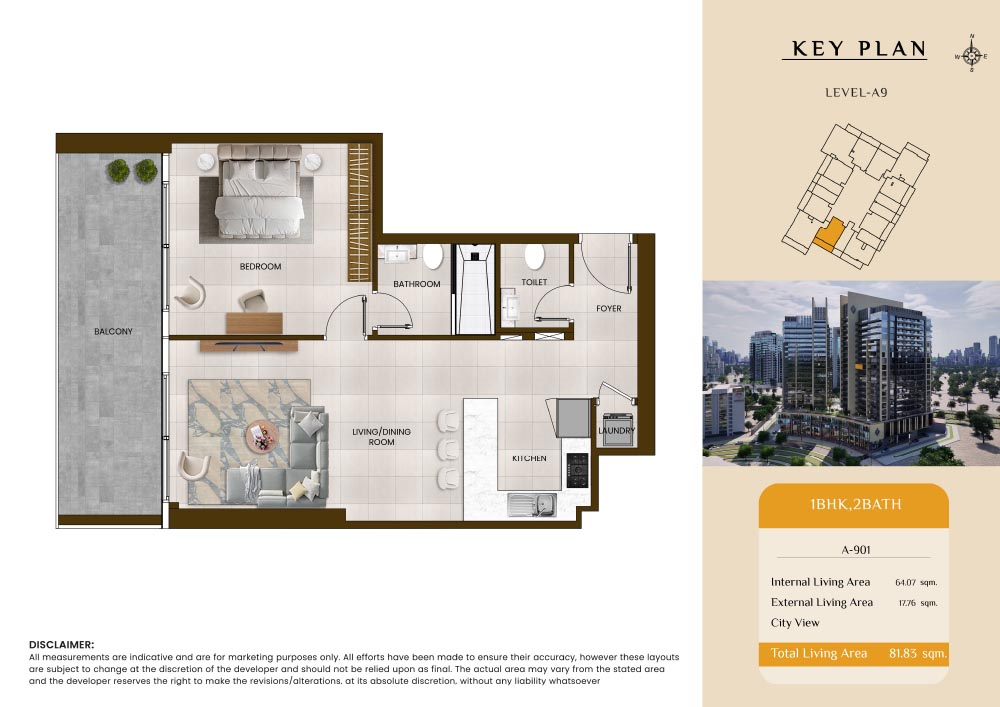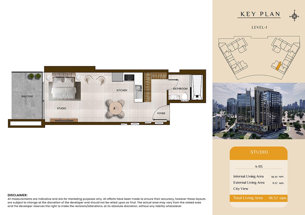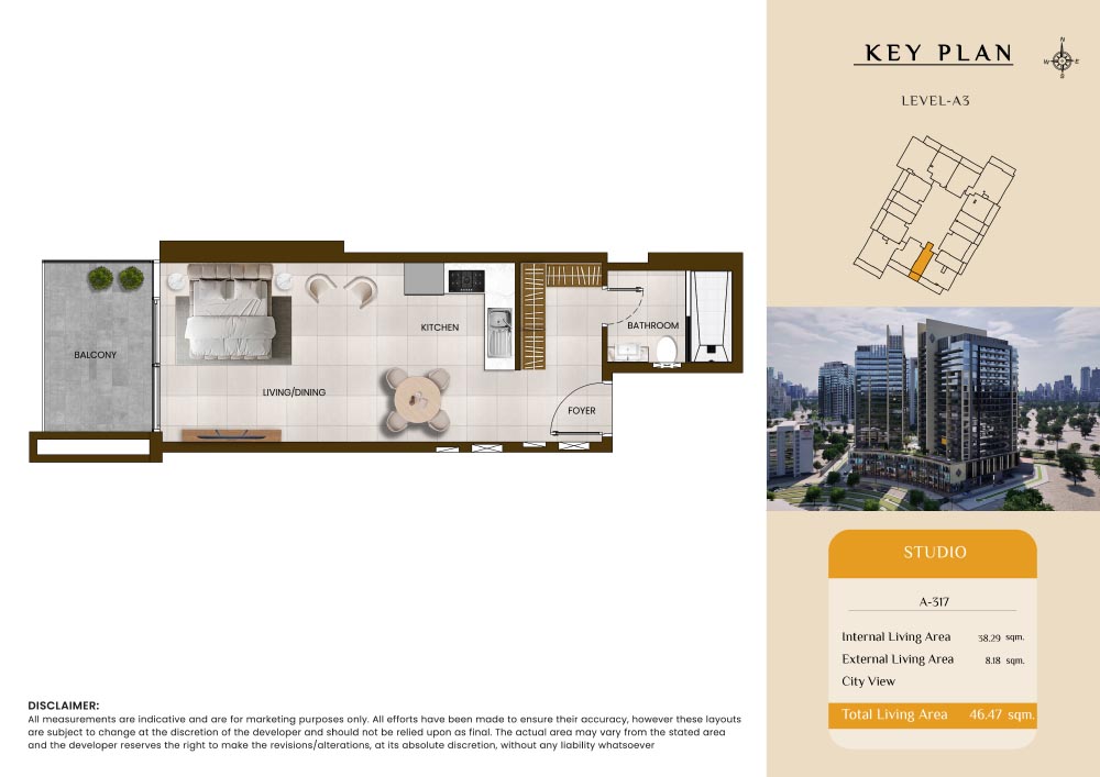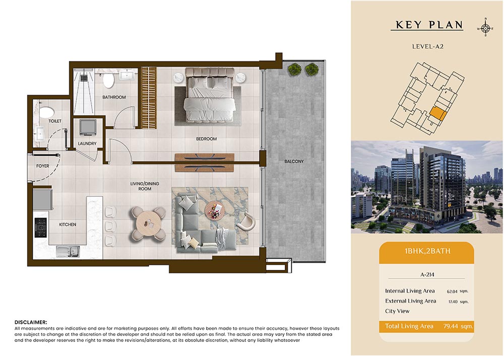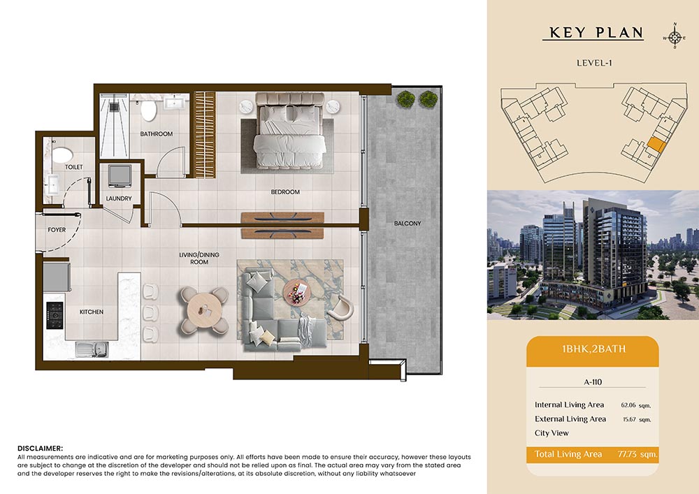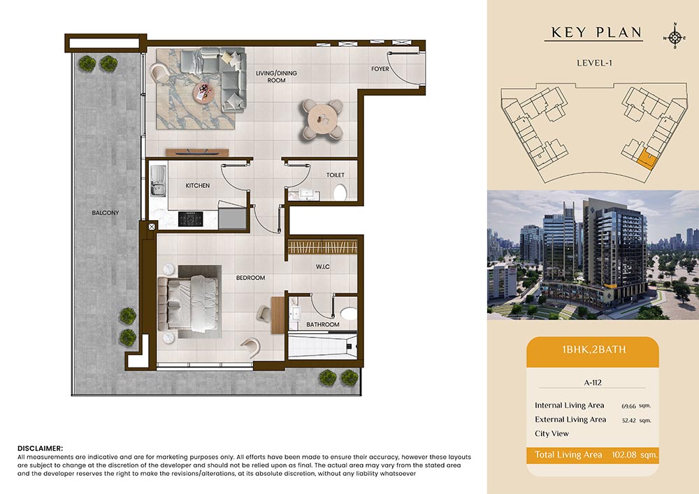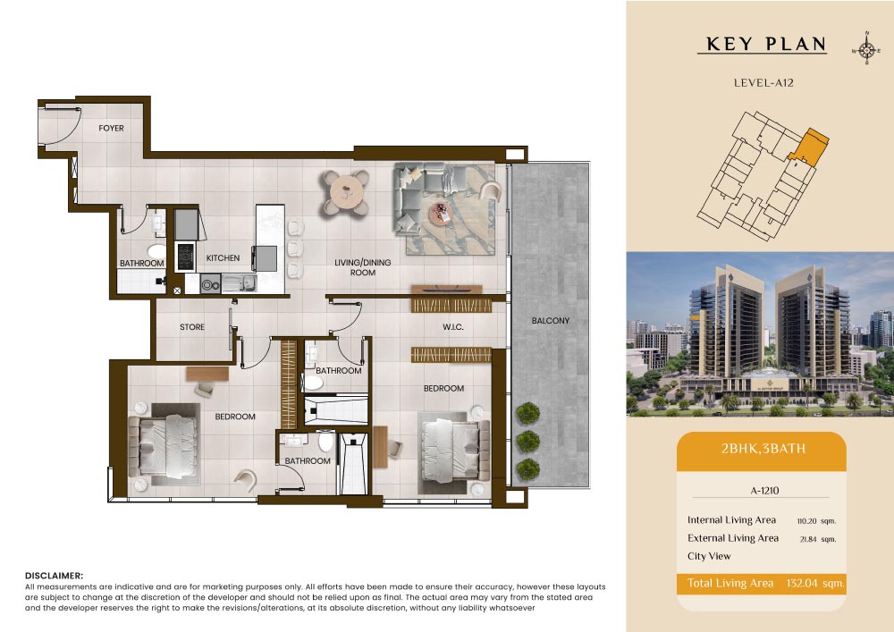 Butterfly Towers embodies a creative approach to design within this twin-towers project that offers functional floor plans within studios to 2-bedroom apartments. Each tower offers 17 residential floors and a total 570 units with 26 retail spaces. Each residence is recognised by high ceilings, and windows of the same heights, dynamic layouts with warm and modern minimalist themes. All the bedrooms feature MDF with wood grain melamine and drawers with white powder-coated finishes for a clear and stylish look. The open design of kitchens features integrated appliances and Colonia white countertop for hassle-free cooking experiences.