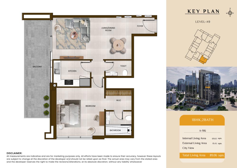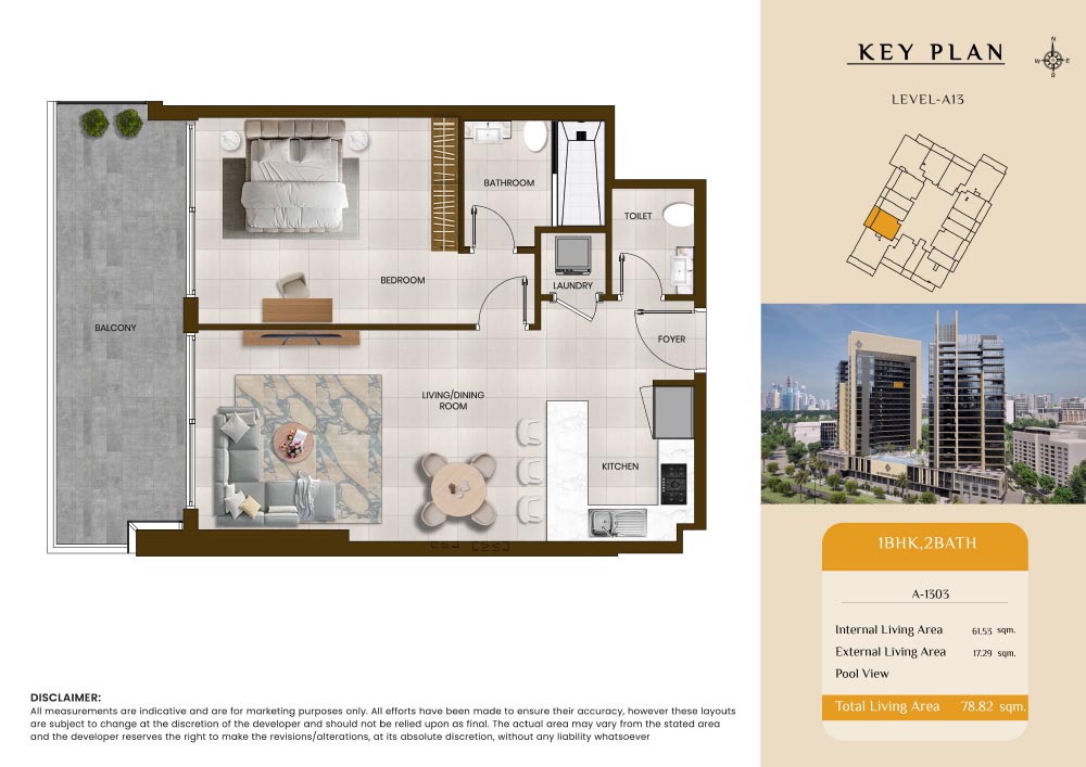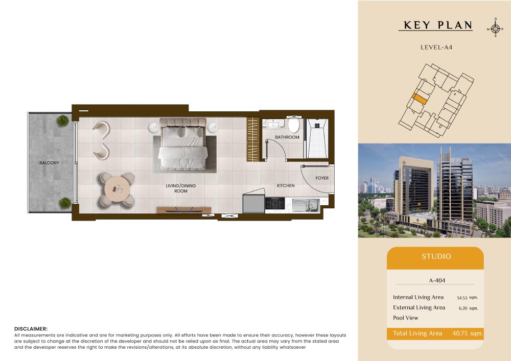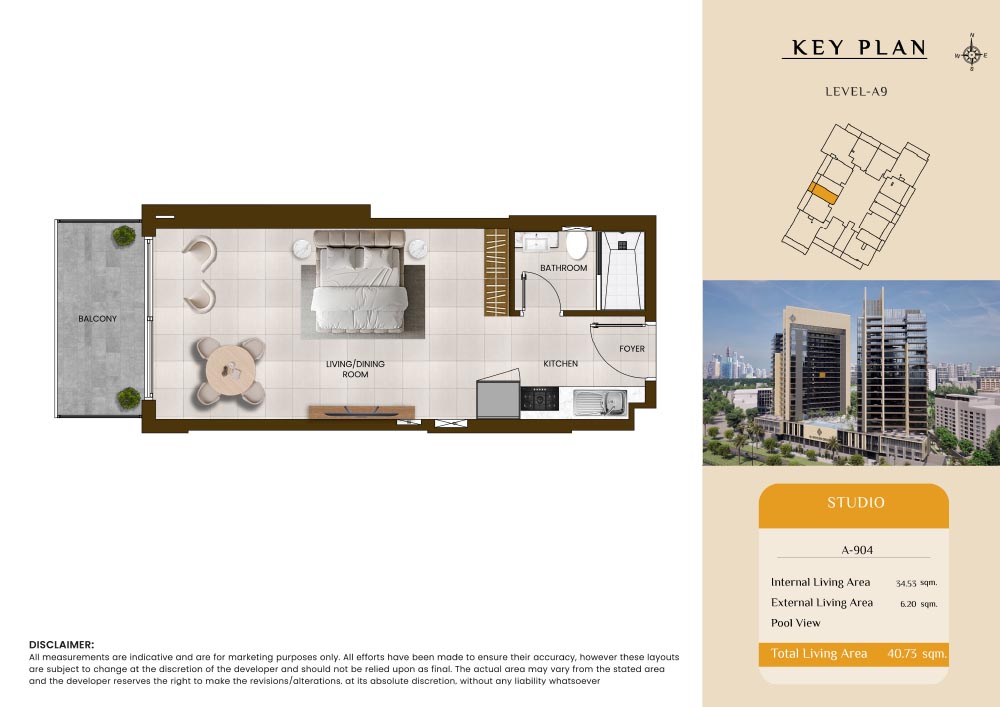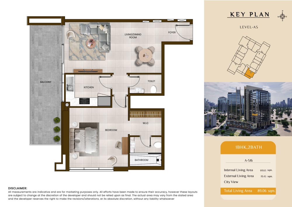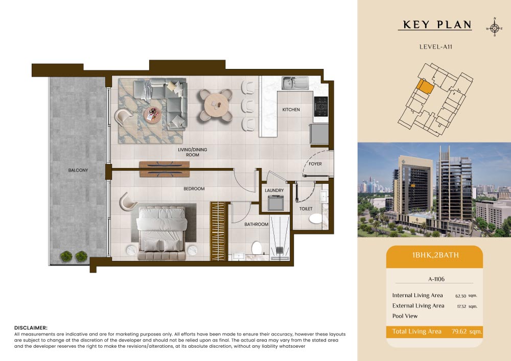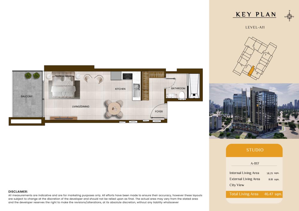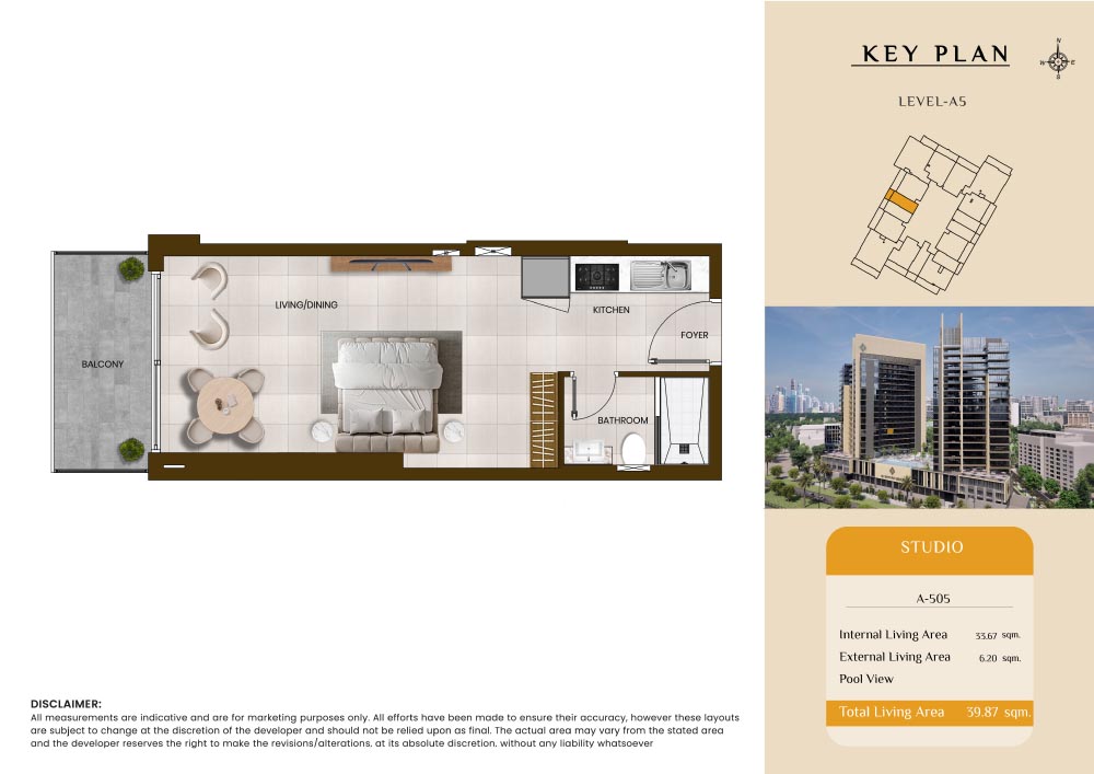 Butterfly Towers embodies a creative approach to design within this twin-towers project that offers functional floor plans within studios to 2-bedroom apartments. Each tower offers 17 residential floors and a total 570 units with 26 retail spaces. Each residence is recognised by high ceilings, and windows of the same heights, dynamic layouts with warm and modern minimalist themes. All the bedrooms feature MDF with wood grain melamine and drawers with white powder-coated finishes for a clear and stylish look. The open design of kitchens features integrated appliances and Colonia white countertop for hassle-free cooking experiences.