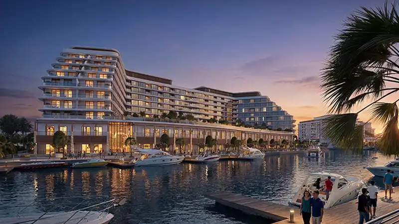 - Architecture inspired by the movement of water, with flowing building forms that integrate naturally into the marina setting and island landscape.