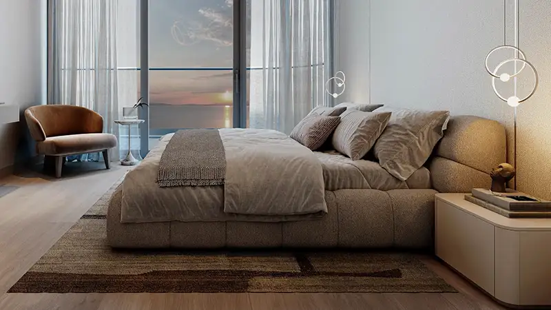 - Spacious living and dining areas flow seamlessly into private balconies, creating an indoor–outdoor lifestyle shaped by water, sky, and open horizons.