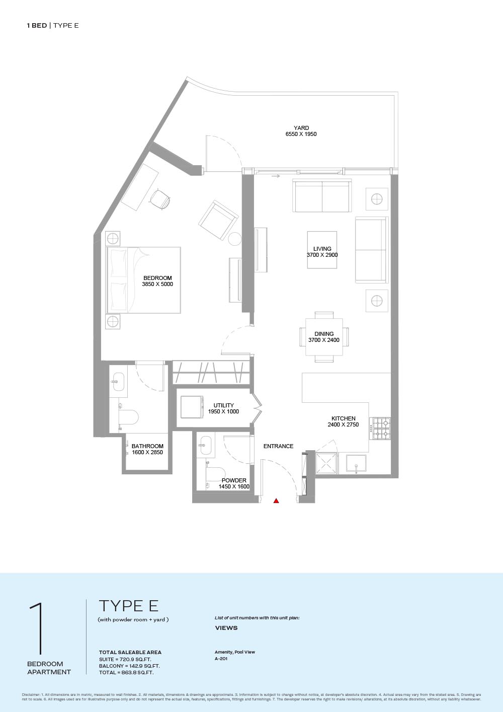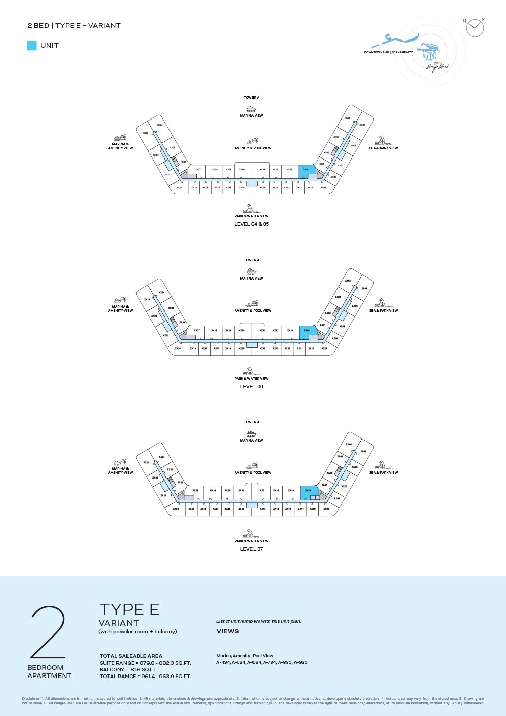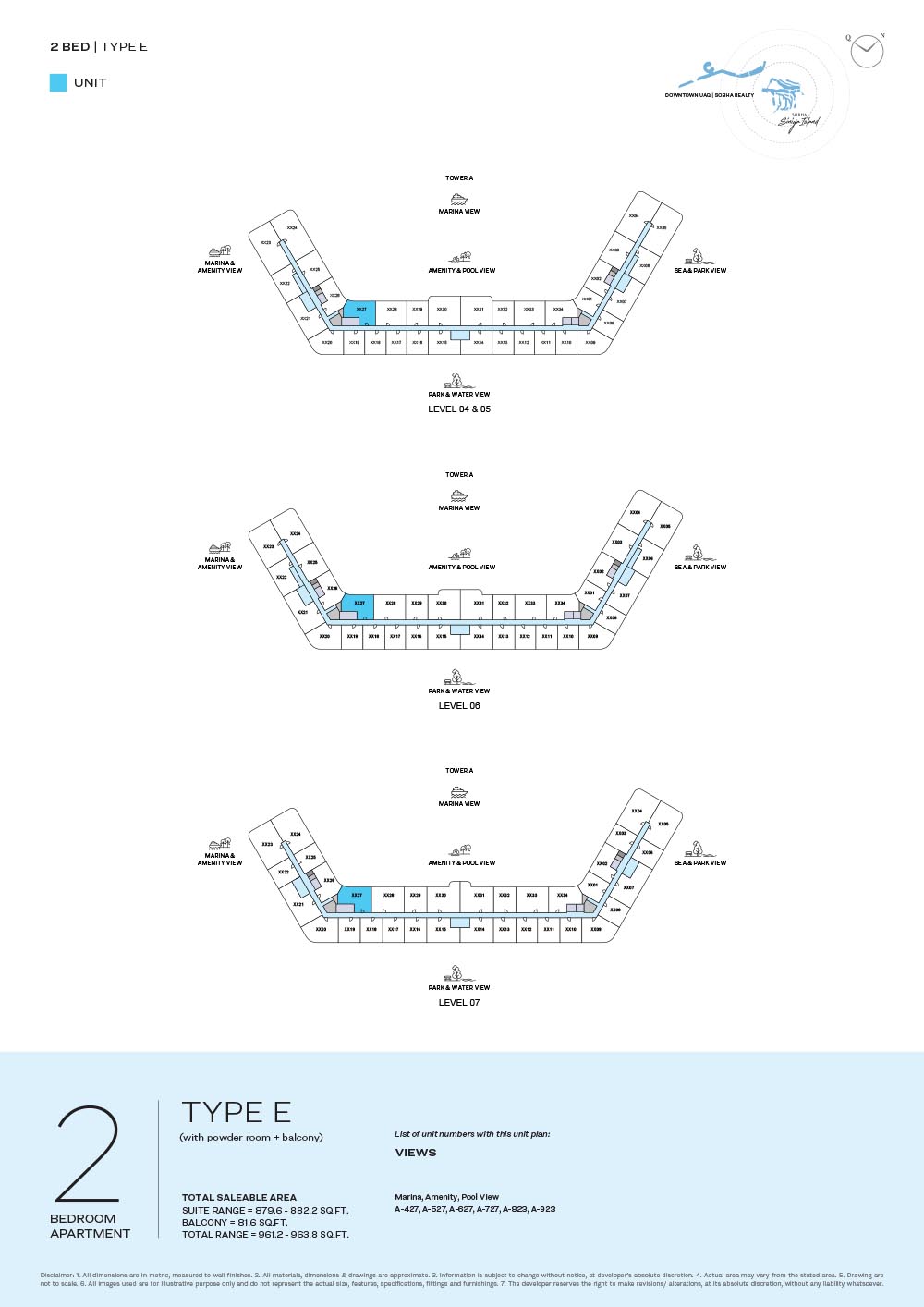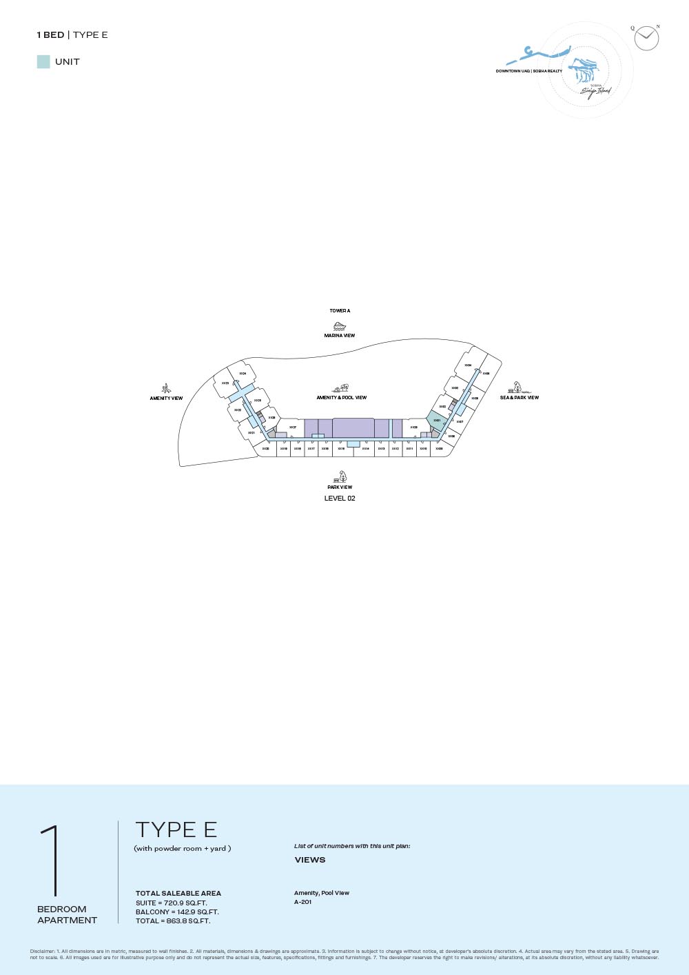 | Tower A | 1 Bedroom | 02nd Level (Type E) | 863.80 Sq Ft | Click Here |