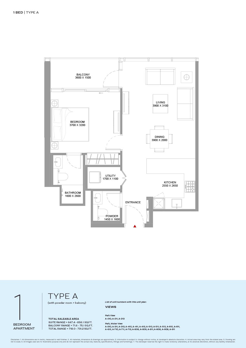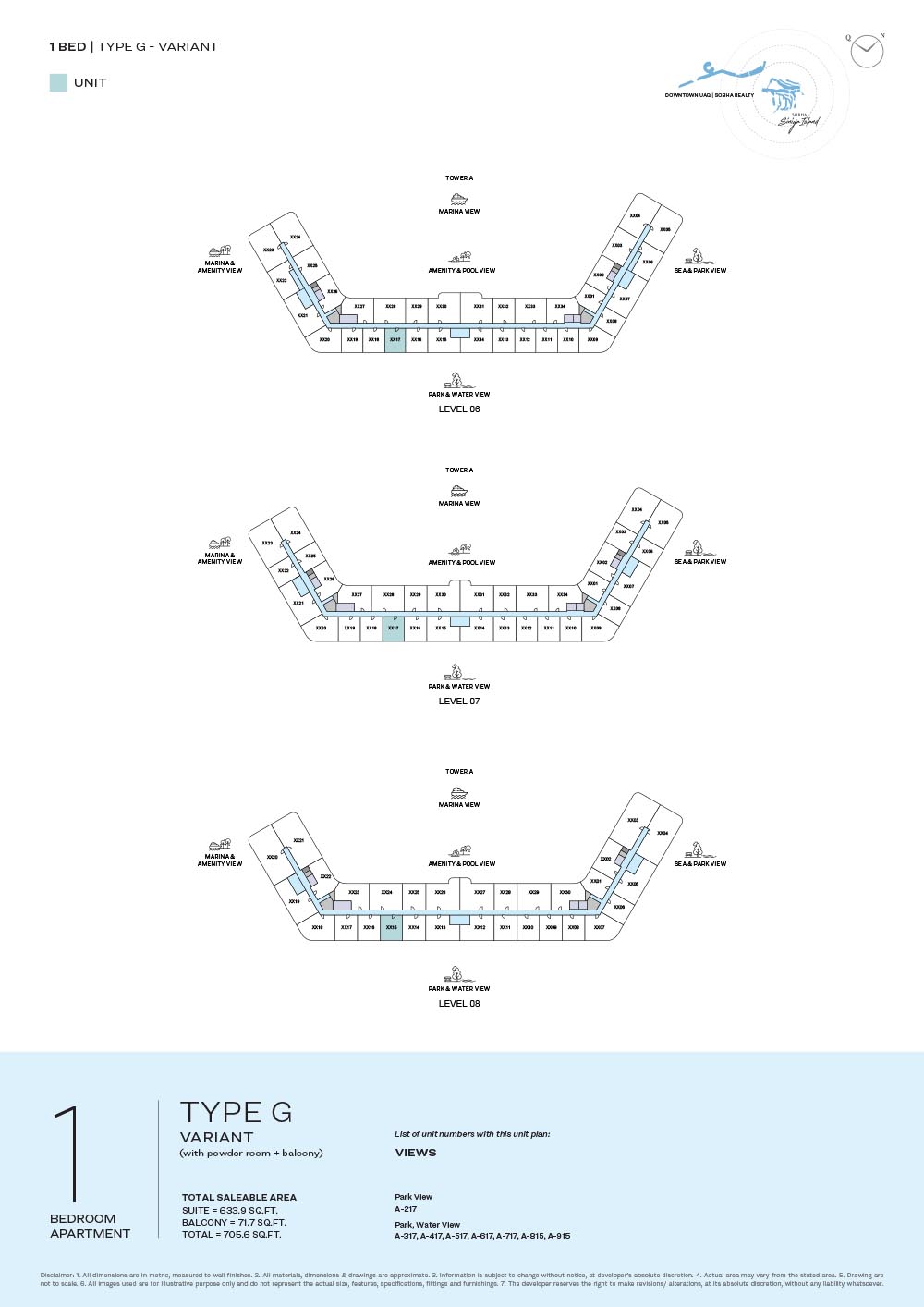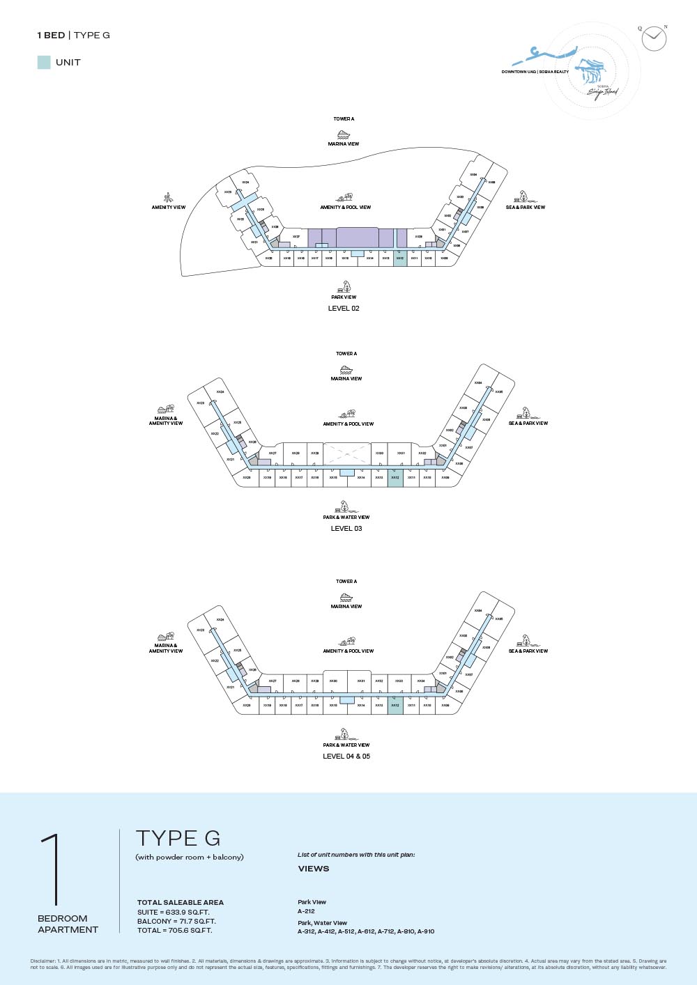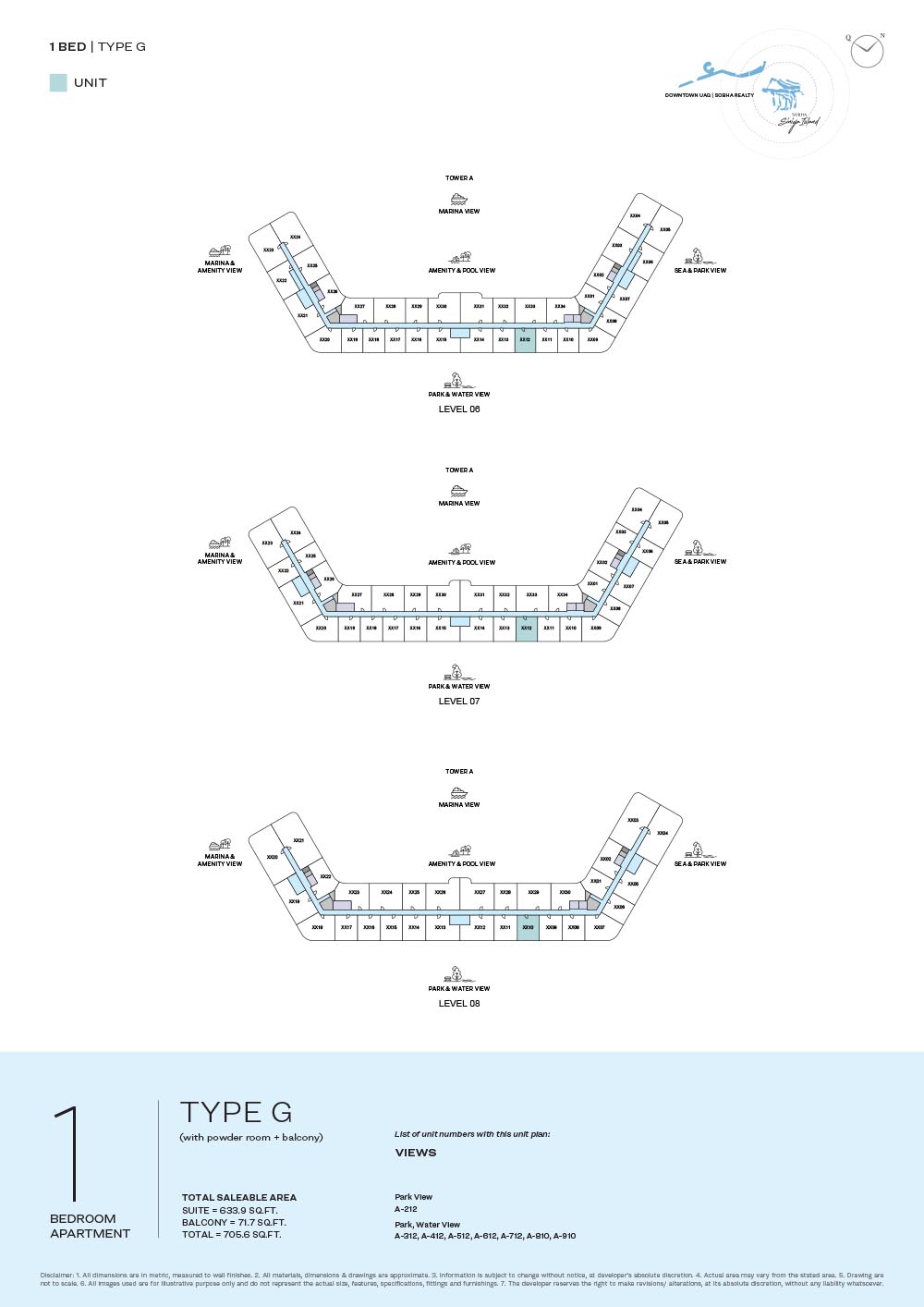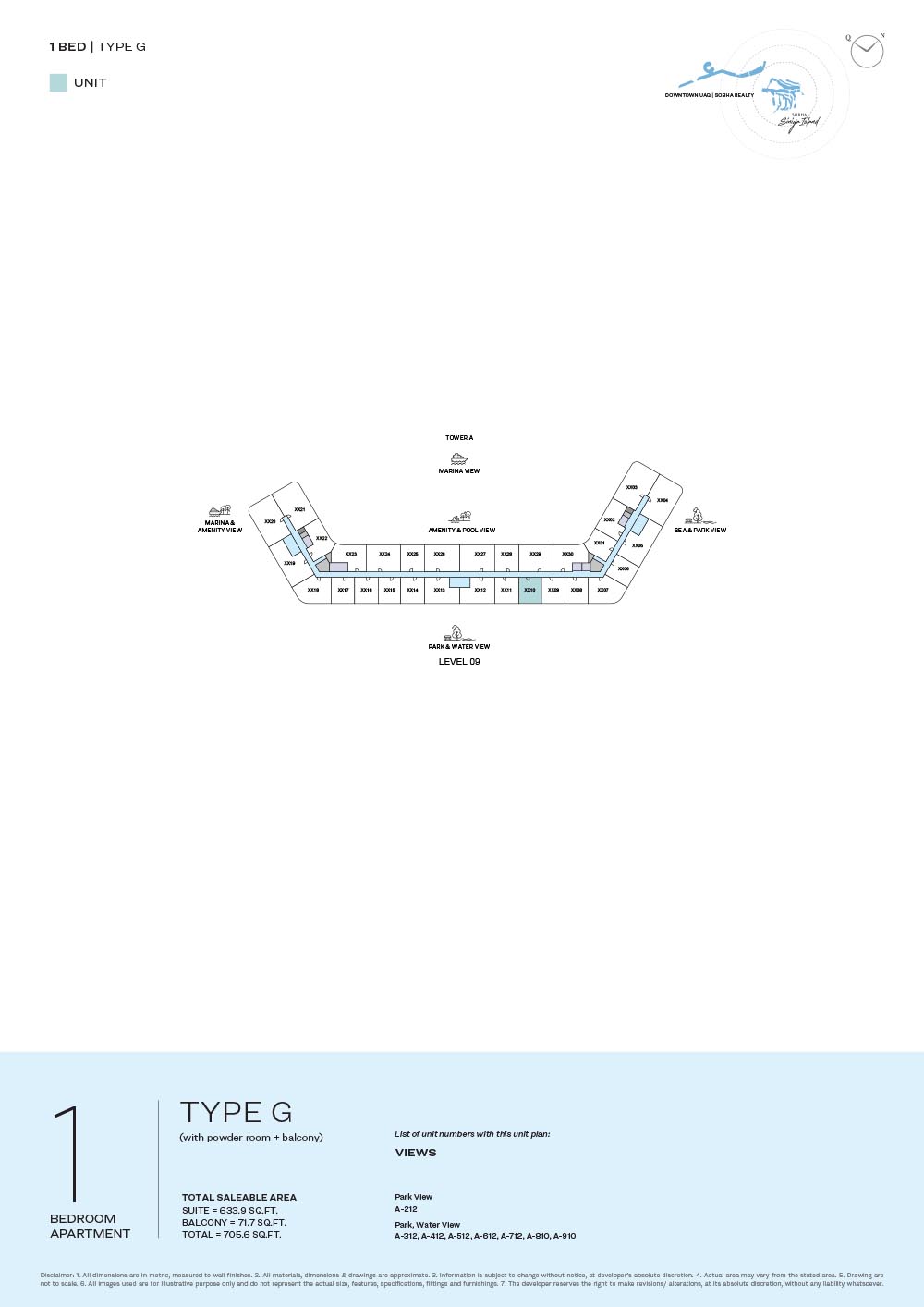 | Tower A | 1 Bedroom | 09th Level (Type G) | 705.60 Sq Ft | Click Here |